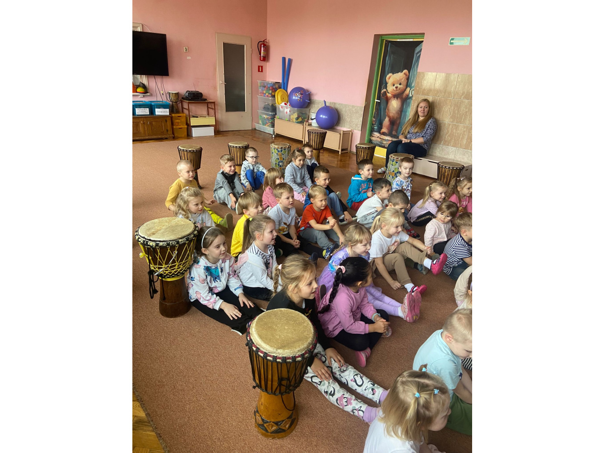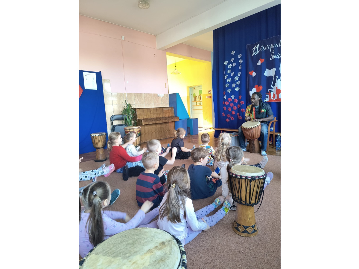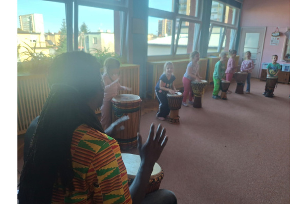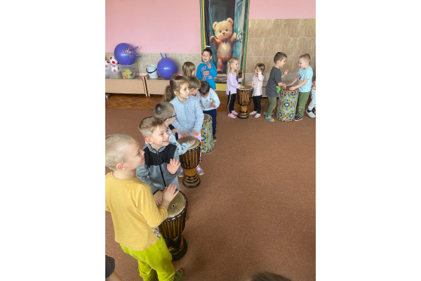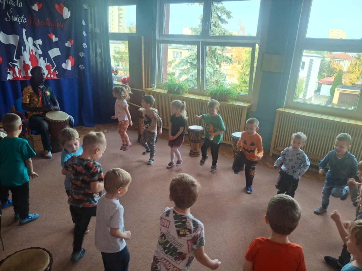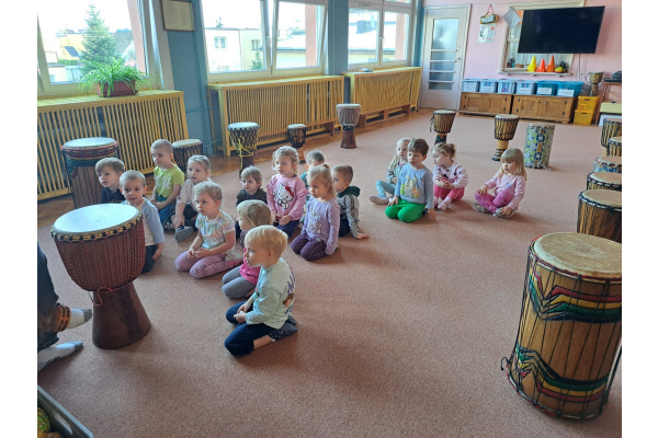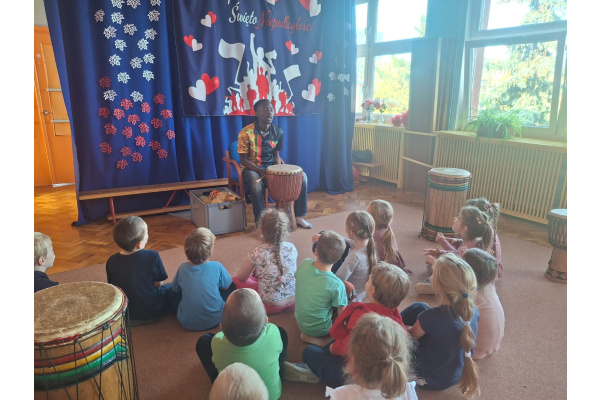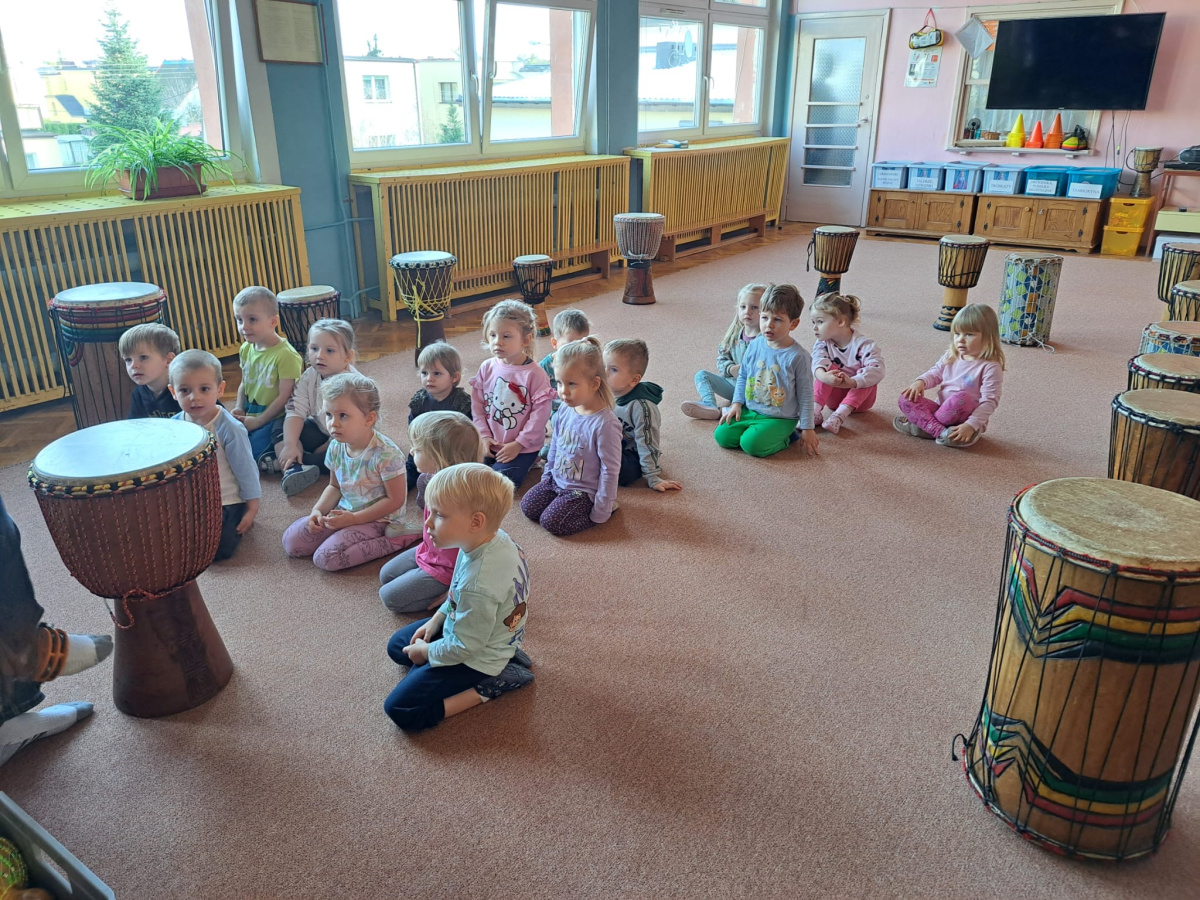 We wtorek w naszym przedszkolu odbyły się warsztaty bębniarskie, podczas których dzieci miały okazję poznać kulturę odległej od nas Afryki. Przedszkolaki pod okiem Pana Gasparda Conde grały na bębnach i grzechotkach. Były to zajęcia pełne radości, muzyki i tańca.