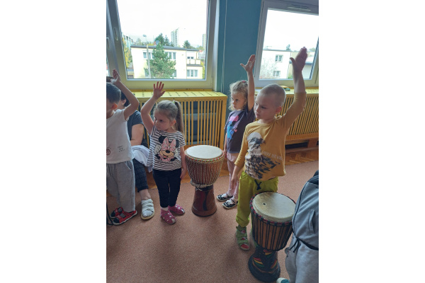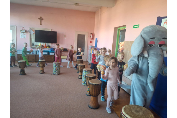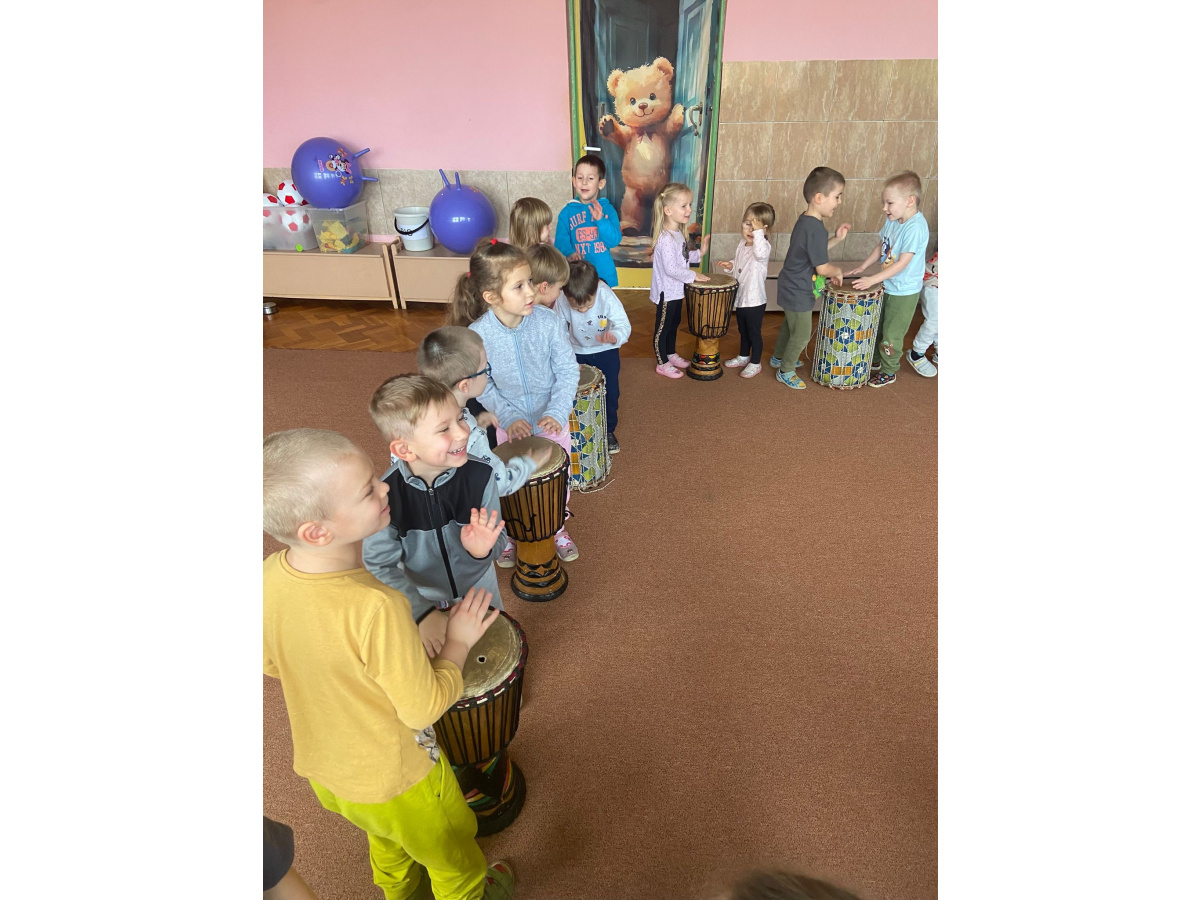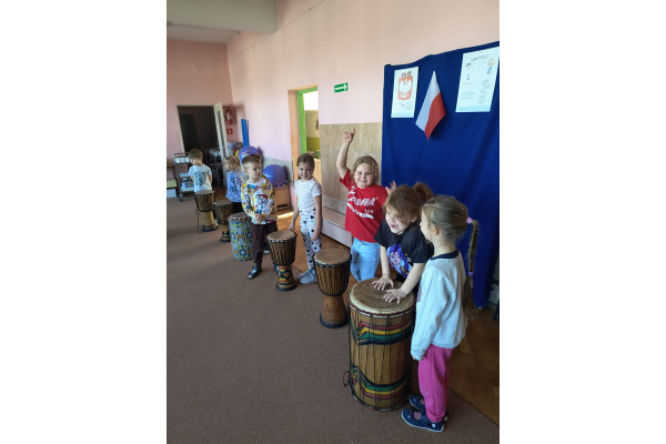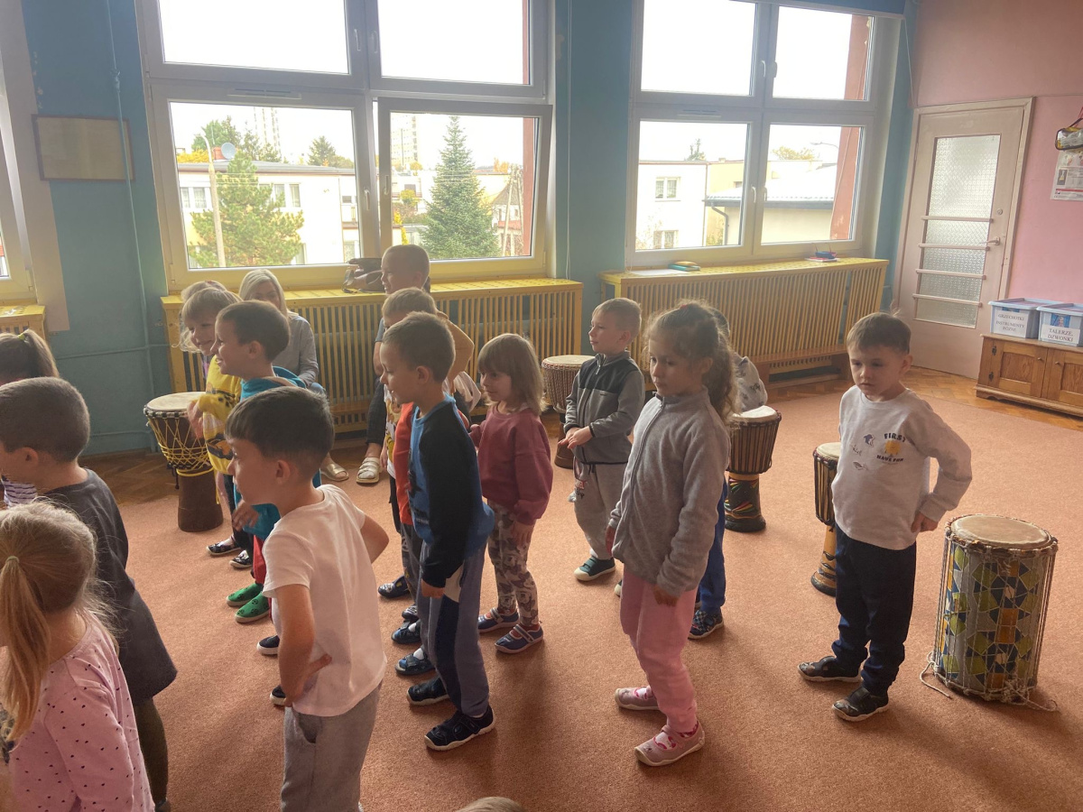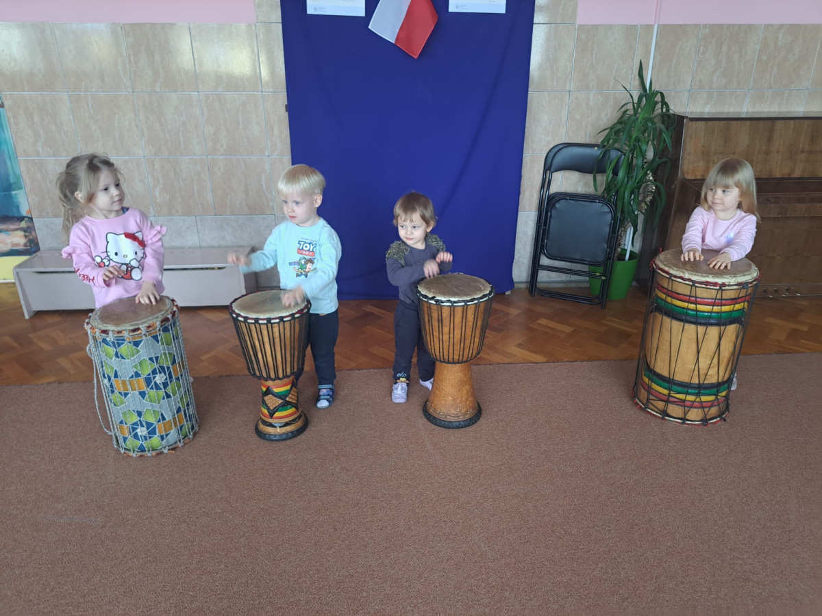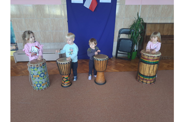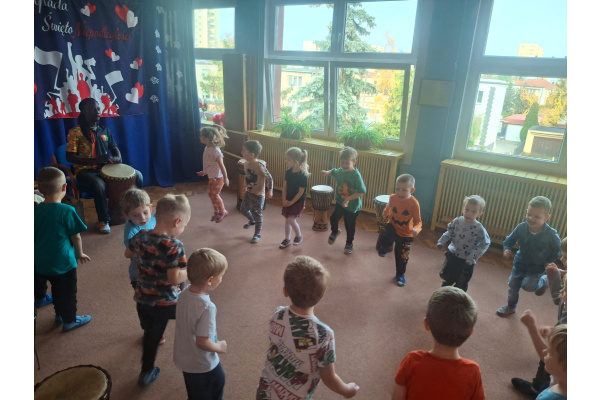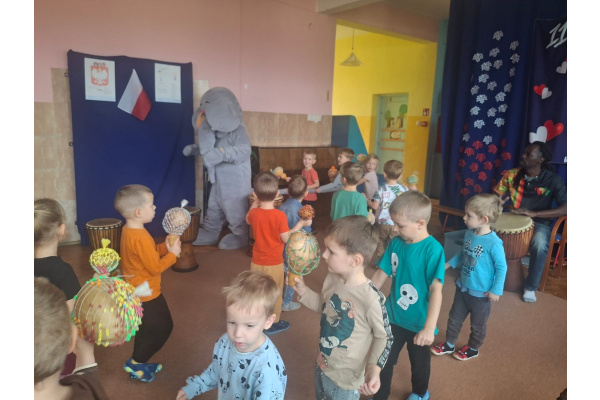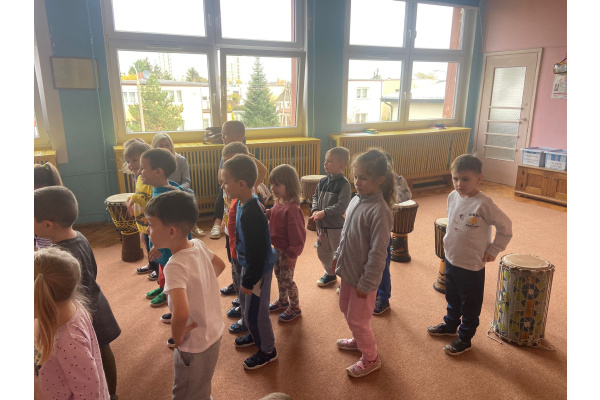 We wtorek w naszym przedszkolu odbyły się warsztaty bębniarskie, podczas których dzieci miały okazję poznać kulturę odległej od nas Afryki. Przedszkolaki pod okiem Pana Gasparda Conde grały na bębnach i grzechotkach. Były to zajęcia pełne radości, muzyki i tańca.