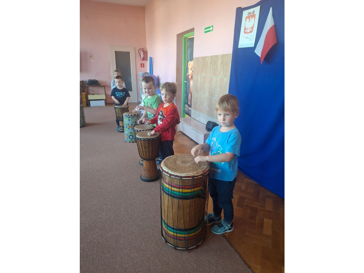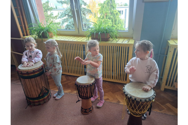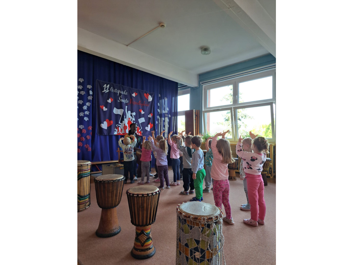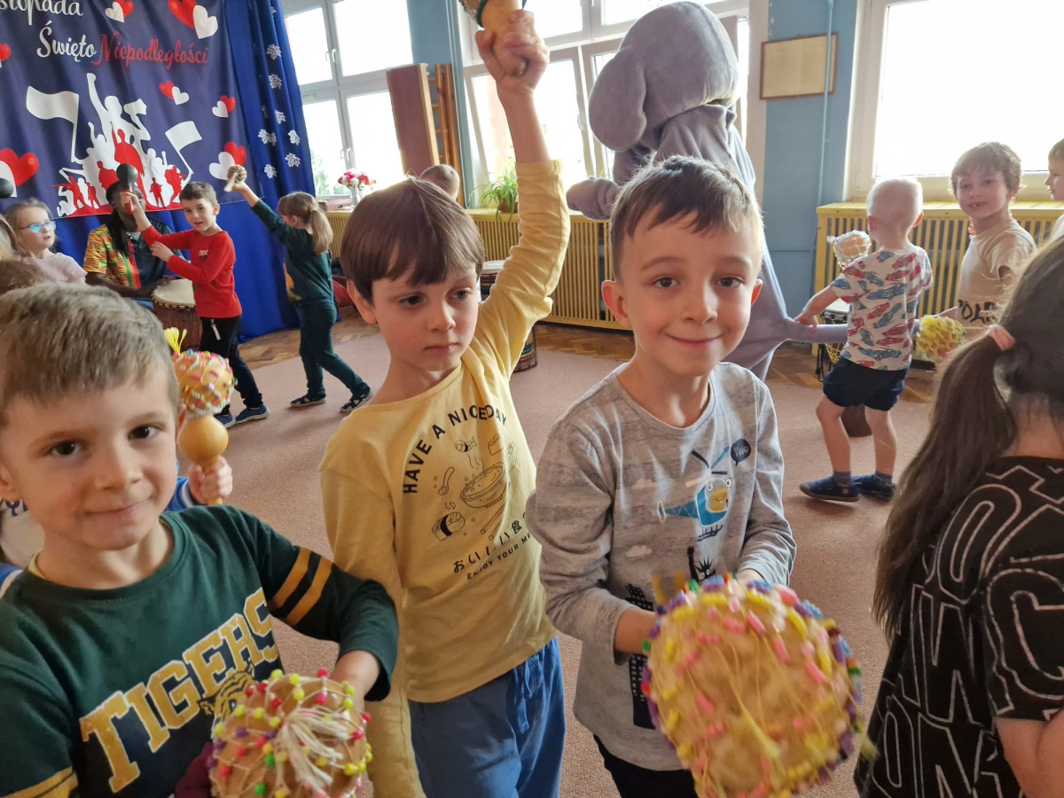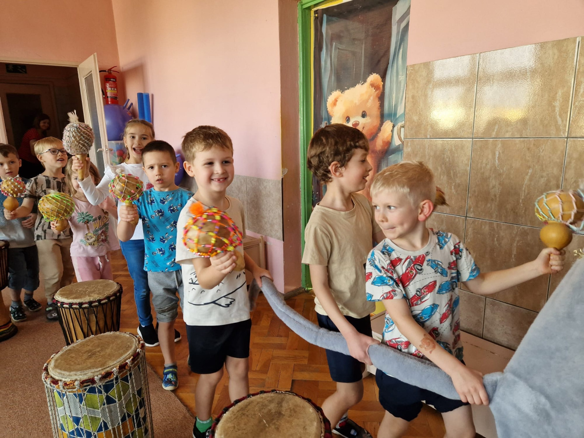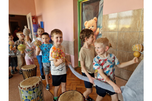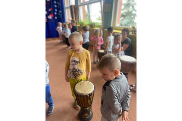 We wtorek w naszym przedszkolu odbyły się warsztaty bębniarskie, podczas których dzieci miały okazję poznać kulturę odległej od nas Afryki. Przedszkolaki pod okiem Pana Gasparda Conde grały na bębnach i grzechotkach. Były to zajęcia pełne radości, muzyki i tańca.