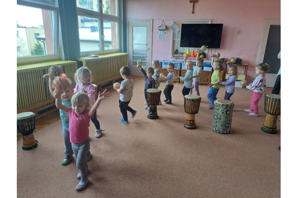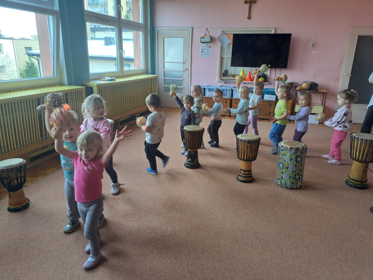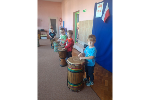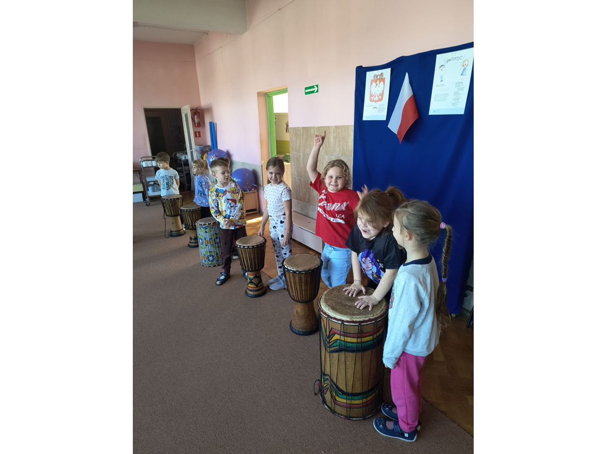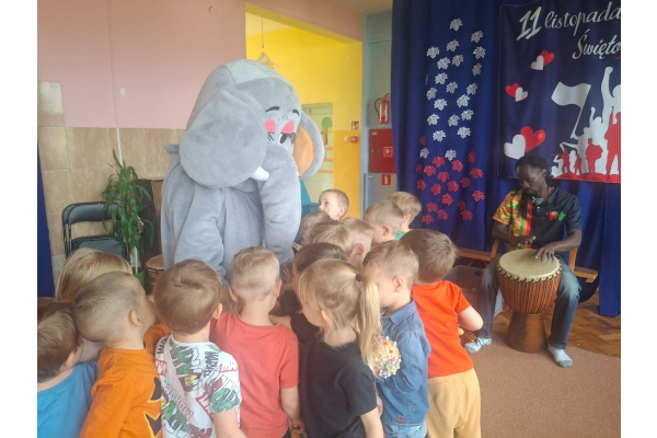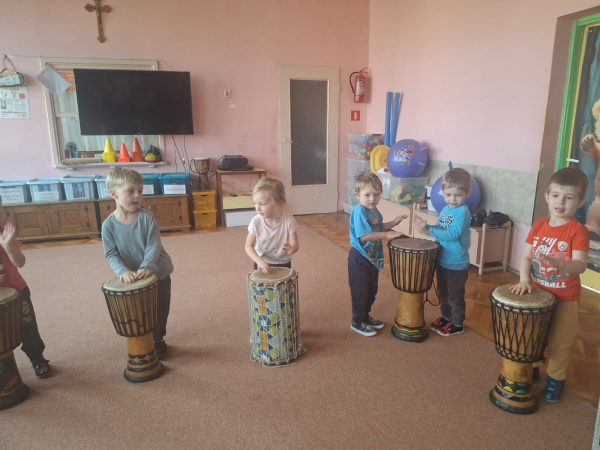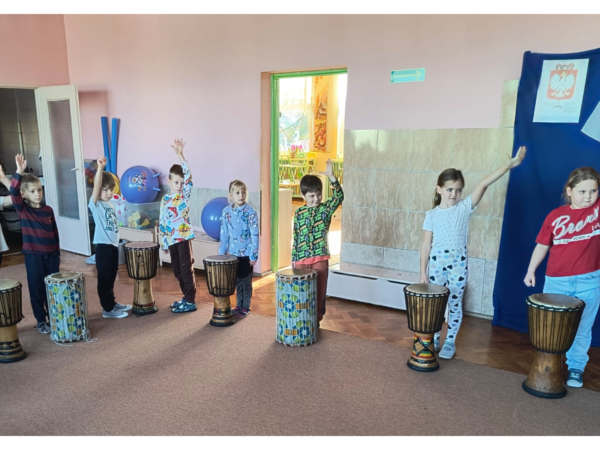We wtorek w naszym przedszkolu odbyły się warsztaty bębniarskie, podczas których dzieci miały okazję poznać kulturę odległej od nas Afryki. Przedszkolaki pod okiem Pana Gasparda Conde grały na bębnach i grzechotkach. Były to zajęcia pełne radości, muzyki i tańca.