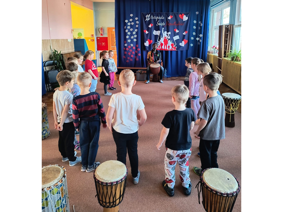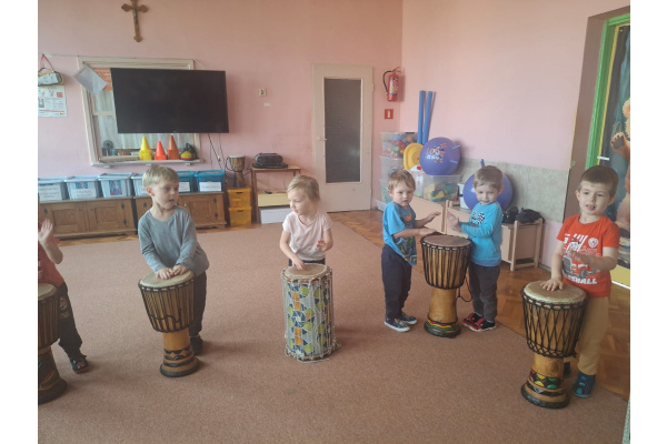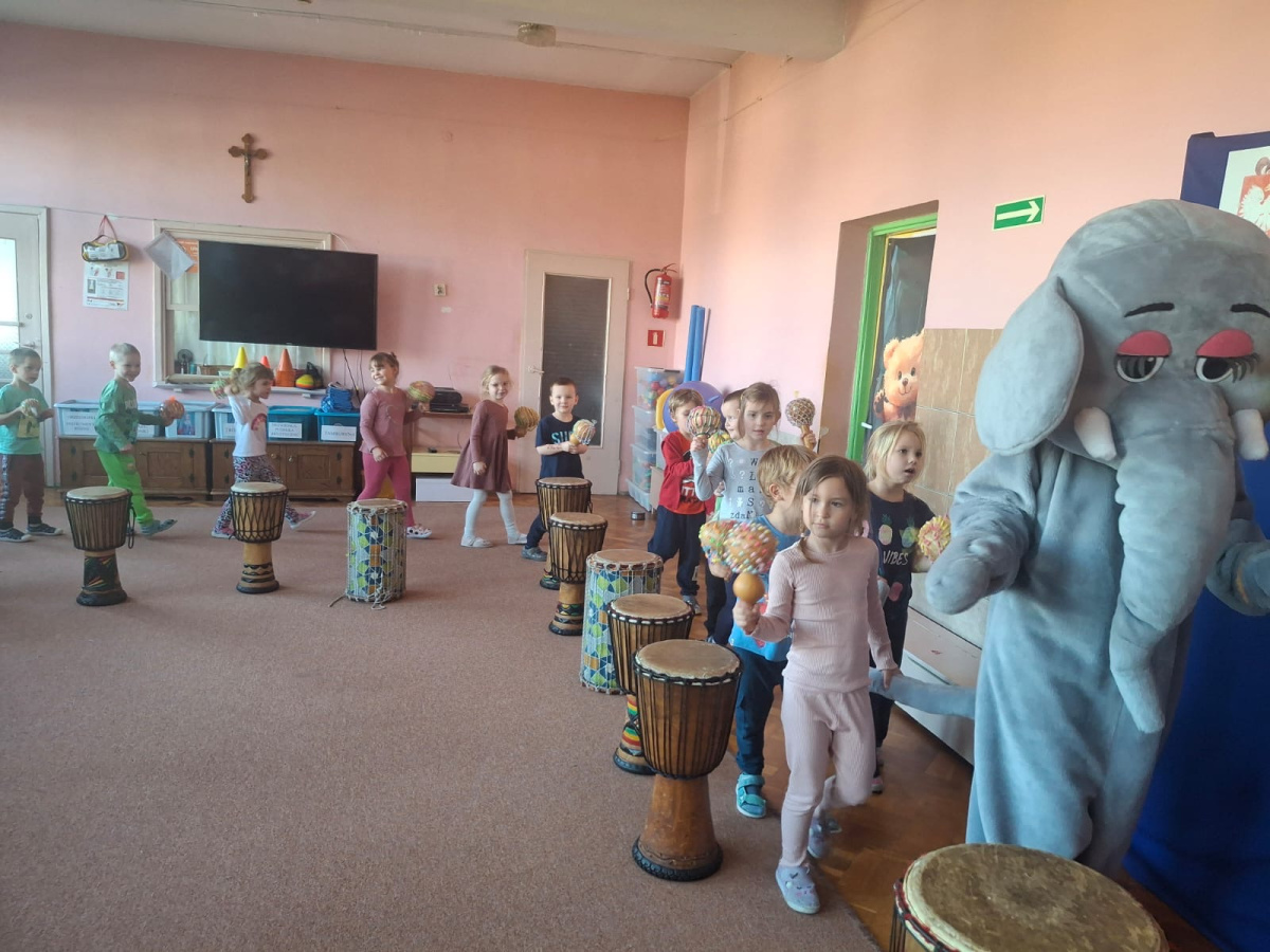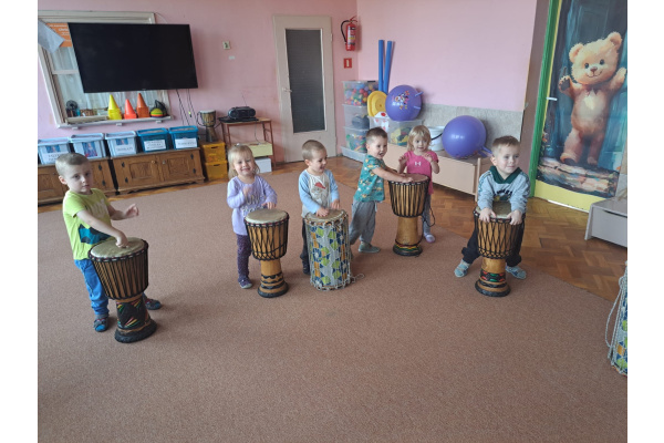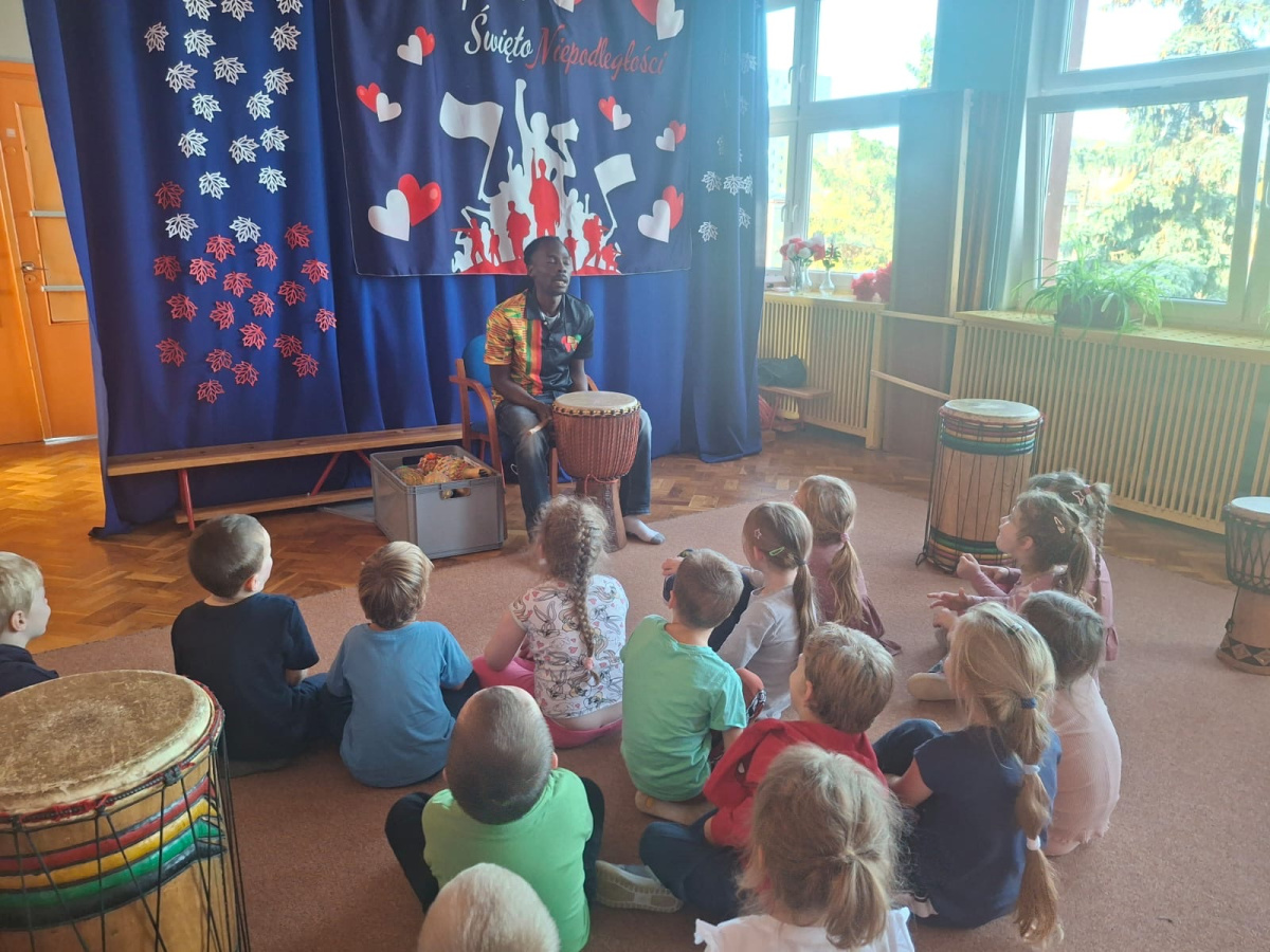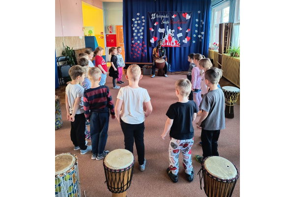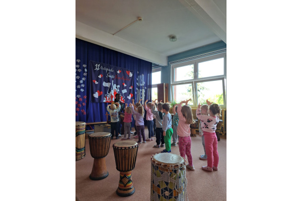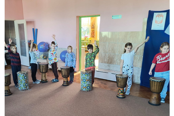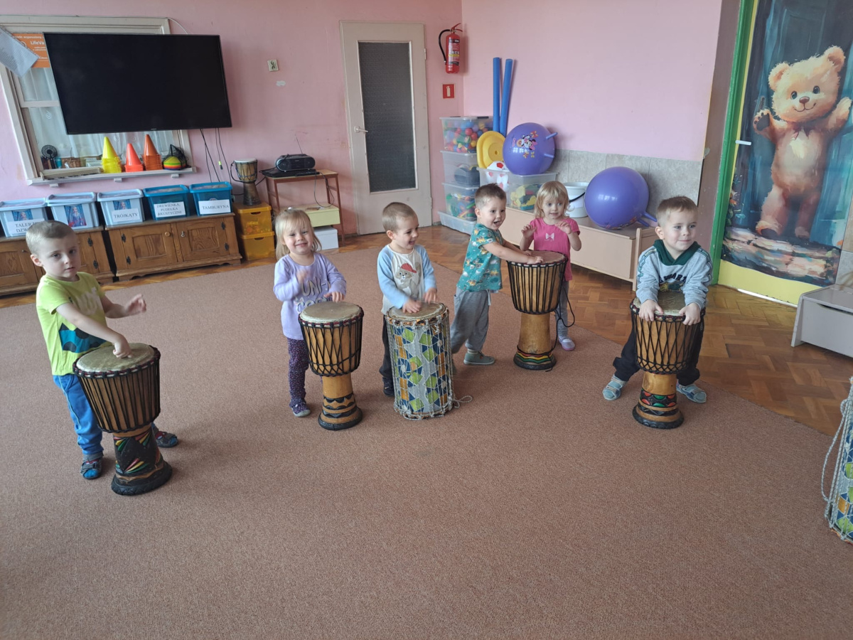 We wtorek w naszym przedszkolu odbyły się warsztaty bębniarskie, podczas których dzieci miały okazję poznać kulturę odległej od nas Afryki. Przedszkolaki pod okiem Pana Gasparda Conde grały na bębnach i grzechotkach. Były to zajęcia pełne radości, muzyki i tańca.