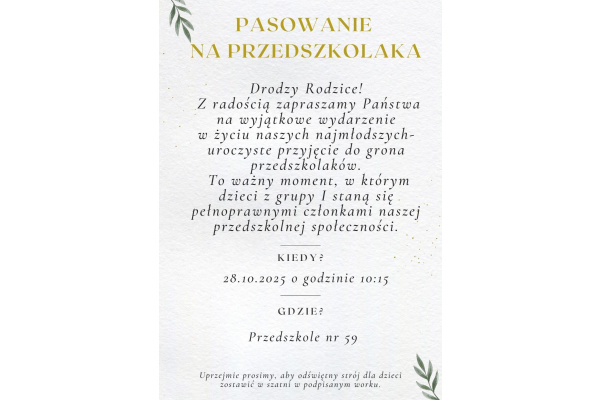 Czytaj więcej!ZAPROSZENIE NA PASOWANIE NA PRZEDSZKOLAKA