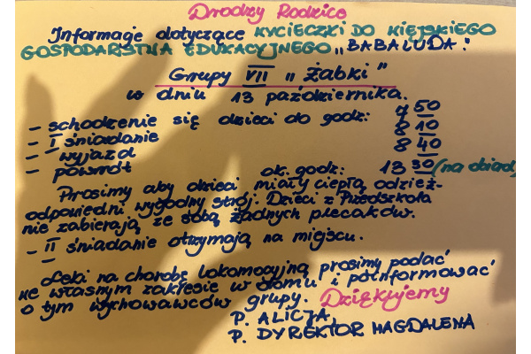 INFORMACJA DOTYCZĄCA WYCIECZKI DO BABALUDY DLA GRUPY II i VII