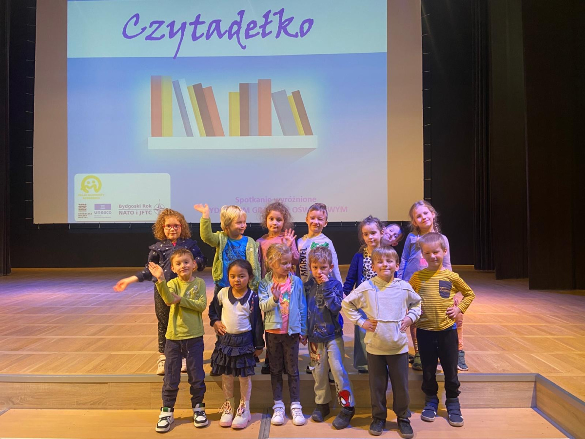 23 października dzieci z grupy „Żabki” wybrały się do Pałacu Młodzieży na spotkanie pt. "Czytadełko" ,które odbywa sie w ramach Bydgoskiego Grantu Oświatowego. Podczas spotkania przedszkolaki z zainteresowaniem słuchały bajek czytanych przez prowadzących oraz aktywnie uczestniczyły w różnorodnych zabawach. Wyjście dostarczyło dzieciom wielu radości i było wspaniałą okazją do rozwijania zainteresowania literaturą oraz wspólnego spędzania czasu
