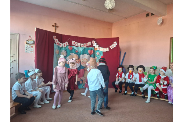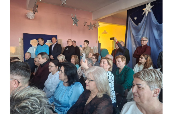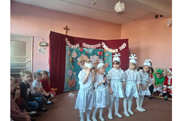 Dzieci z gr.Sówek zaprezentowały program artystyczny-przedstawienie "Zmartwienie śnieżynek" oraz recytowały okolicznościowe wiersze a także piosenki.