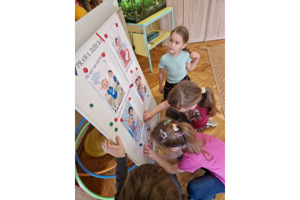 20 listopada przypadła ważna okoliczność. Tego dnia na całym świecie obchodzony jest Międzynarodowy Dzień Praw Dziecka. I w naszym przedszkolu dzieci przypominały sobie swoje prawa, poznawały nowe, ale i rozmawiały o obowiązkach, które dotyczą ich już od najmłodszych lat. Wprowadzeniem była ciekawa prezentacja multimedialna, która przybliżyła dzieciom temat ich praw i obowiązków. Były zadania związane z przeżywanym dniem, rozmowy o tym, jak przedszkolacy rozumieją i przestrzegają tych ważnych zapisów. Była też wesoła zabawa integrująca grupę. Bo o poważnych i ważnych sprawach można też mówić przez radosną zabawę.
