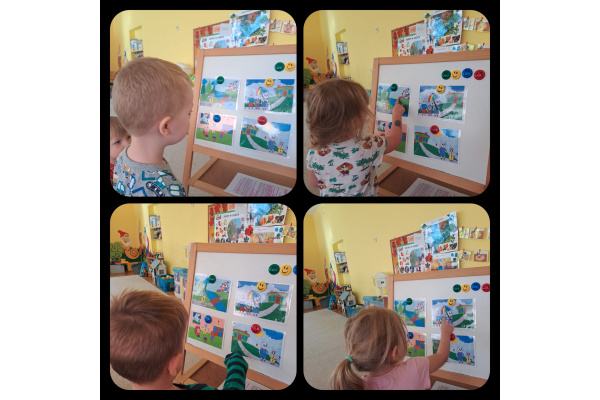 W ramach tygodnia budowania relacji rówieśniczych, dzieci miały zajęcia z pani psycholog Justyną na temat przyjaźni. Dzieci chętnie rozpoznawały emocje oraz uczyły się jak być dobrym kolegą/ koleżanką.