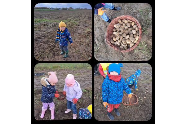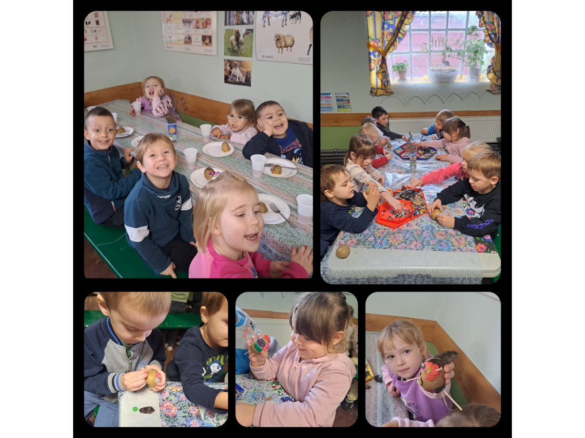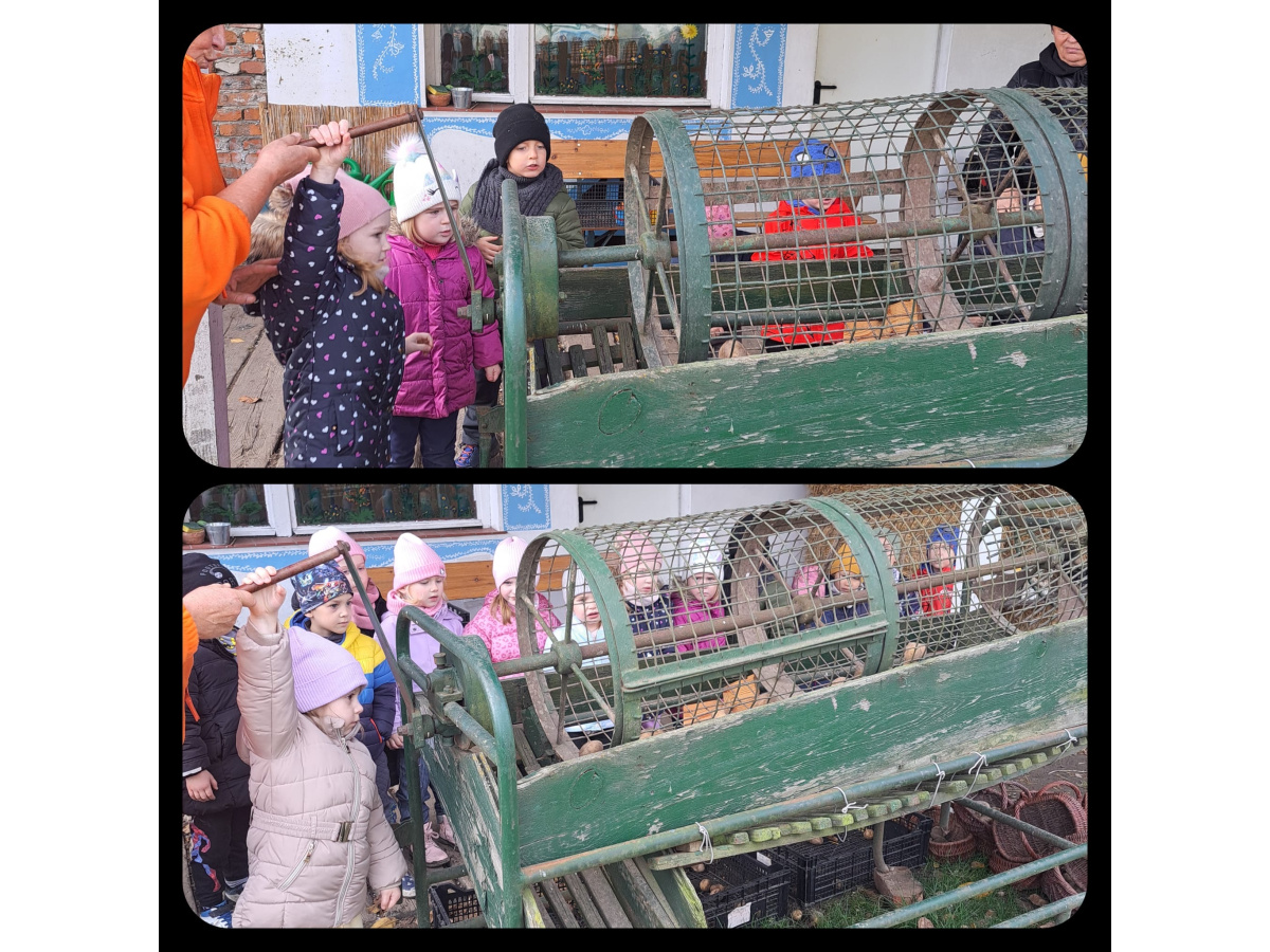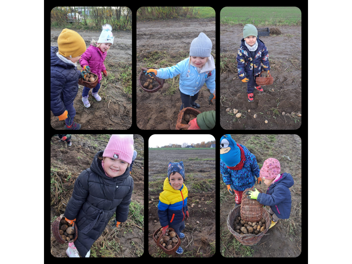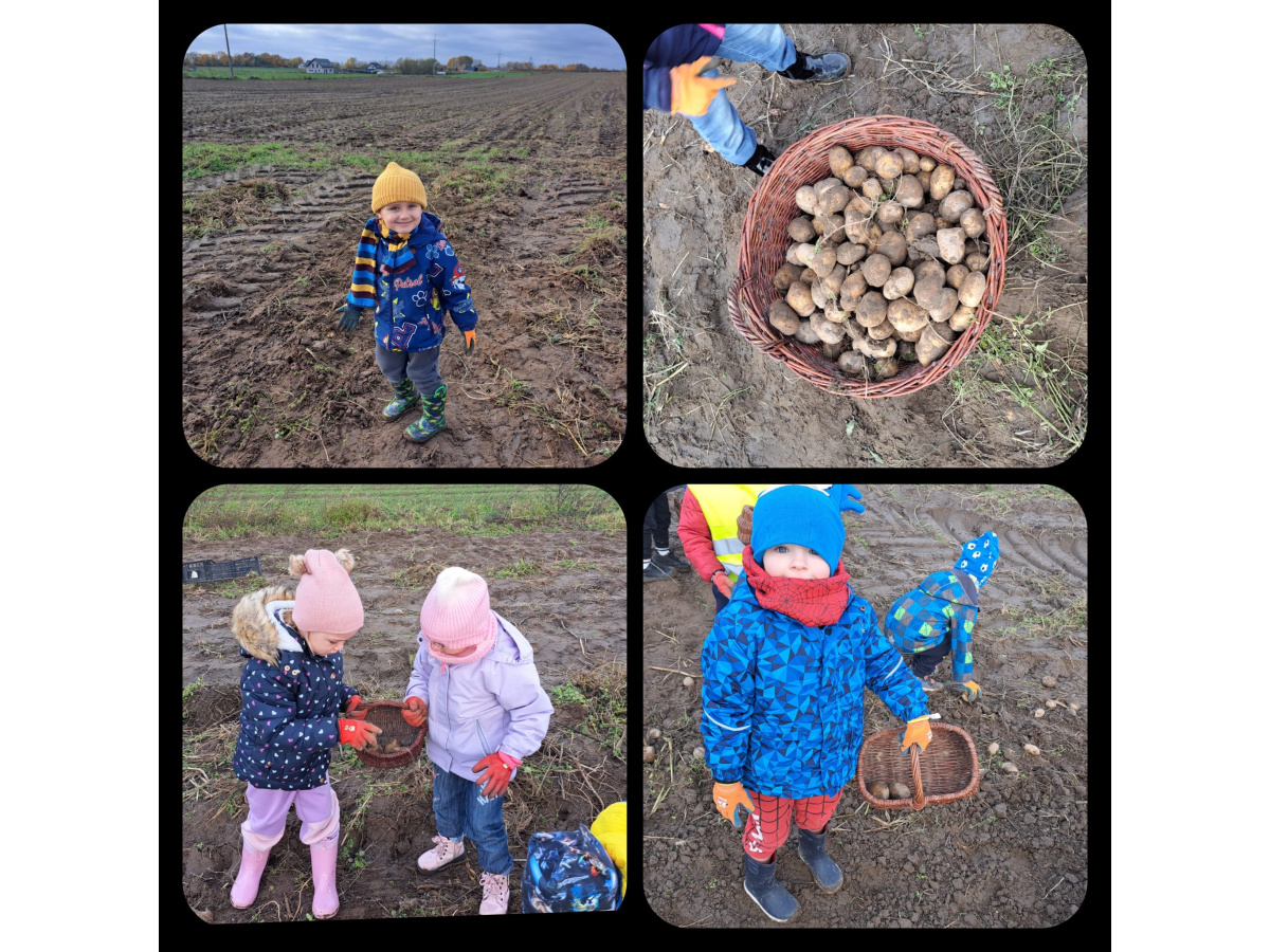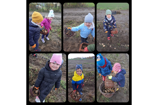 Nasze czterolatki wybrały się na pełną wrażeń wycieczkę do Edukacyjnej Zagrody Wiejskiej w Kozielcu. Już sama podróż autokarem wywołała mnóstwo radości i pozytywnych emocji! Na miejscu dzieci mogły samodzielnie wykopać ziemniaki, a następnie ze smakiem je zjeść. Z zebranych ziemniaczków powstały też  „ziemniaczane cudaki”.