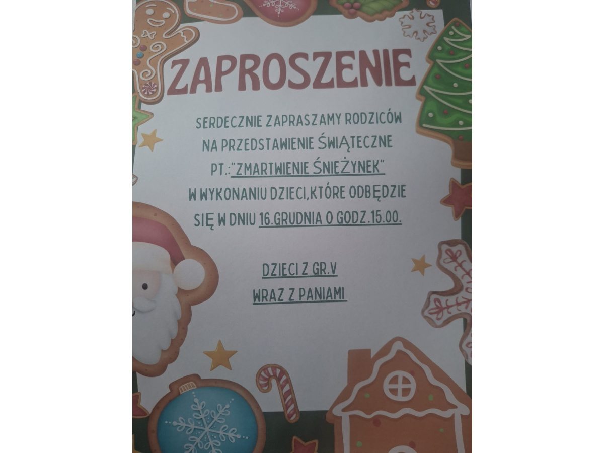 INFORMACJA O SPOTKANIU ŚWIĄTECZNYM Z RODZICAMI w gr.V