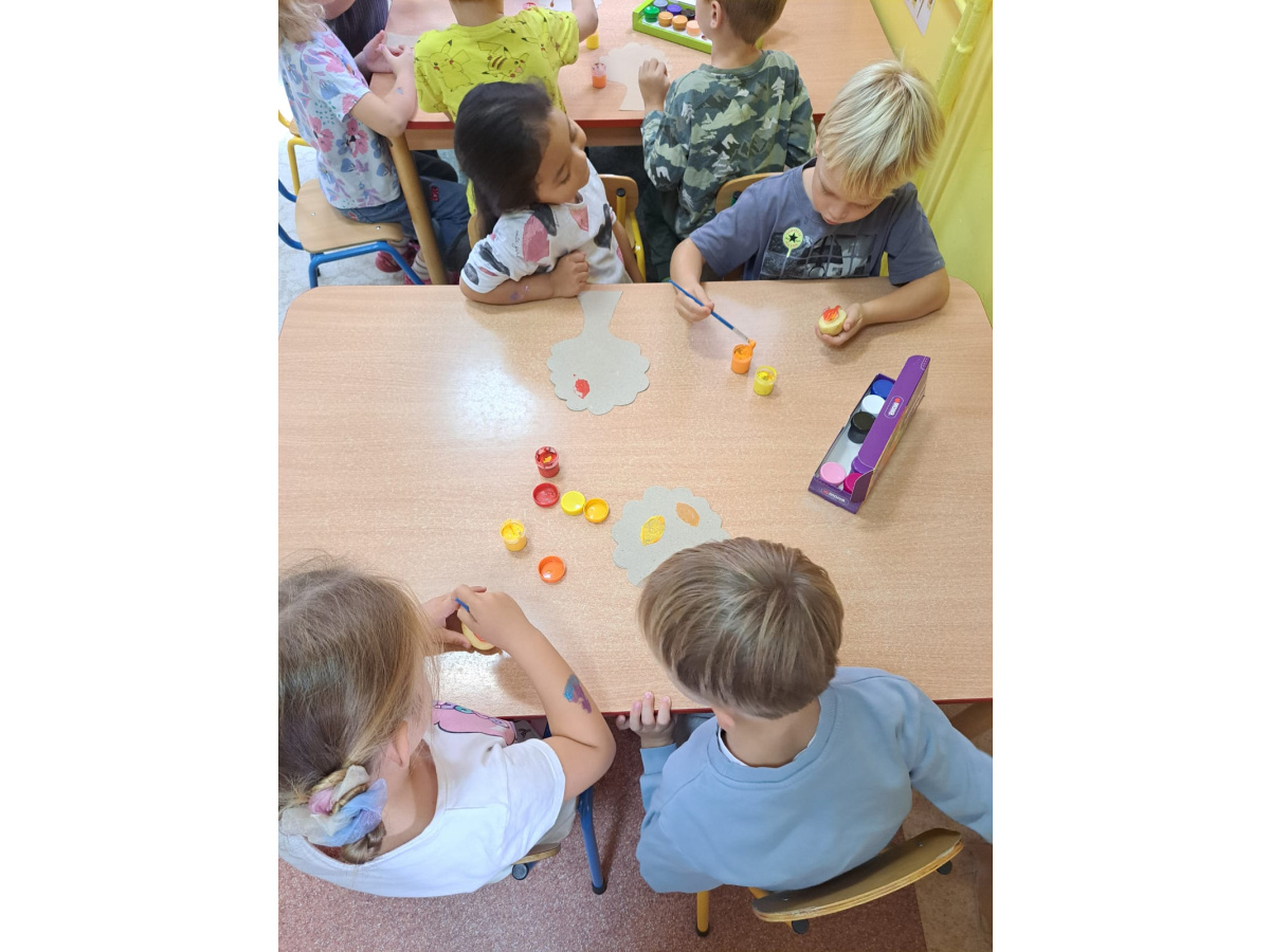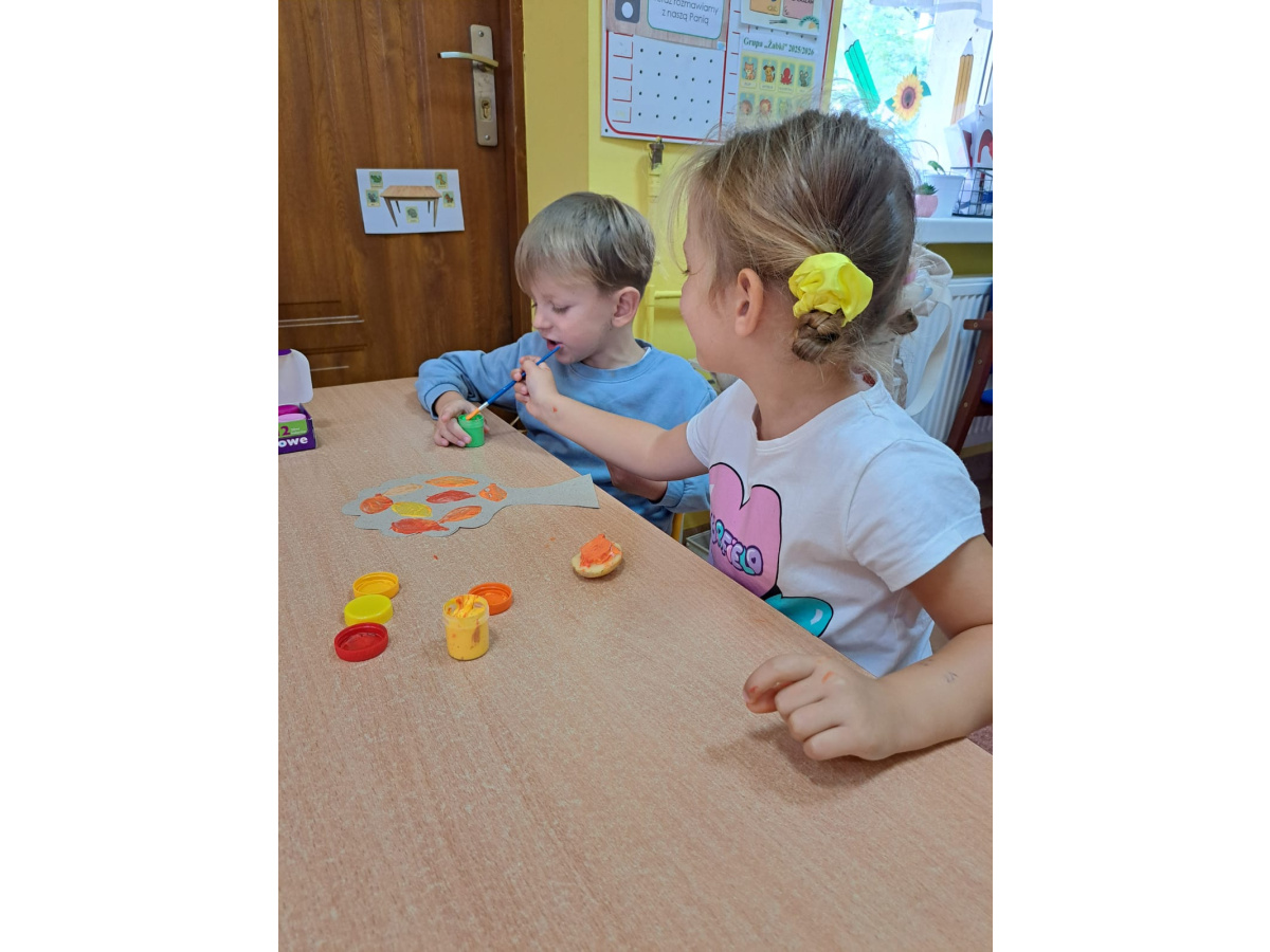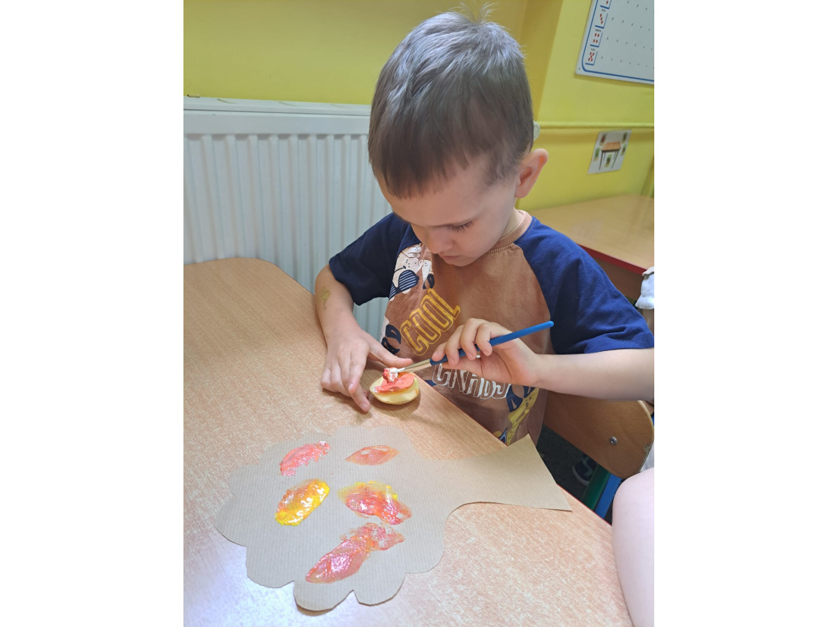 Jesienne prace plastyczne Żabek- stemplowanie ziemniakiem n/t "Kolorwe liście"