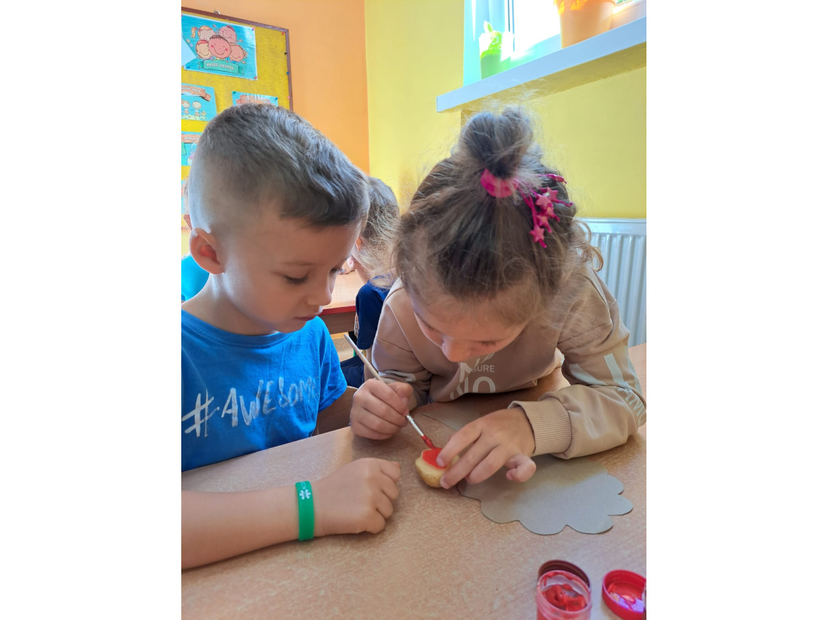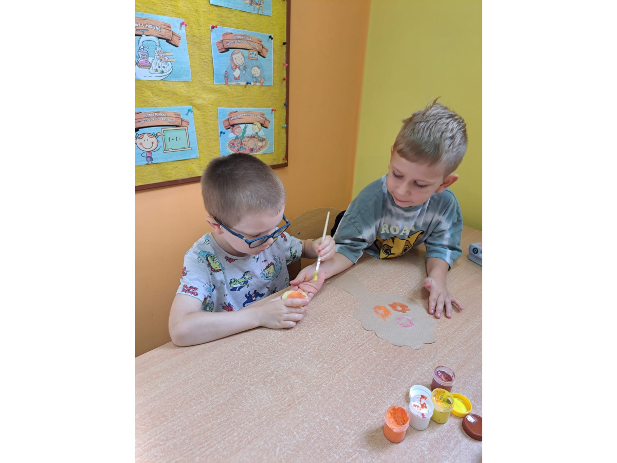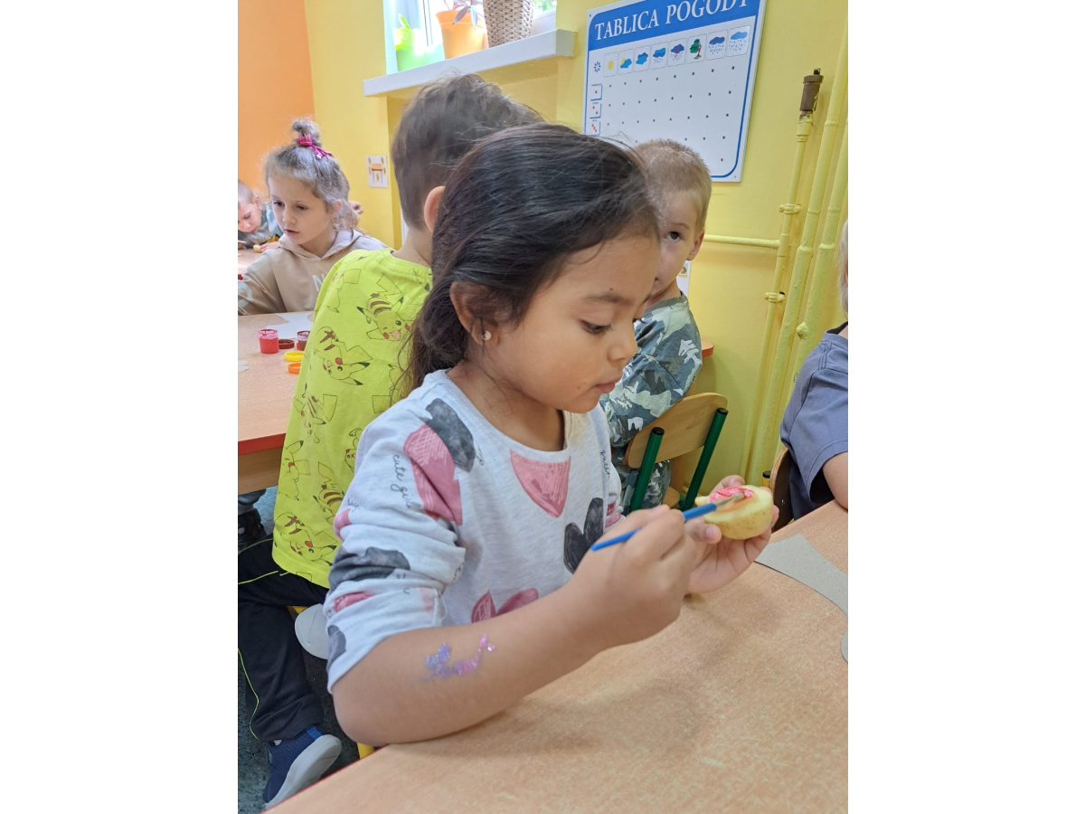 Jesienne prace plastyczne Żabek- stemplowanie ziemniakiem n/t "Kolorwe liście"