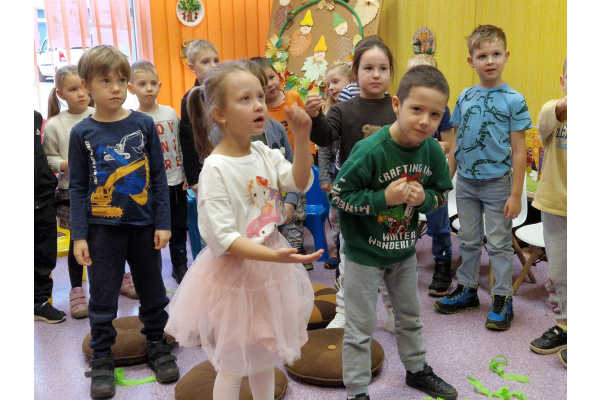 Krasnoludki poznały zasady ruchu drogowego w teorii oraz w praktyce. Oglądały film edukacyjny, a następnie zamieniły się w „samochody”, które przejeżdżały pod mostem i wykonywały slalom między pachołkami.