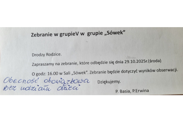 Czytaj więcej!ZEBRANIE Z RODZICAMI GRUPA V