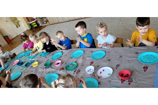 Dzieci z Grupy,,, Sówek" stworzyły własnego pająka. Ćwiczyły sprawność swoich paluszków. Każda praca jest inna, wyjątkowa.