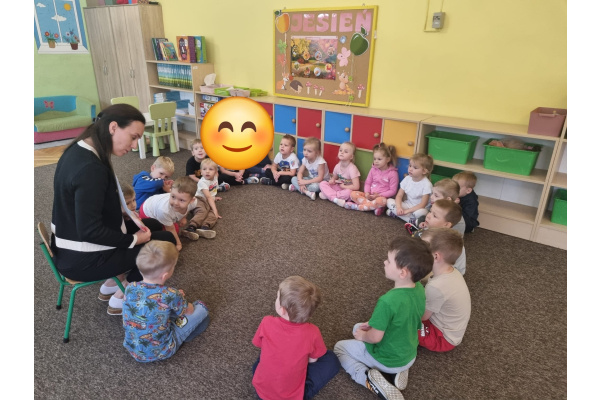 Z okazji Światowego Dnia Zdrowia Psychicznego, który przypada 10 października, dzieci z grupy 2 miały zajęcia z panią psycholog Justyną. Dzieci wspólnie rozpoznawały emocje, opowiadały co