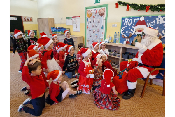W piątek nasze przedszkolaki odwiedził Mikołaj w towarzystwie swoich pomocników. Przyniósł dla dzieci słodkie upominki,które wręczył po odśpiewaniu przez przedszkolaki okolicznościowej piosenki. Później były mikołajkowe aktywności- konkurencja sprawnościowa, zadania z kodowaniem, karty z zadaniami ruchowymi i zabawa papieroplastyczna. Była też okazja, by świętować imieniny naszego Mikołaja. To był na prawdę wesoły dzień.