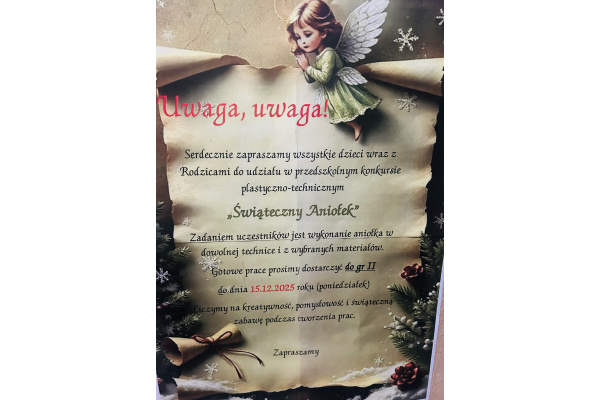 Czytaj więcej!ZAPRASZAMY DO KONKURSU „ŚWIĄTECZNY ANIOŁEK”