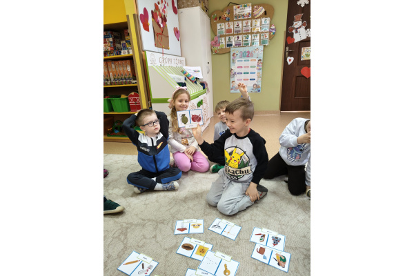Podczas zajęć przedszkolaki poznały pojęcie homonimów, czyli wyrazów, które brzmią tak samo, ale mają różne znaczenia. Dzieci z dużym zaangażowaniem odkrywały, że „zamek” może oznaczać zarówno budowlę, jak i suwak w kurtce, a „klucz” może służyć do otwierania drzwi lub być rozwiązaniem zagadki.