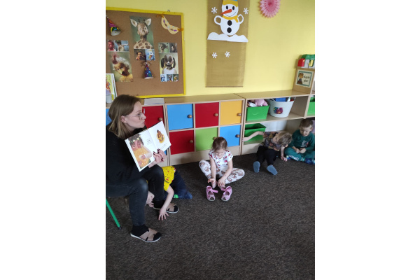 Maluszki z grupy Pszczółek gościły w tym dniu mamę Michałka, która przeczytała dzieciom piękną bajkę o uczuciach. Bawiliśmy się usprawniając aparat mowy oraz rozmawialiśmy o tym jak ważna jest mowa w życiu każdego z nas i jak możemy używać mowy aby sprawić komuś przyjemność.