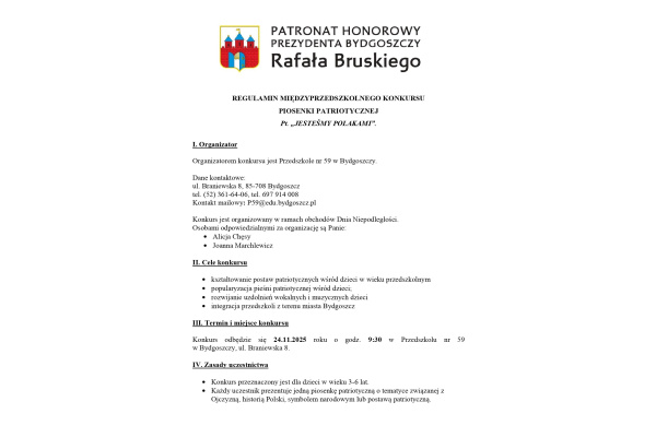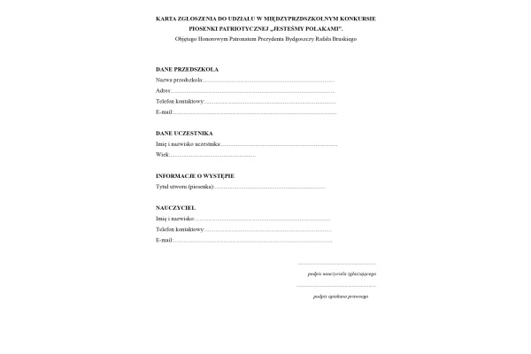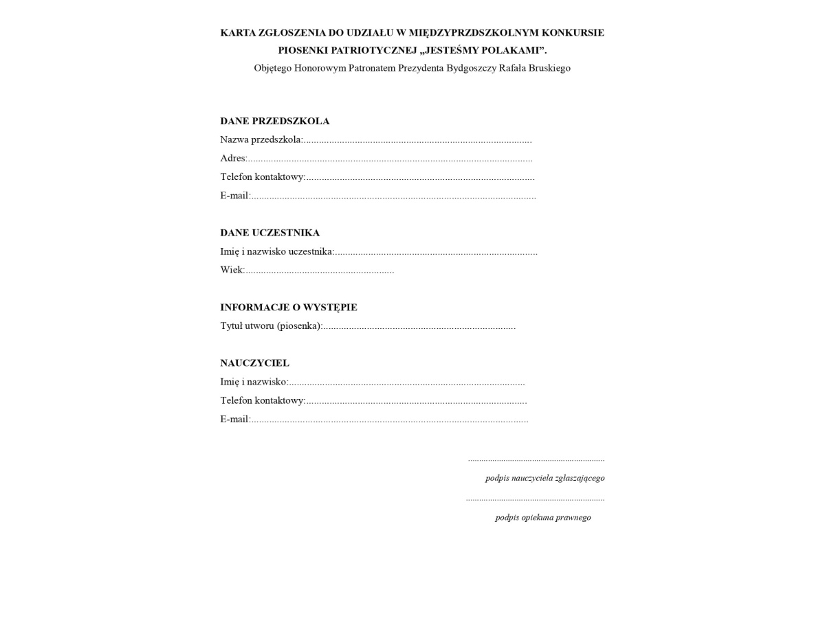 Serdecznie zapraszamy dzieci do udziału w MIĘDZYPRZEDSZKOLNYM KONKURSIE PIOSENKI PATRIOTYCZNEJ „JESTEŚMY POLAKAMI”.