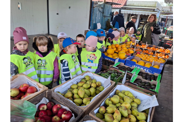 W środę udały się na wycieczkę na targowisko,gdzie obserwowały owoce o warzywa ,które można kupić.