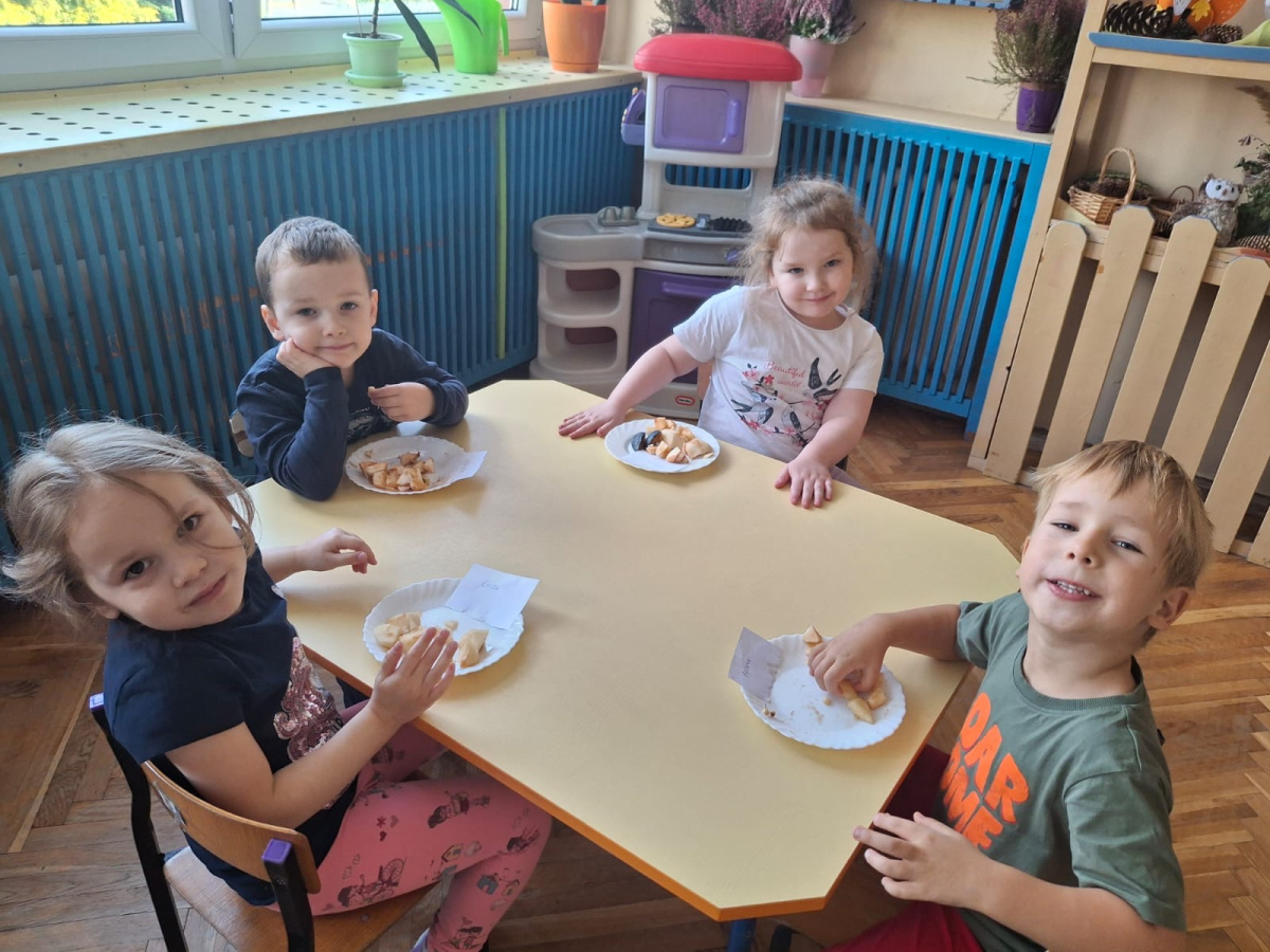 W tym tygodniu dzieci z grupy Sówek realizowały tematykę związaną z owocami i warzywami.