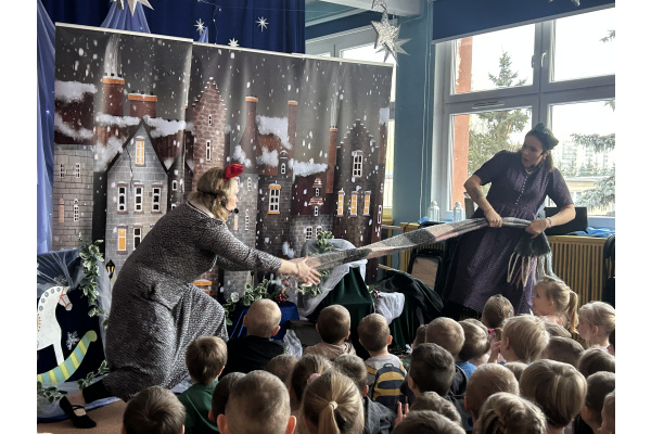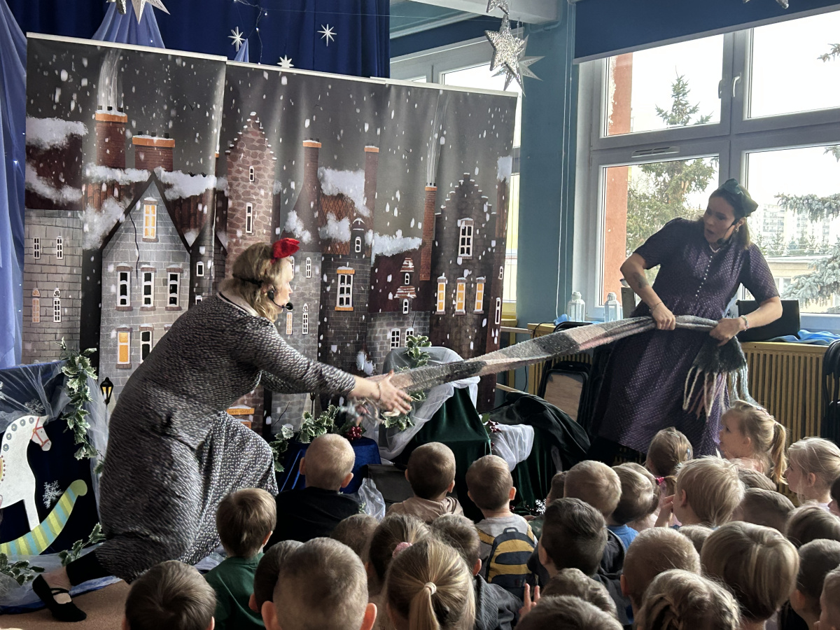 Teatr Bajeczny tym razem zaprosił dzieci na zimową opowieść o dwóch siostrach, zaczarowanym szalu i dziewczynce która swoją dobrocią stopiła lodowate serce swojej siostry. Przepiękna muzyka i scenografia wprowadziła dzieci w ten bajkowy świat ukazując prawdy moralne takie jak dobroć i życzliwość.