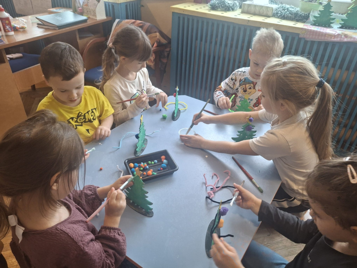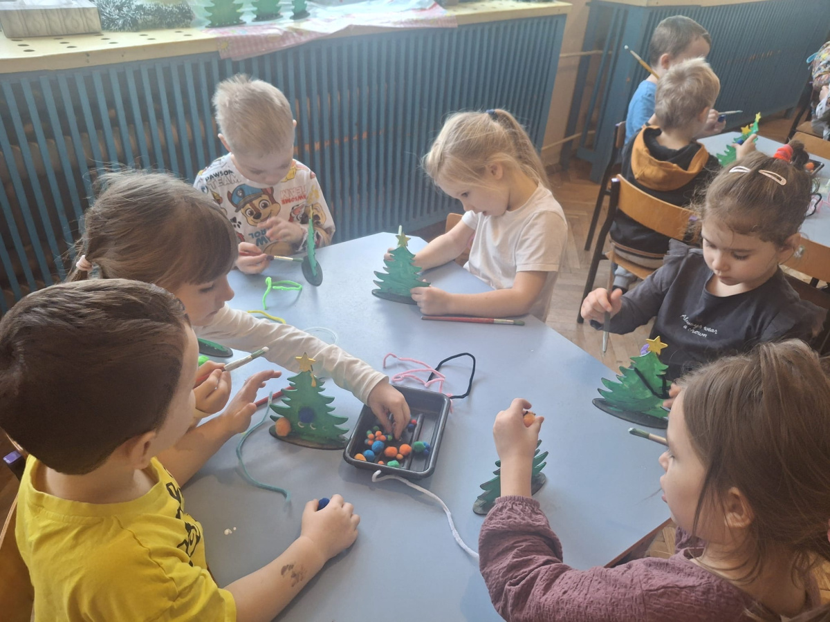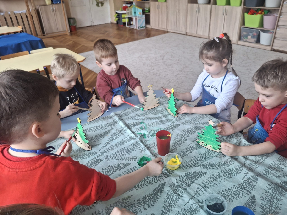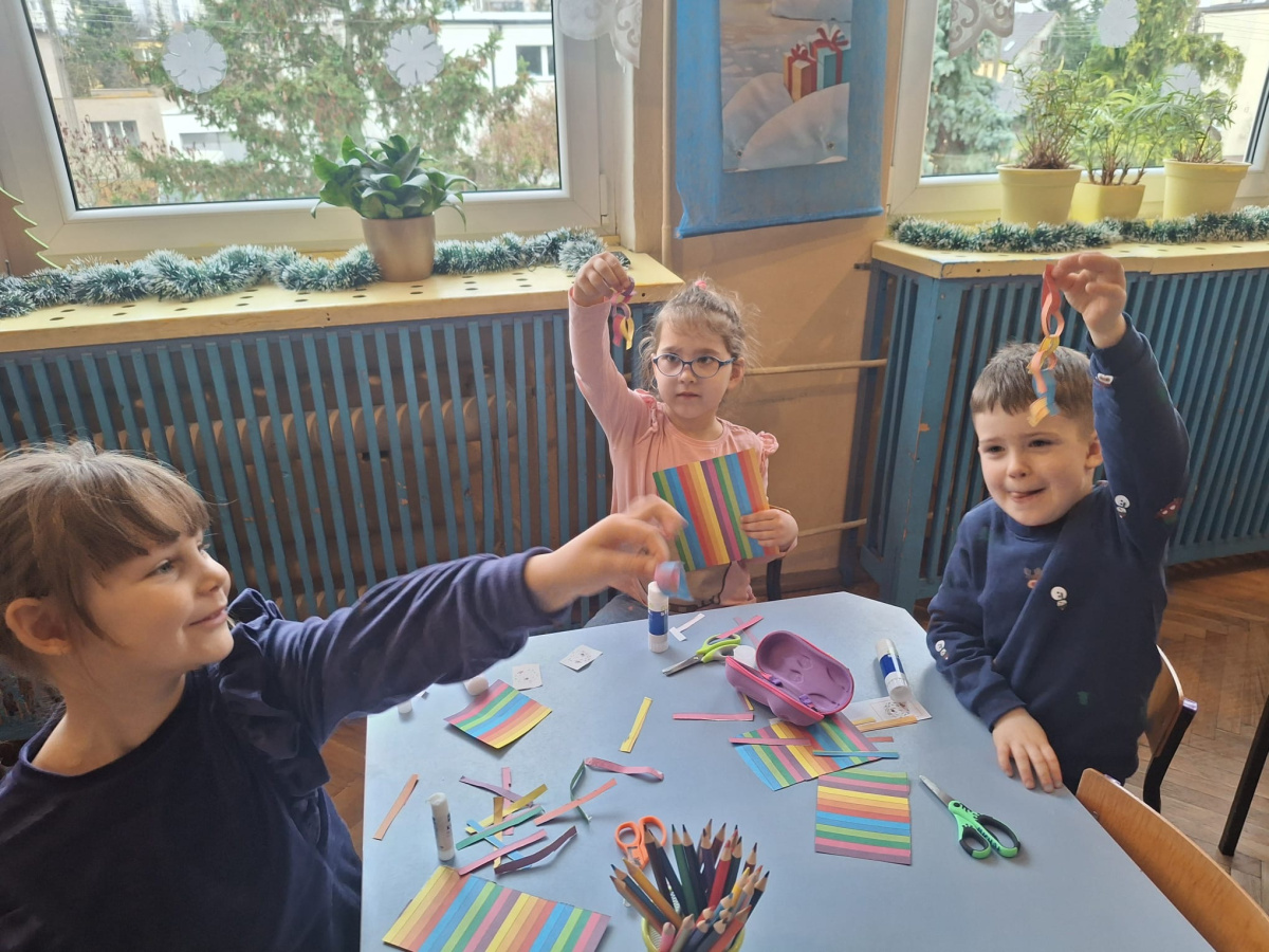 Dzieci z Sówek w grudniu przygotowywały się na nadejście Świąt-oprócz ubierania choinki-wykonywały łańcuchy na choinkę malowały drewniane ozdoby oraz przygotowywały prezenty dla Rodziców.