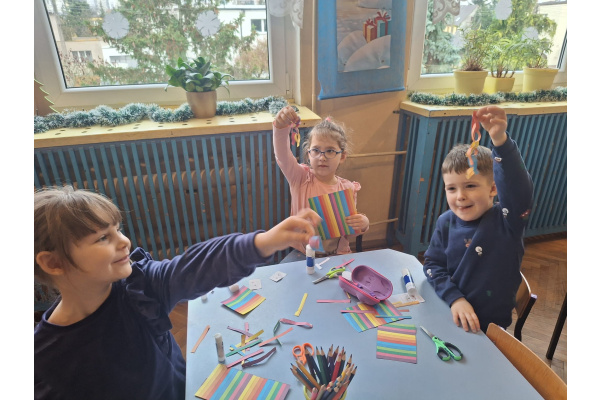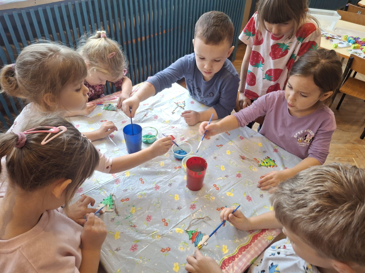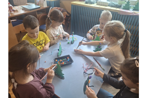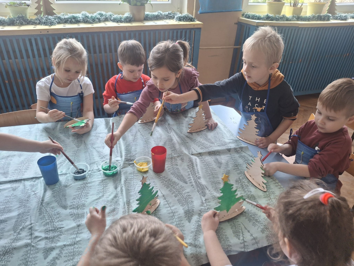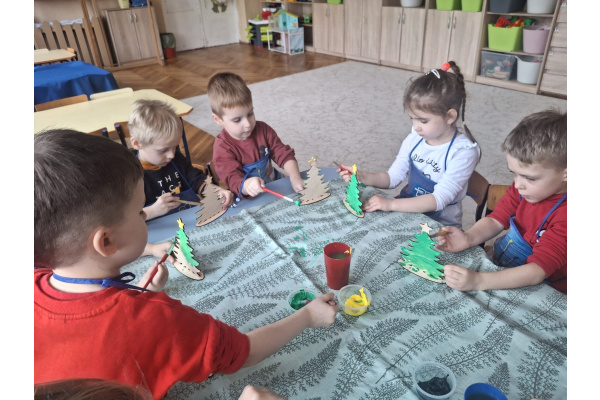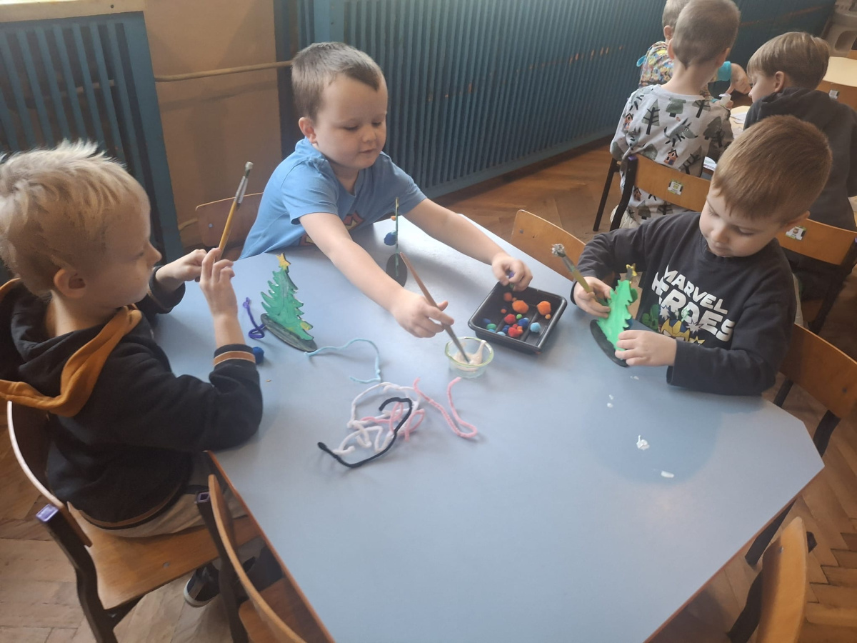 Dzieci z Sówek w grudniu przygotowywały się na nadejście Świąt-oprócz ubierania choinki-wykonywały łańcuchy na choinkę malowały drewniane ozdoby oraz przygotowywały prezenty dla Rodziców.