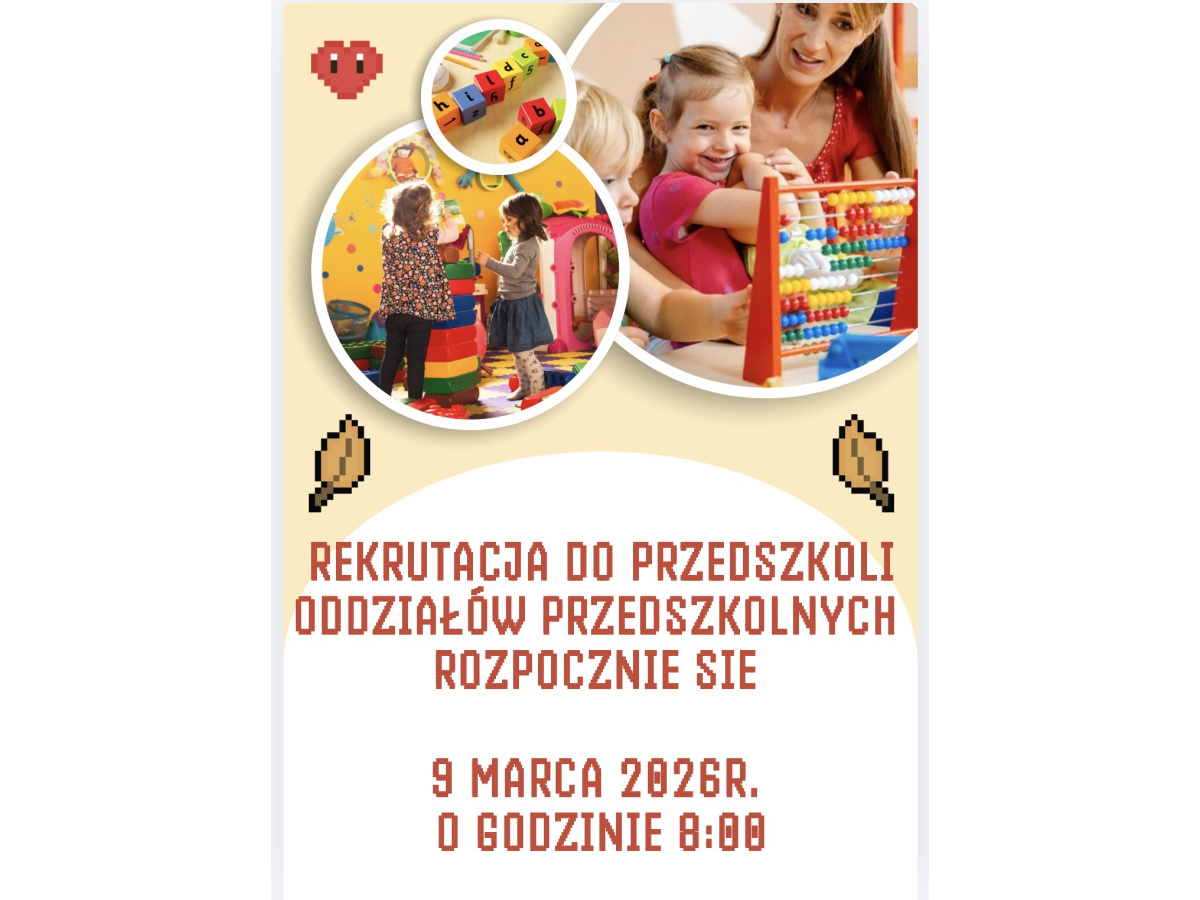 Rekrutacja do przedszkoli i oddziałów przedszkolnych w szkołach podstawowych prowadzonych przez Miasto Bydgoszcz na rok szkolny 2026/2027 rozpocznie się 9 marca 2026r. o godz. 8:00.