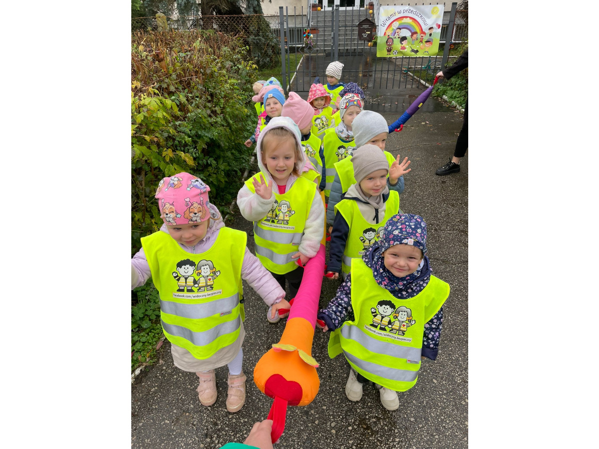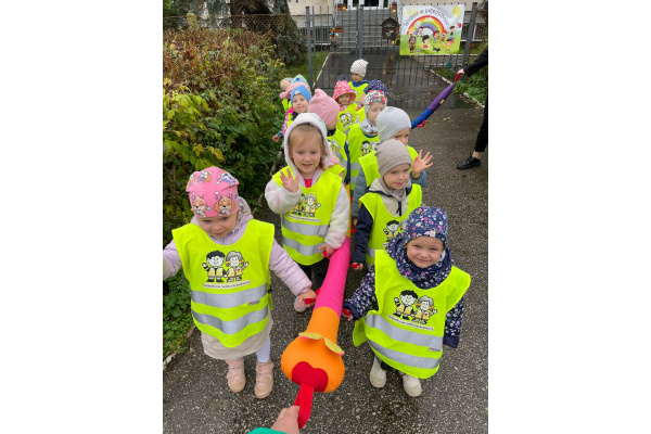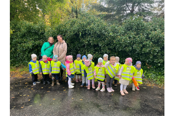 Pierwsze wyjscie na spacer poza teren przedszkola