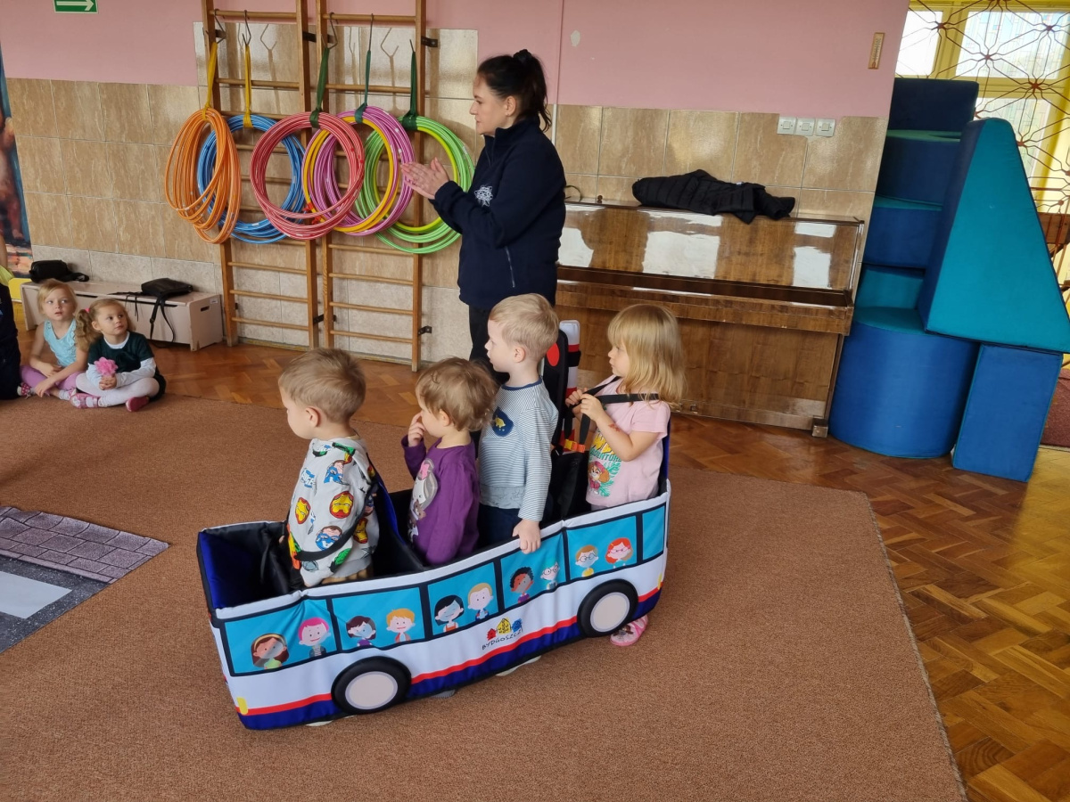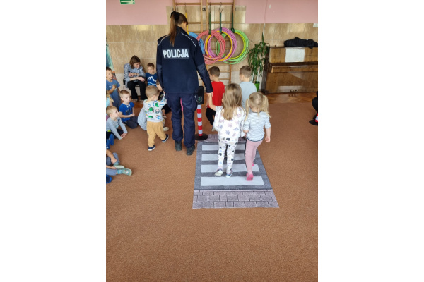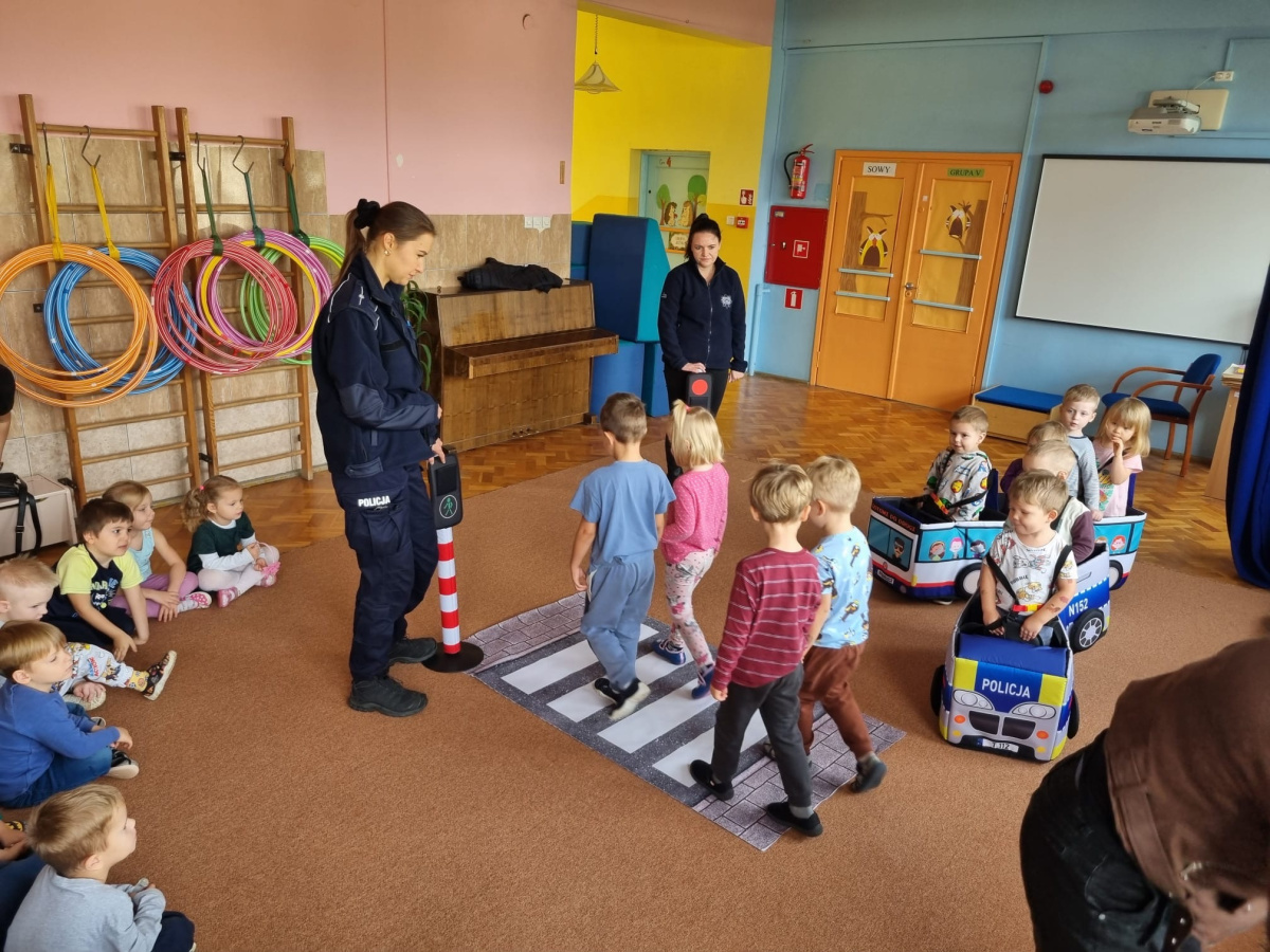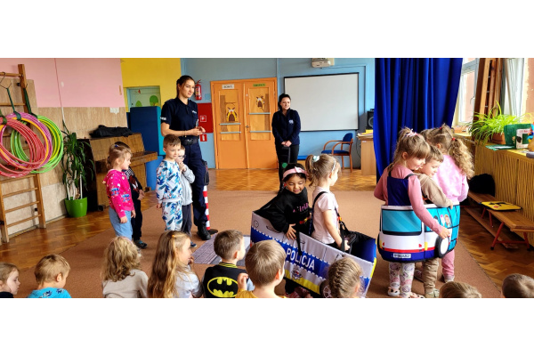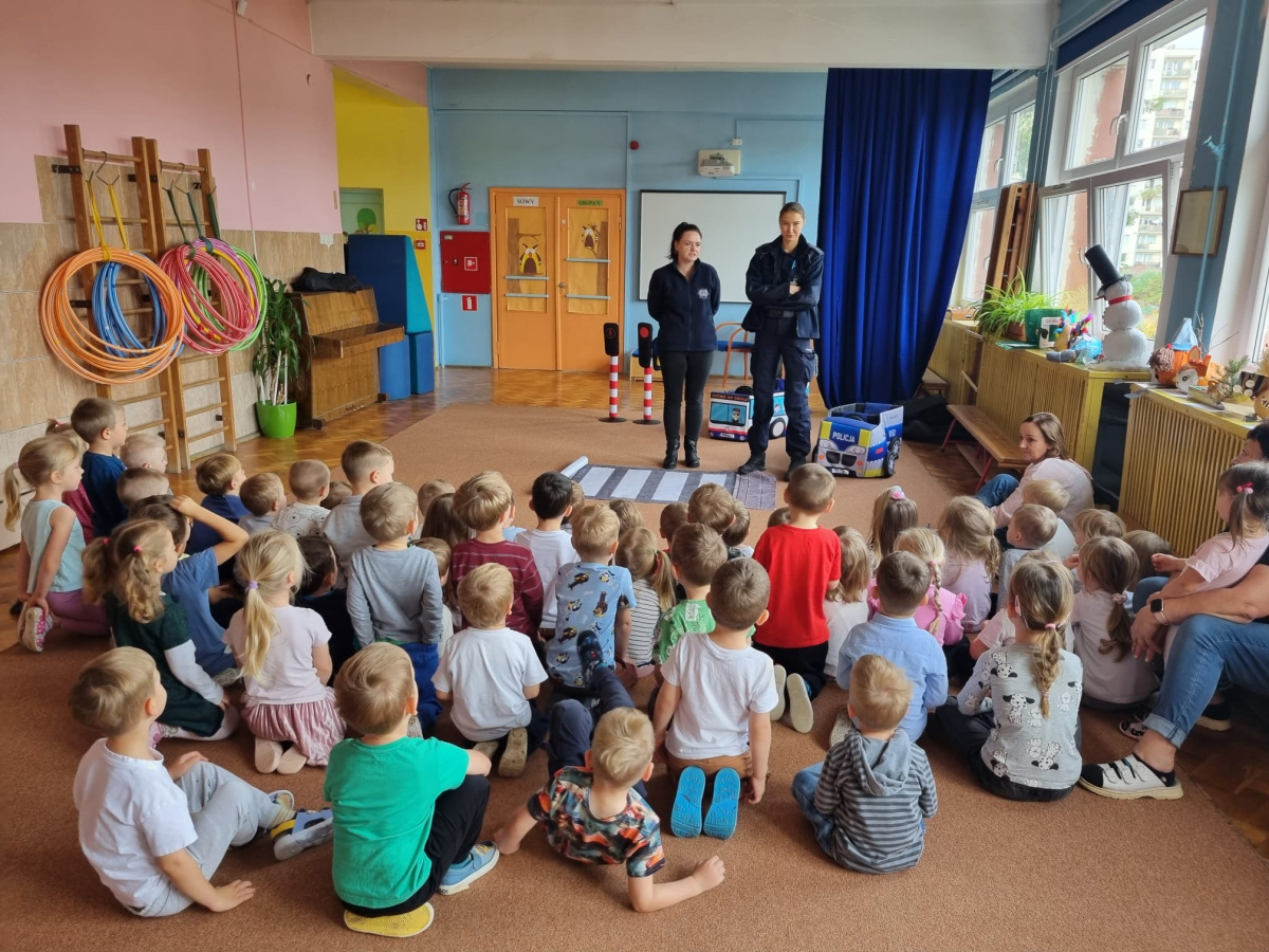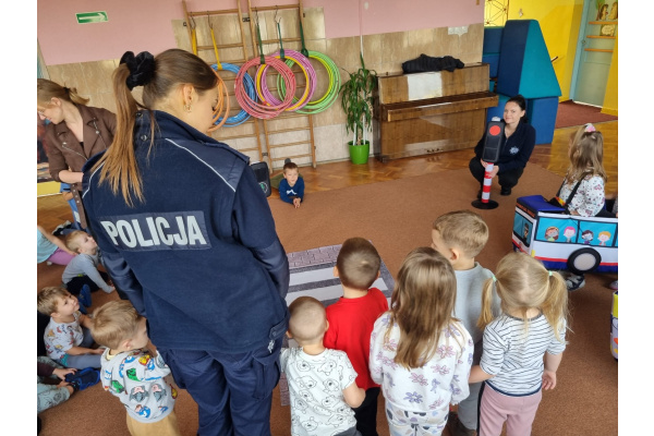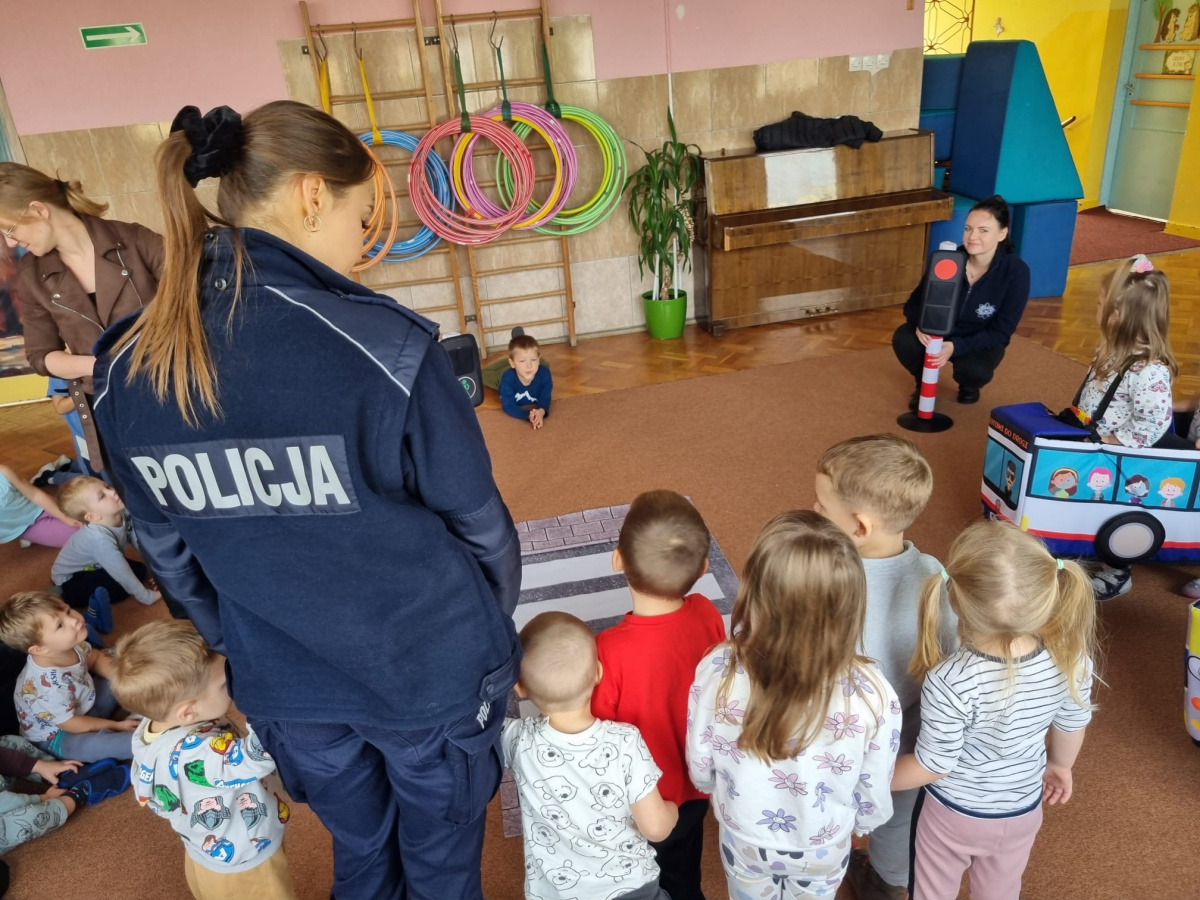 W miniony piątek nasze przedszkole odwiedziły panie policjantki i powtórzyły z dziećmi jak należy zachowywać się na drodze. Nie tylko opowiadały jak trzeba się tam zachować ale także odegrały się z dziećmi kilka scenek związanych z ruchem drogowym.