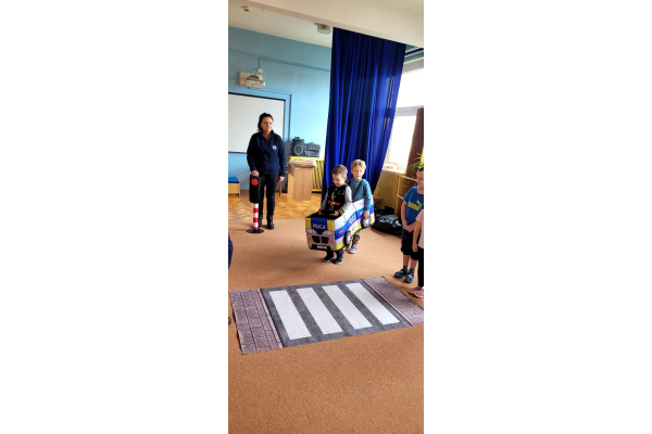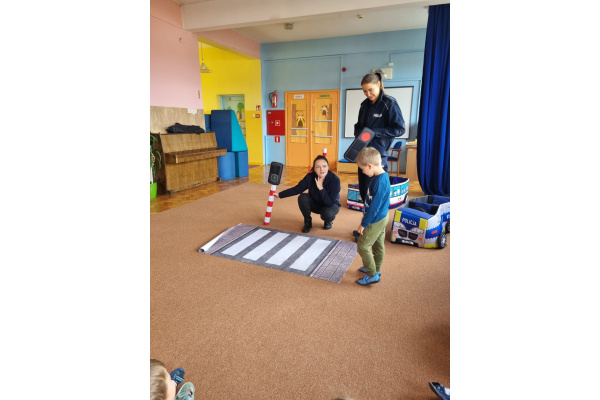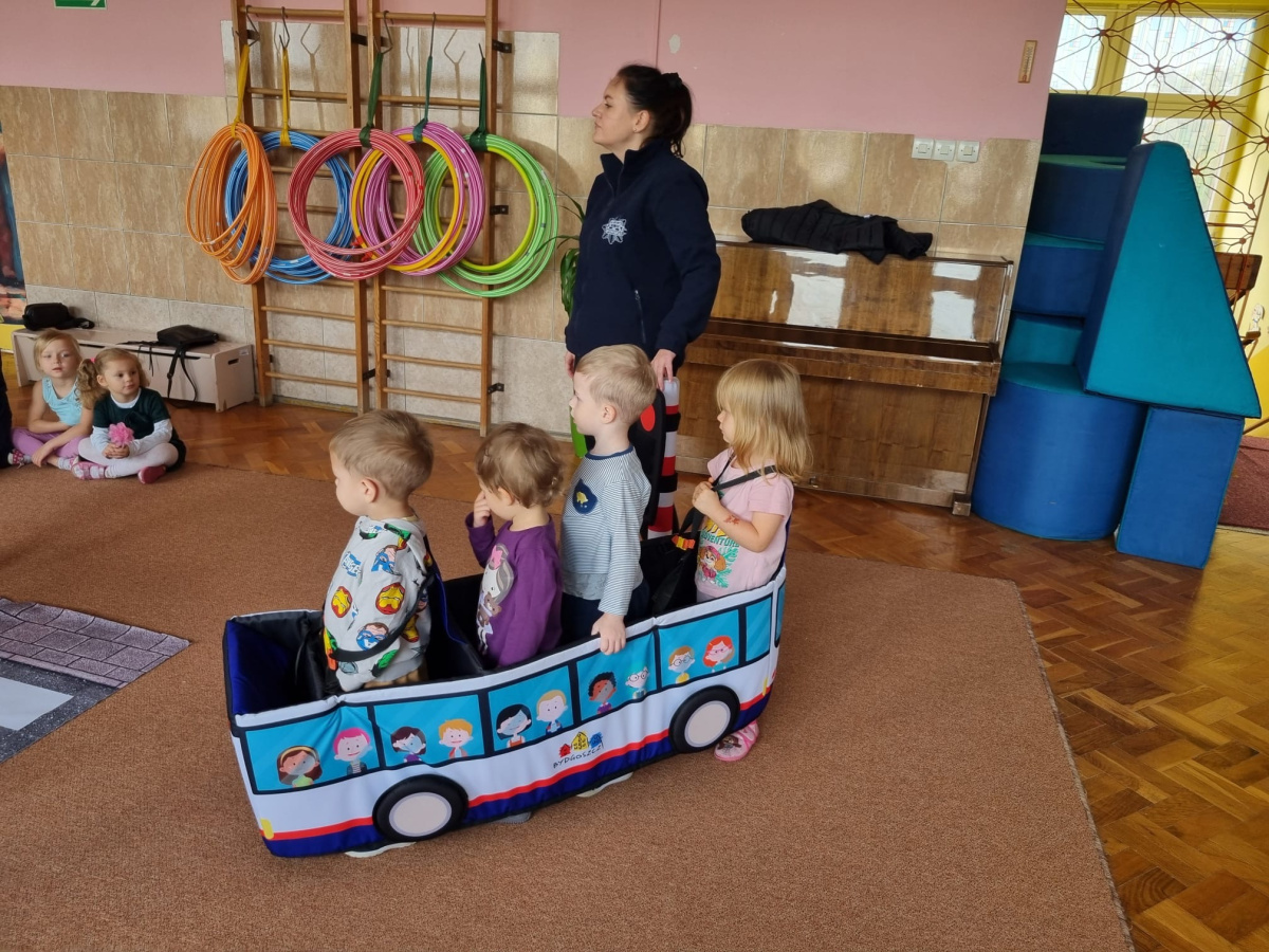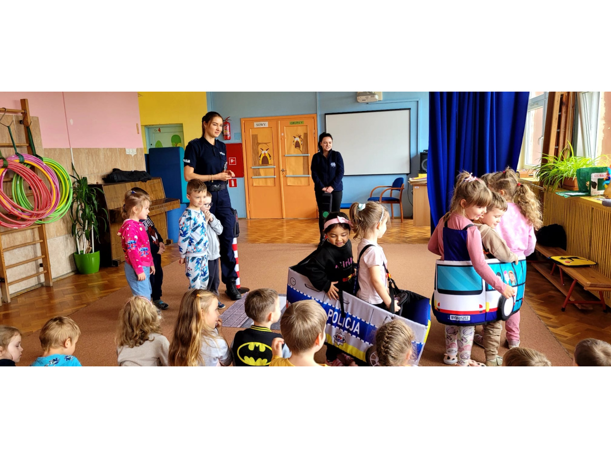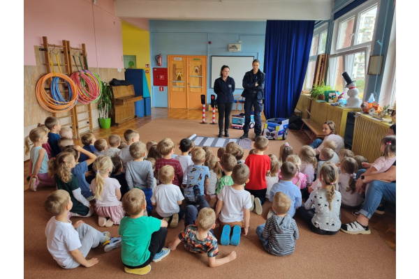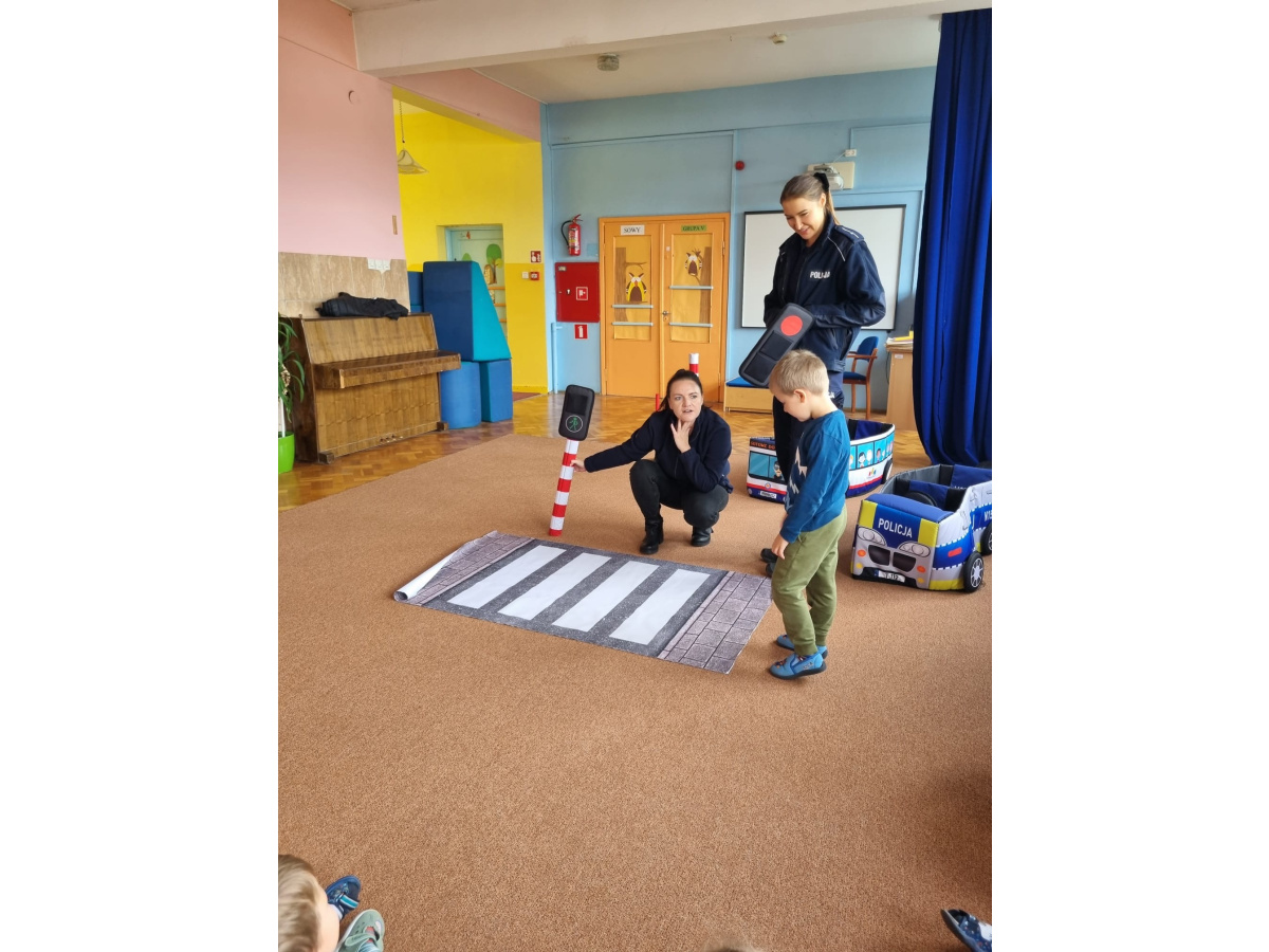 W miniony piątek nasze przedszkole odwiedziły panie policjantki i powtórzyły z dziećmi jak należy zachowywać się na drodze. Nie tylko opowiadały jak trzeba się tam zachować ale także odegrały się z dziećmi kilka scenek związanych z ruchem drogowym.