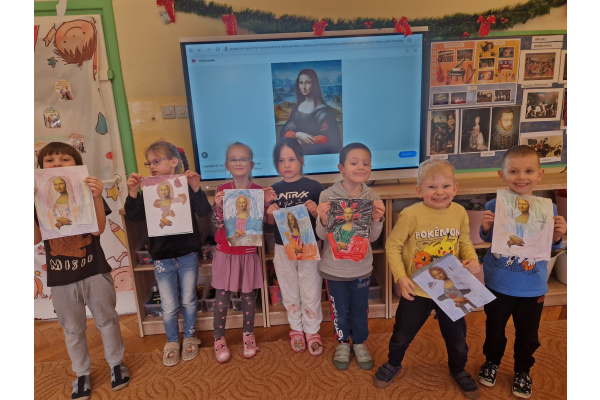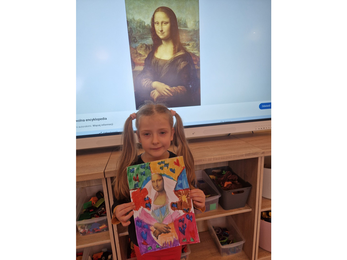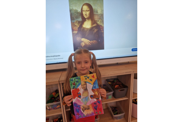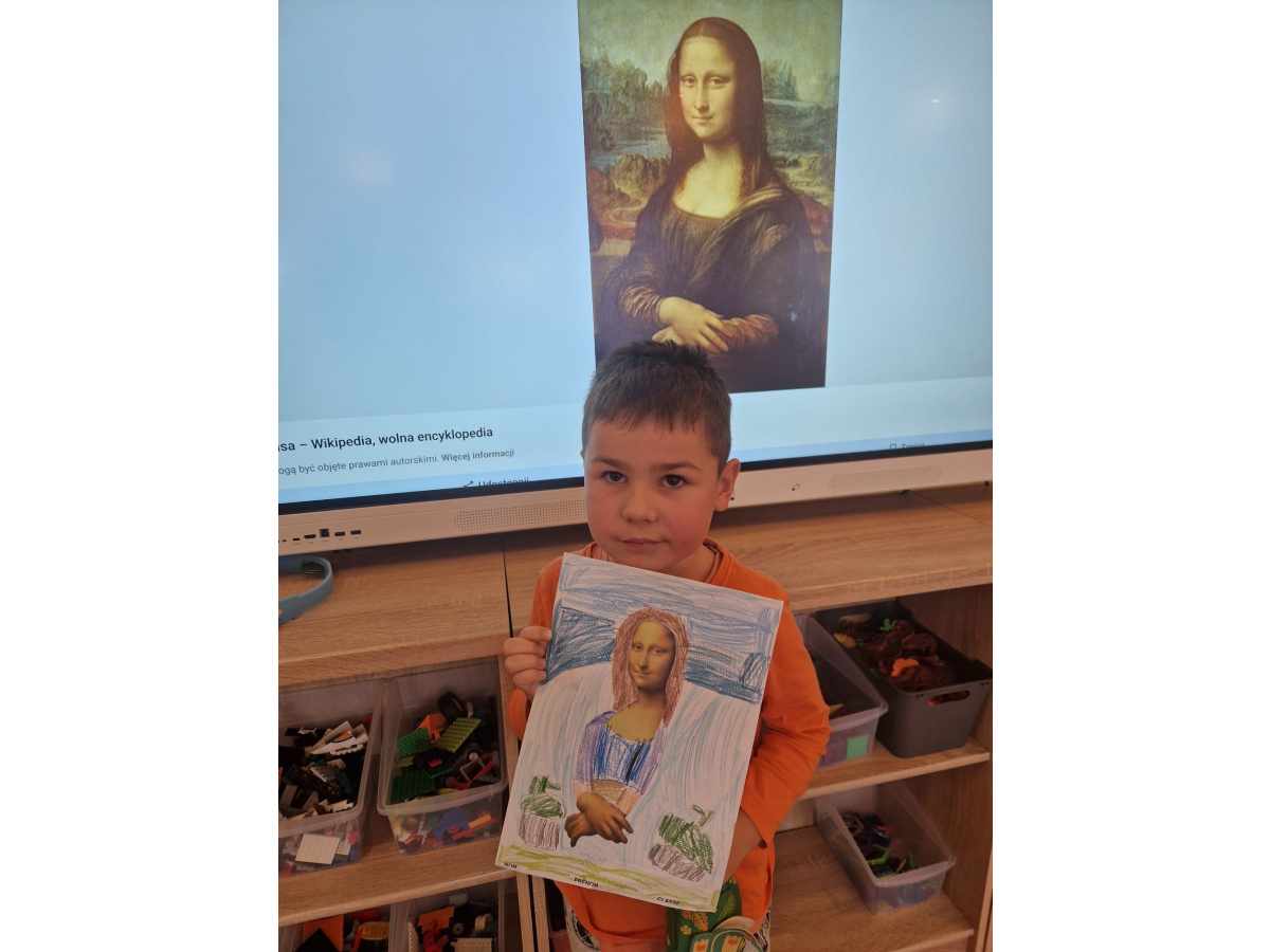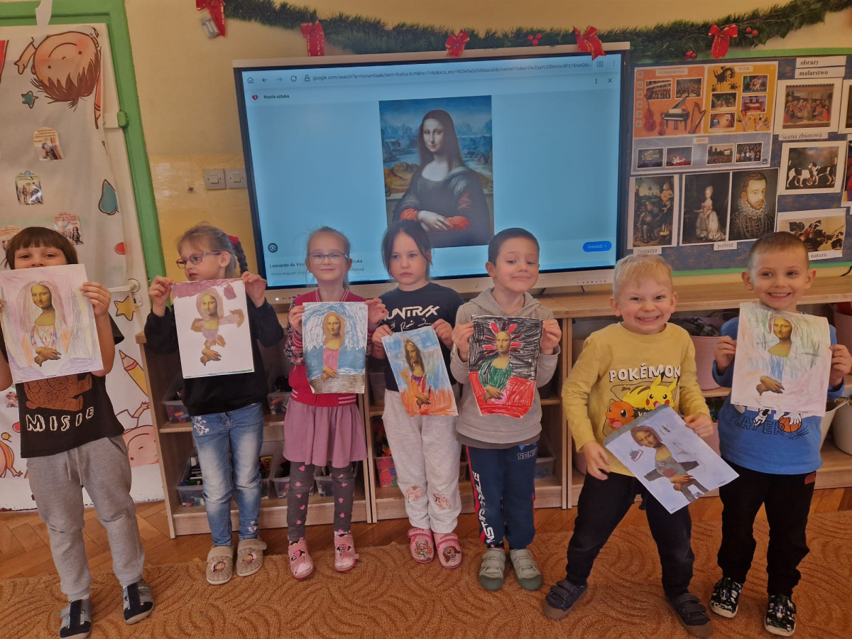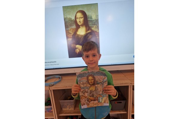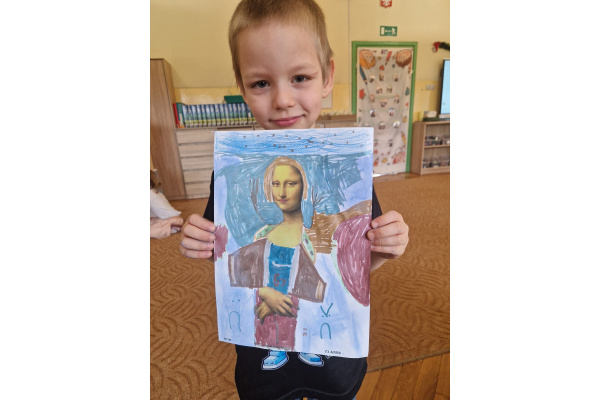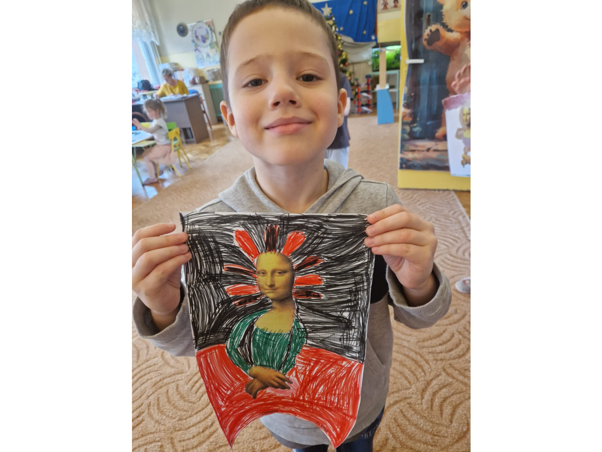 W ubiegłym tygodniu dzieci poznawały różne miejsca związane z kulturą. Tak więc brały udział w przedstawieniu teatralnym, w musicalu, organizowały zabawy teatralne. Poznały też różne rodzaje muzeów. Podsumowaniem tego tematu była " wizyta" w galerii sztuki- zajęcie poświęcone malarstwu, różnym tematom obrazów, odkrywaniem tajemnic wybranych dzieł sztuki. Dzieci nauczyły się rozpoznawać krajobraz, portret, martwą naturę, abstrakcję. Z wielkim zainteresowaniem odkrywały piękno malarstwa, z zaciekawieniem dostrzegały szczegóły obrazów ( m. inn. miejsca, które były inspiracją ; dla porównania obraz Canaletta przedstawiający wenecki Pałac Dożów i zdjęcie z tego samego miejsca wykonane przez p. Marzenę). Z wielkim zaangażowaniem podjęły zadanie przedstawienia swojej wizji słynnego obrazu MONA LISA. Oby to spotkanie ze sztuką było zachętą i początkiem przygody z odkrywaniem bogactwa skarbów kultury.