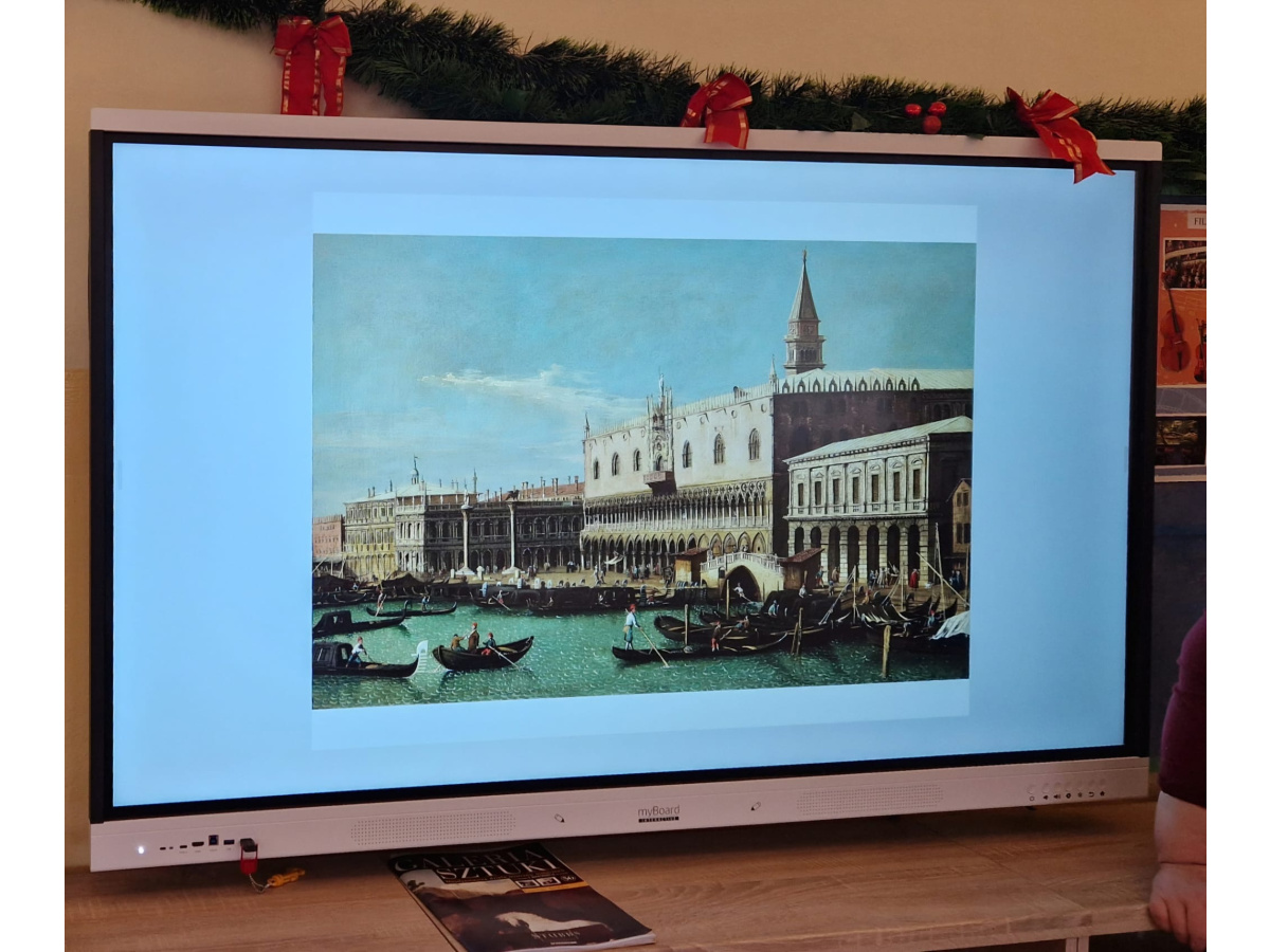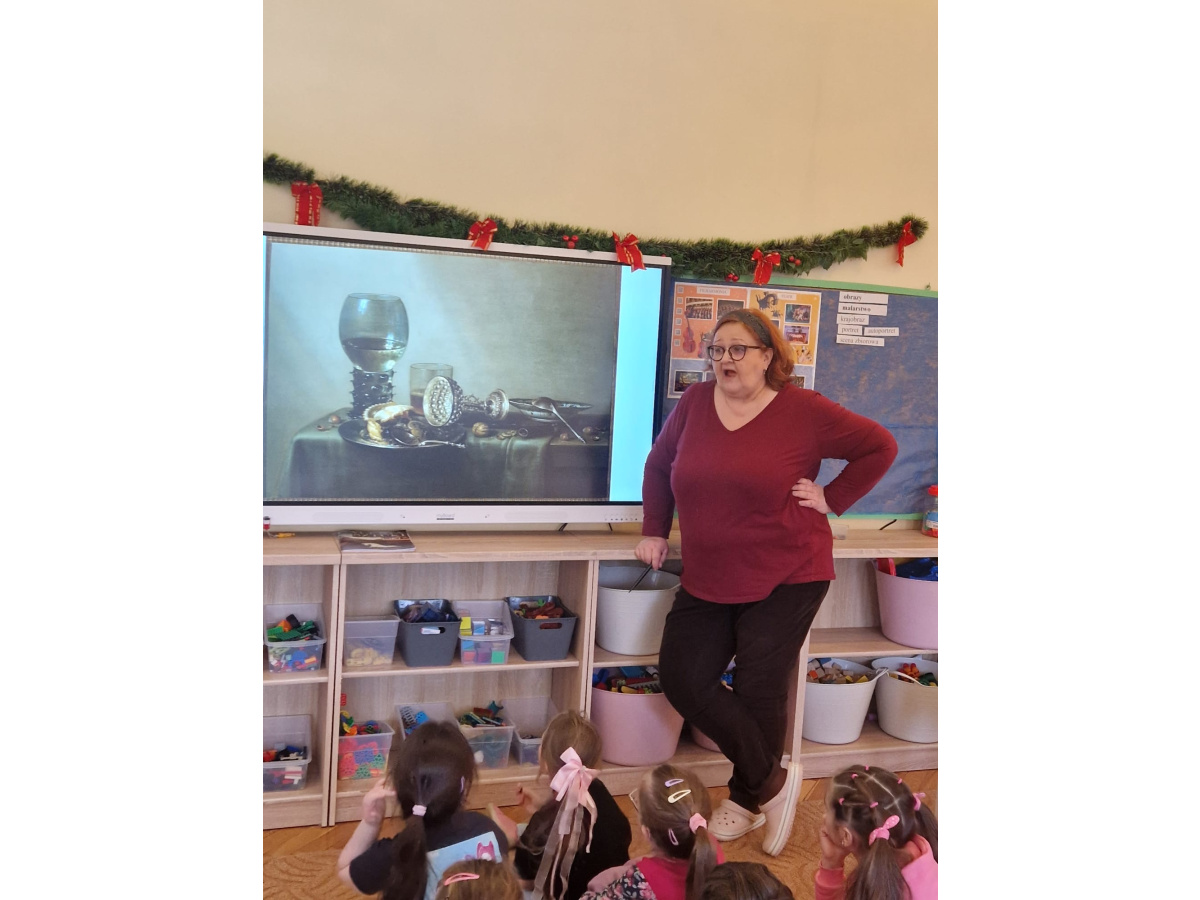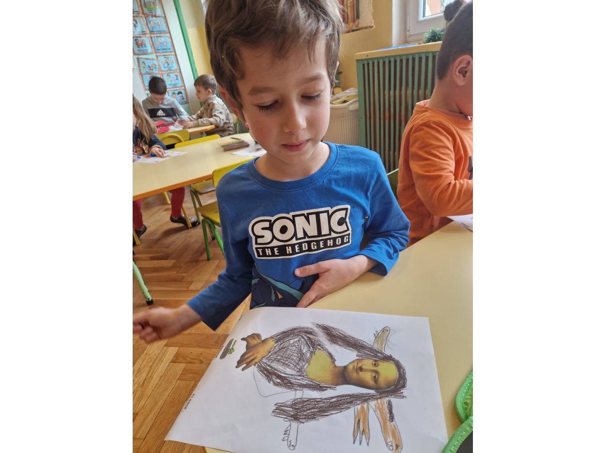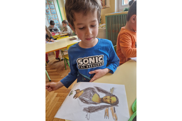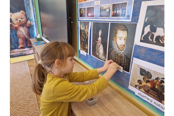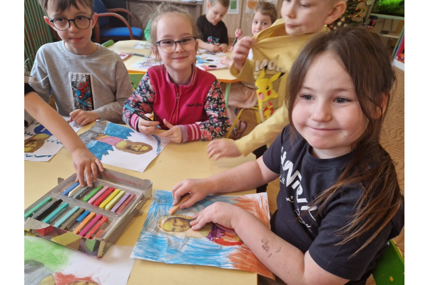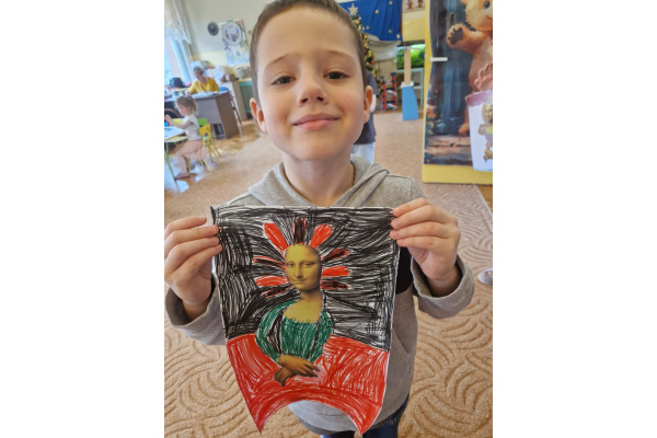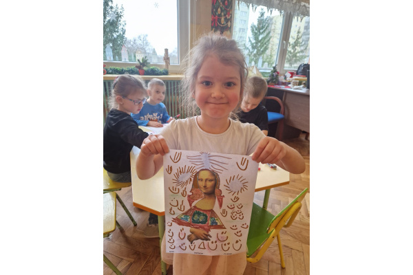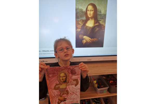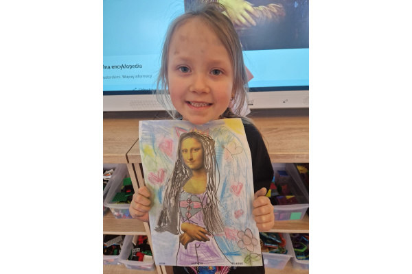 W ubiegłym tygodniu dzieci poznawały różne miejsca związane z kulturą. Tak więc brały udział w przedstawieniu teatralnym, w musicalu, organizowały zabawy teatralne. Poznały też różne rodzaje muzeów. Podsumowaniem tego tematu była " wizyta" w galerii sztuki- zajęcie poświęcone malarstwu, różnym tematom obrazów, odkrywaniem tajemnic wybranych dzieł sztuki. Dzieci nauczyły się rozpoznawać krajobraz, portret, martwą naturę, abstrakcję. Z wielkim zainteresowaniem odkrywały piękno malarstwa, z zaciekawieniem dostrzegały szczegóły obrazów ( m. inn. miejsca, które były inspiracją ; dla porównania obraz Canaletta przedstawiający wenecki Pałac Dożów i zdjęcie z tego samego miejsca wykonane przez p. Marzenę). Z wielkim zaangażowaniem podjęły zadanie przedstawienia swojej wizji słynnego obrazu MONA LISA. Oby to spotkanie ze sztuką było zachętą i początkiem przygody z odkrywaniem bogactwa skarbów kultury.