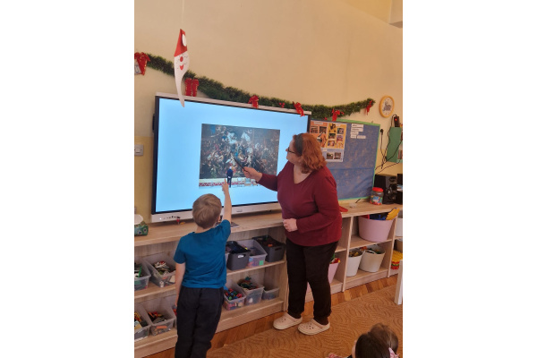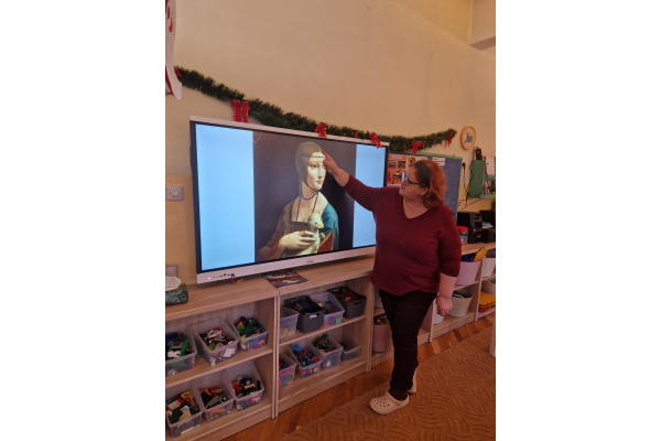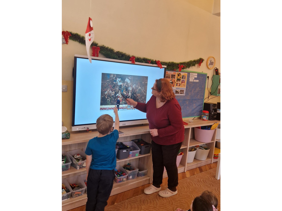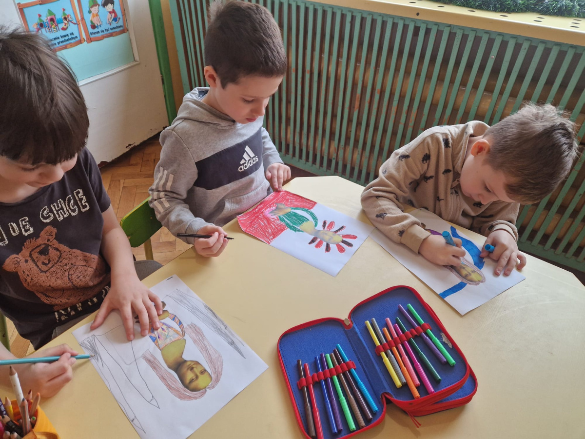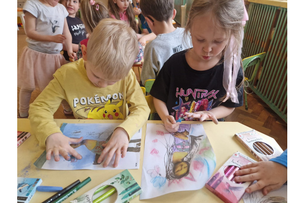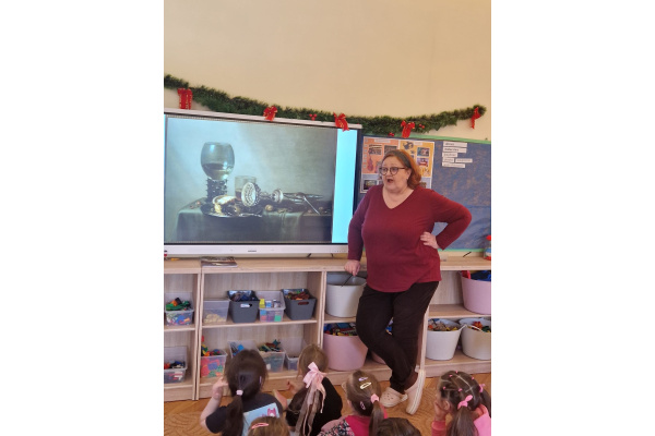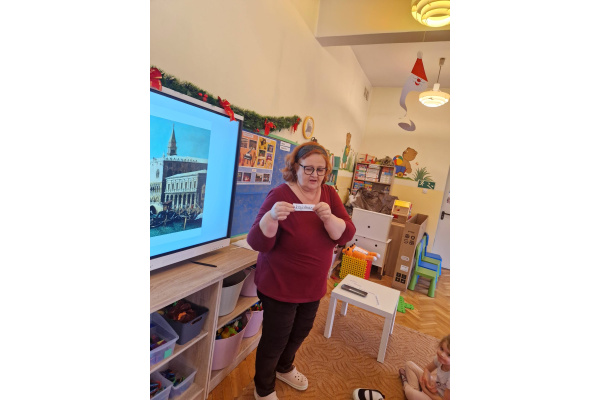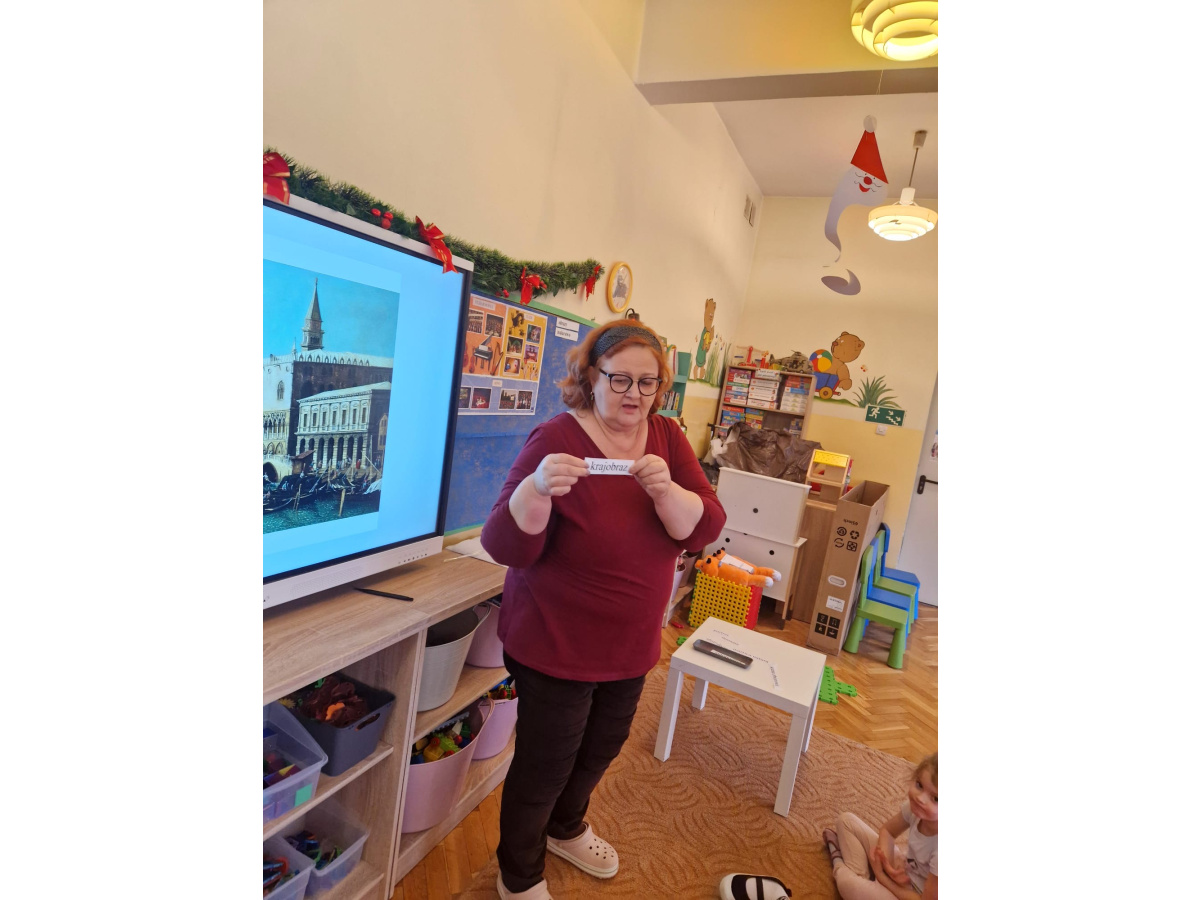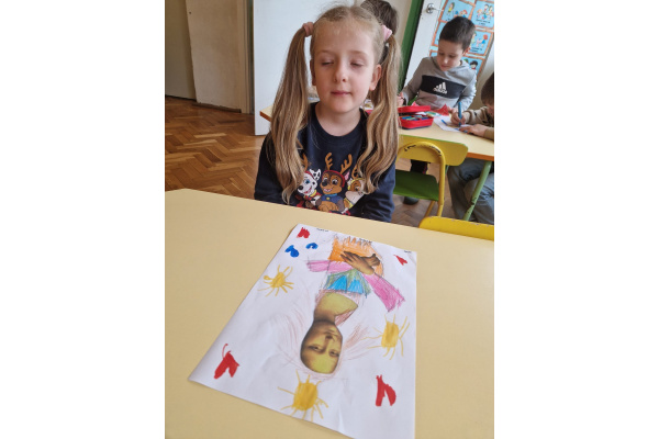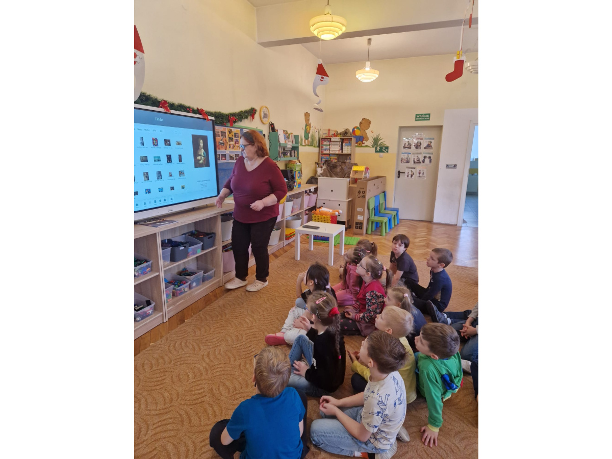 W ubiegłym tygodniu dzieci poznawały różne miejsca związane z kulturą. Tak więc brały udział w przedstawieniu teatralnym, w musicalu, organizowały zabawy teatralne. Poznały też różne rodzaje muzeów. Podsumowaniem tego tematu była " wizyta" w galerii sztuki- zajęcie poświęcone malarstwu, różnym tematom obrazów, odkrywaniem tajemnic wybranych dzieł sztuki. Dzieci nauczyły się rozpoznawać krajobraz, portret, martwą naturę, abstrakcję. Z wielkim zainteresowaniem odkrywały piękno malarstwa, z zaciekawieniem dostrzegały szczegóły obrazów ( m. inn. miejsca, które były inspiracją ; dla porównania obraz Canaletta przedstawiający wenecki Pałac Dożów i zdjęcie z tego samego miejsca wykonane przez p. Marzenę). Z wielkim zaangażowaniem podjęły zadanie przedstawienia swojej wizji słynnego obrazu MONA LISA. Oby to spotkanie ze sztuką było zachętą i początkiem przygody z odkrywaniem bogactwa skarbów kultury.