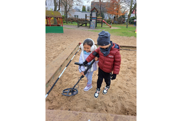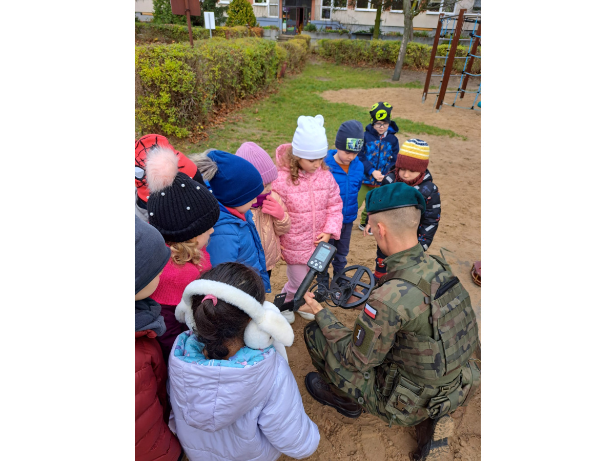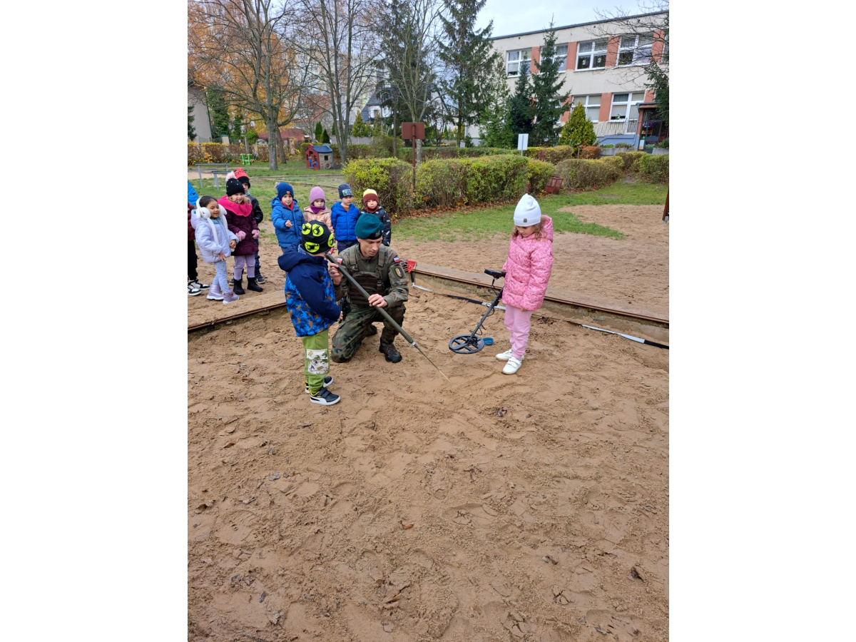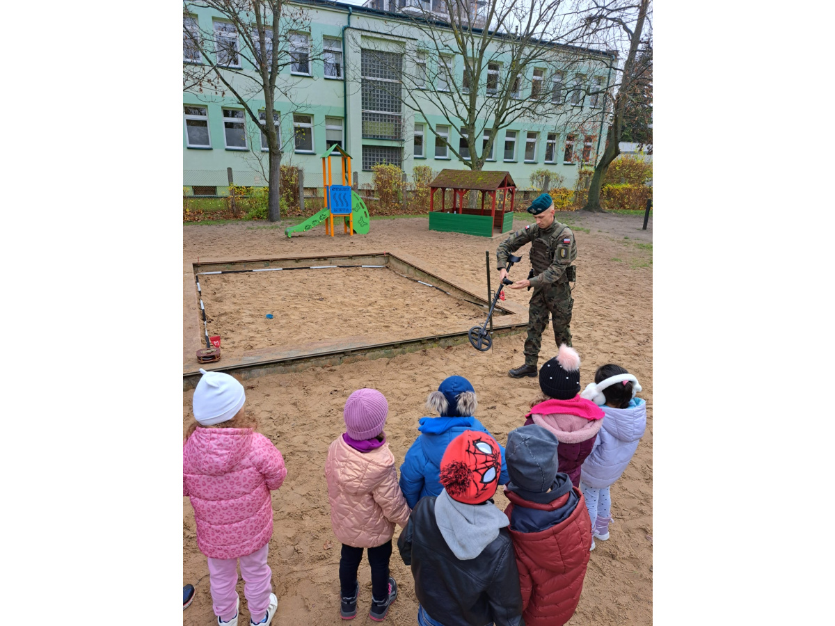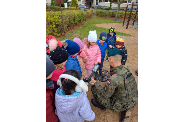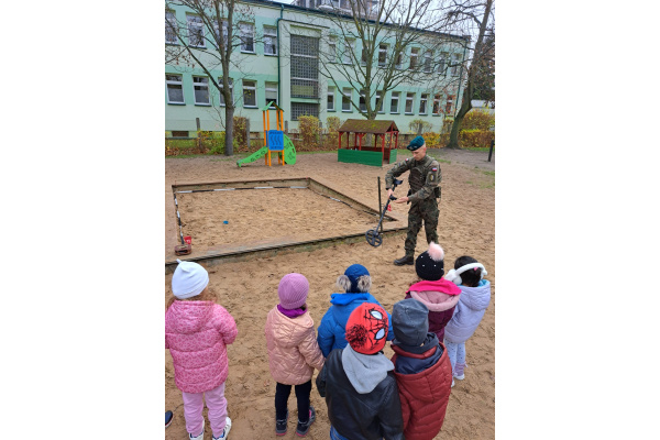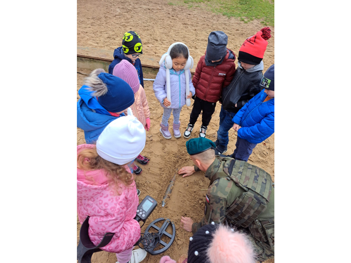 Podczas spotkania dzieci mogły zobaczyć, jak działa wykrywacz metali, a w przedszkolnej piaskownicy wspólnie „wyszukiwaliśmy pocisków”, ucząc się przy tym, jak należy postępować w przypadku znalezienia niebezpiecznego przedmiotu.