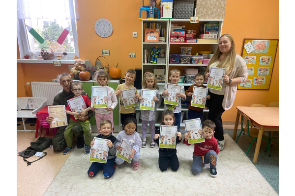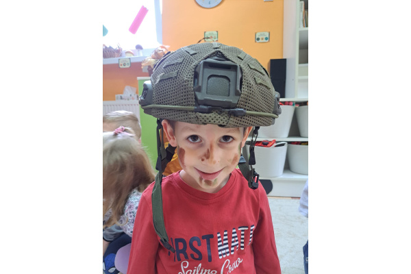 Do grupy Żabki zawitał ostatnio tata Kuby – pan Krzysztof, który jest starszym szeregowym, specjalistą saperem w 1 Brygadzie Logistycznej. Pan Krzysztof przeprowadził dla dzieci bardzo ciekawe zajęcia na temat bezpieczeństwa oraz pracy żołnierza Wojska Polskiego.