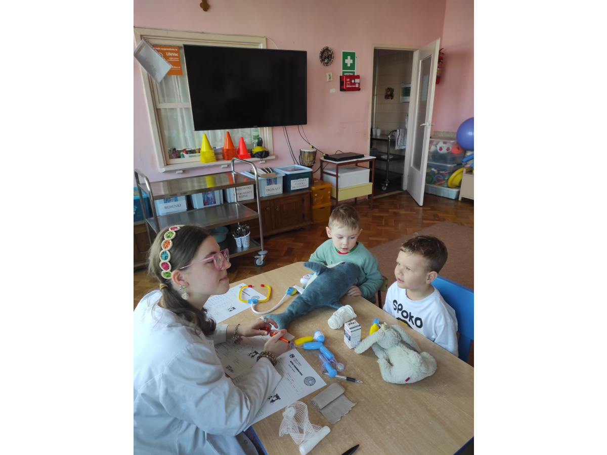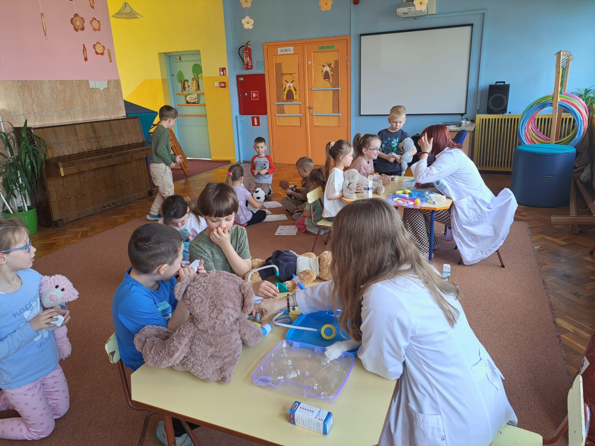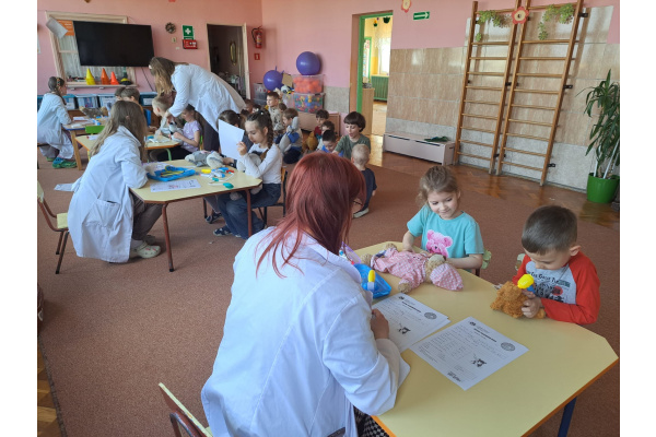 W naszym Przedszkolu odbyła się akcja "Szpital Pluszowego Misia", prowadzona przez Międzynarodowe Stowarzyszenie Studentów Mecycyny IFMSA Bydgoszcz. Akcja miała na celu przełamanie barier przez dzieci w kontakcie z lekarzem.