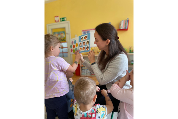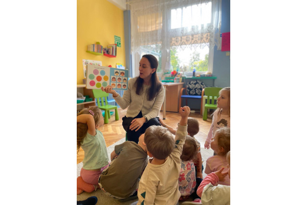 W ramach tygodnia budowania relacji rówieśniczych, dzieci miały zajęcia z pani psycholog Justyną na temat przyjaźni. Dzieci chętnie rozpoznawały emocje oraz uczyły się jak być dobrym kolegą/ koleżanką.
