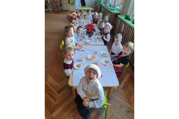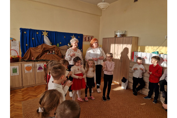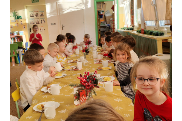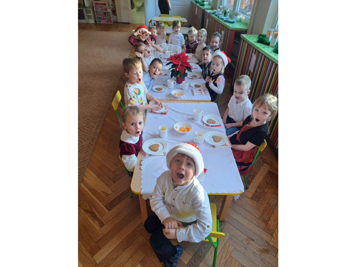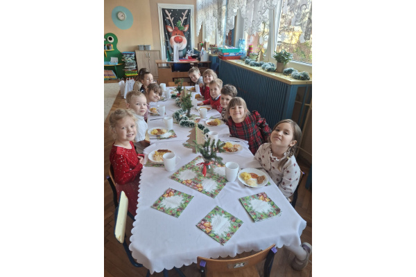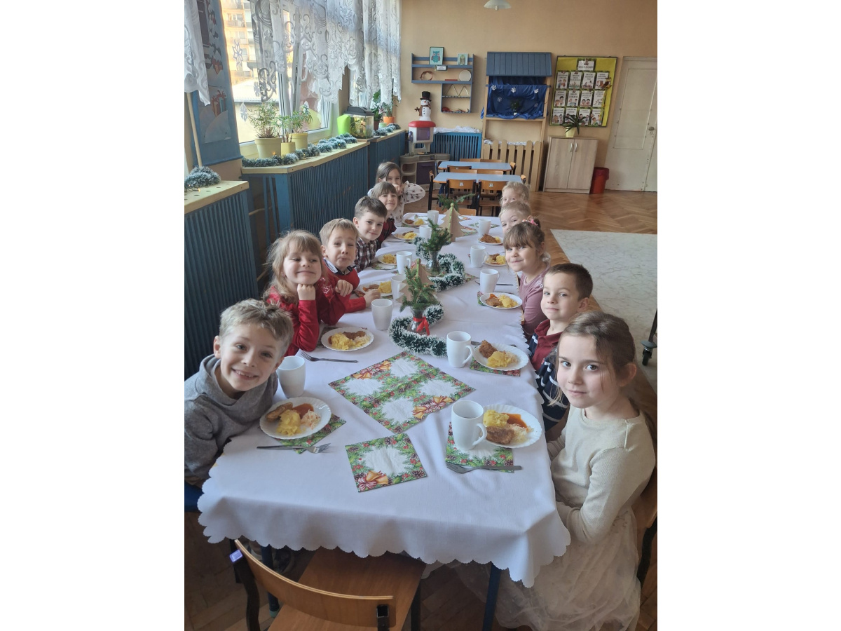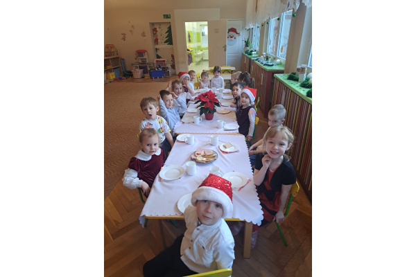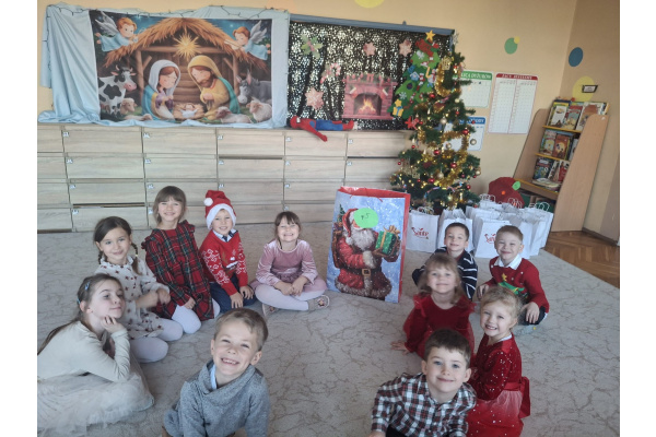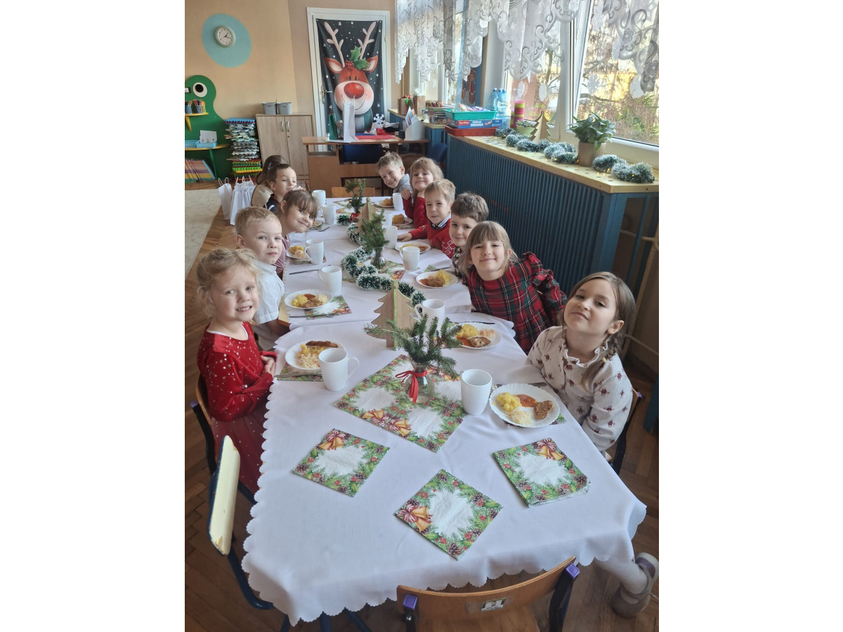Ostatni tydzień przedświąteczny był w przedszkolu pełen wyjątkowych spotkań i emocji. Było świętowanie w gronie rodzinnym, występy JASEŁEK w wykonaniu dzieci z gr. Vl, wprowadzające w bożonarodzeniową atmosferę. Ważnym momentem było składanie sobie życzeń i dzielenie się opłatkiem Później było też spotkanie przy wigilijnym stole z barszczem, rybą i świątecznym deserem. Oczywiście nie obyło się bez gwiazdkowych prezentów- tych indywidualnych i grupowych. Śpiewanie kolęd dopełniło wyjątkowej atmosfery świątecznego dnia w przedszkolu.