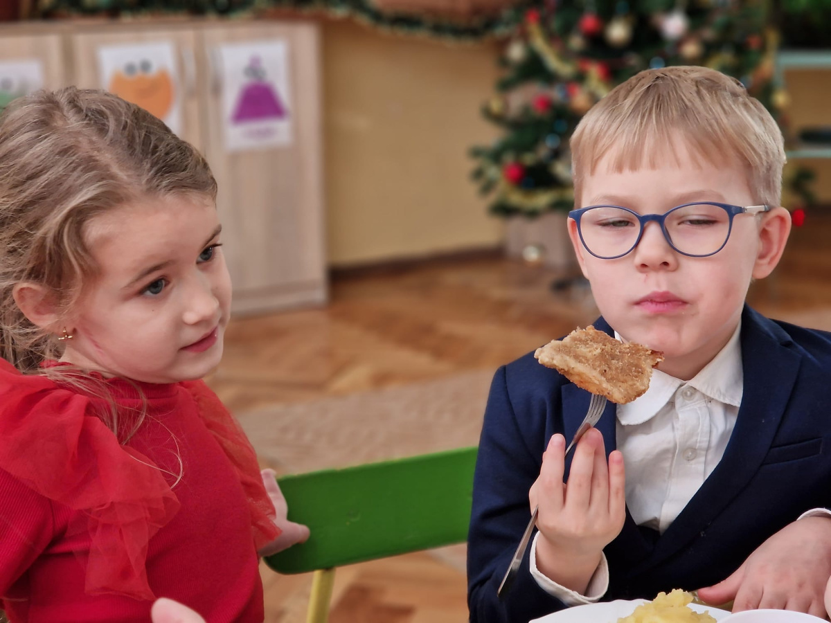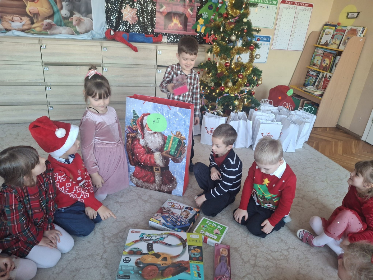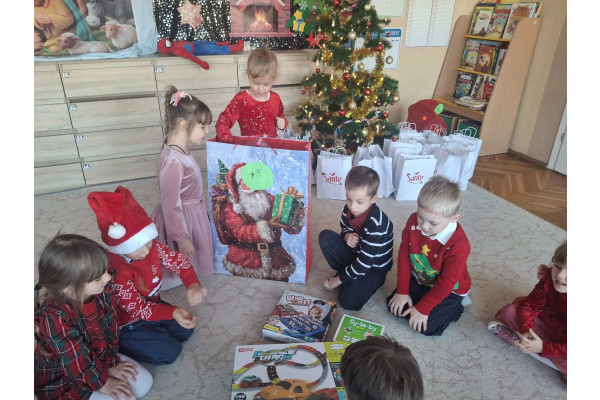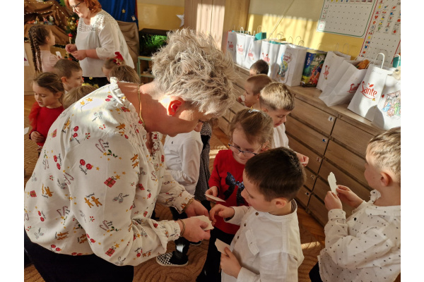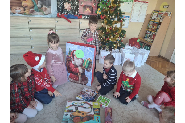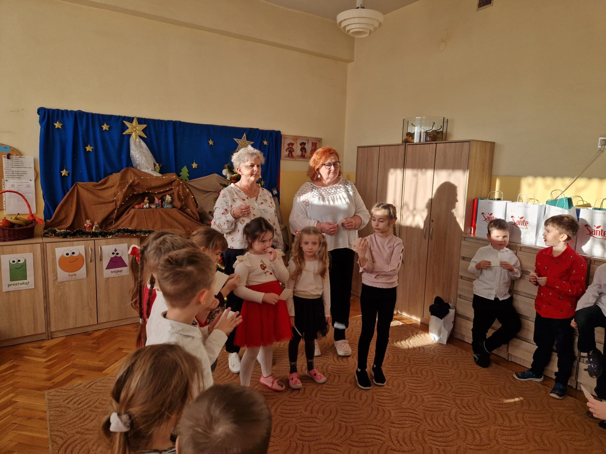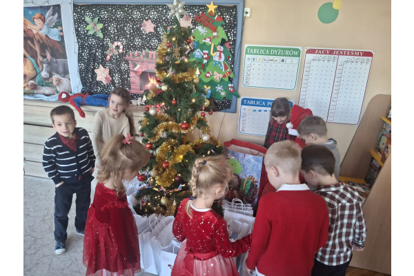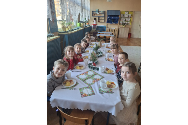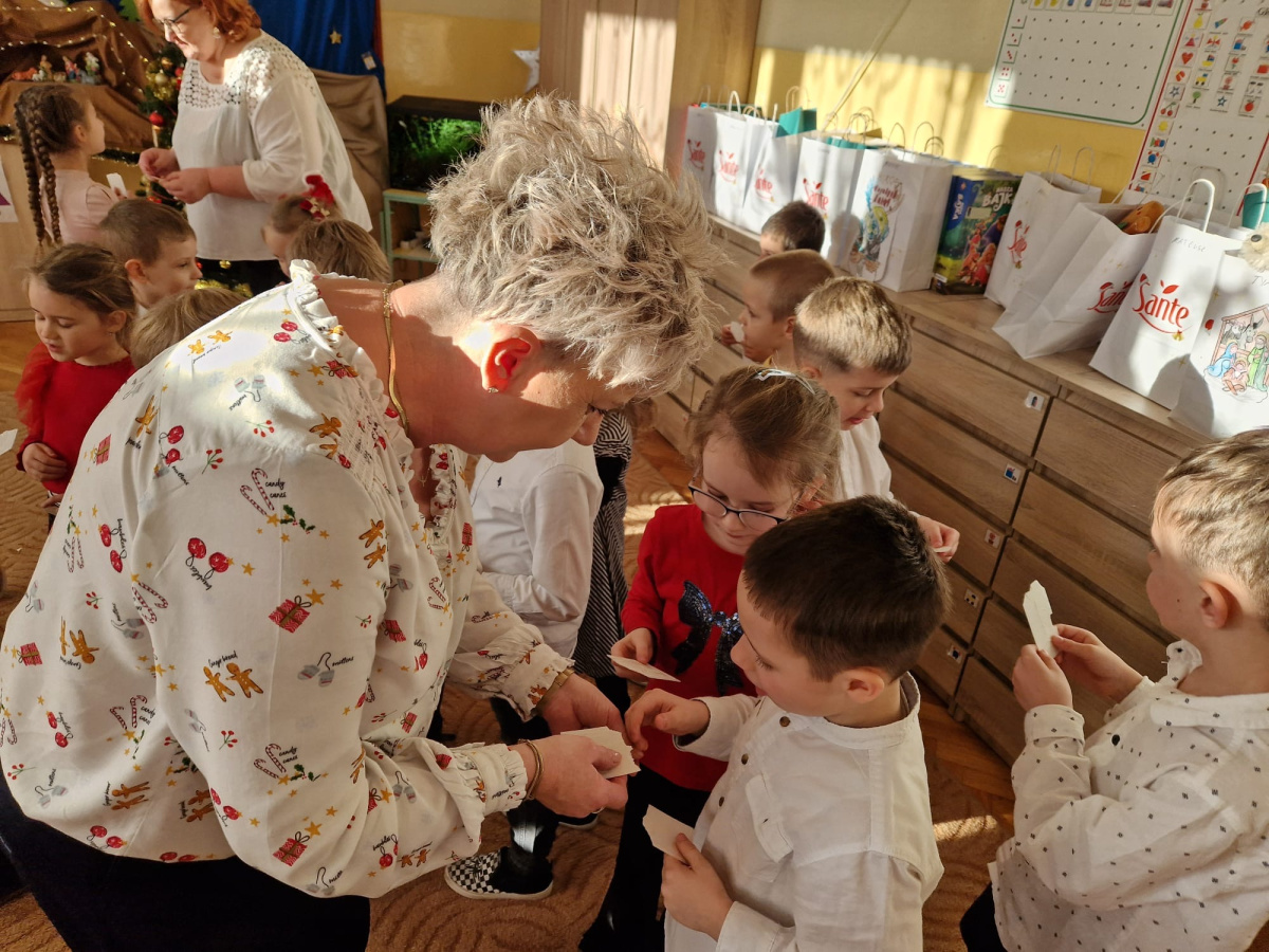 Ostatni tydzień przedświąteczny był w przedszkolu pełen wyjątkowych spotkań i emocji. Było świętowanie w gronie rodzinnym, występy JASEŁEK w wykonaniu dzieci z gr. Vl, wprowadzające w bożonarodzeniową atmosferę. Ważnym momentem było składanie sobie życzeń i dzielenie się opłatkiem Później było też spotkanie przy wigilijnym stole z barszczem, rybą i świątecznym deserem. Oczywiście nie obyło się bez gwiazdkowych prezentów- tych indywidualnych i grupowych. Śpiewanie kolęd dopełniło wyjątkowej atmosfery świątecznego dnia w przedszkolu.