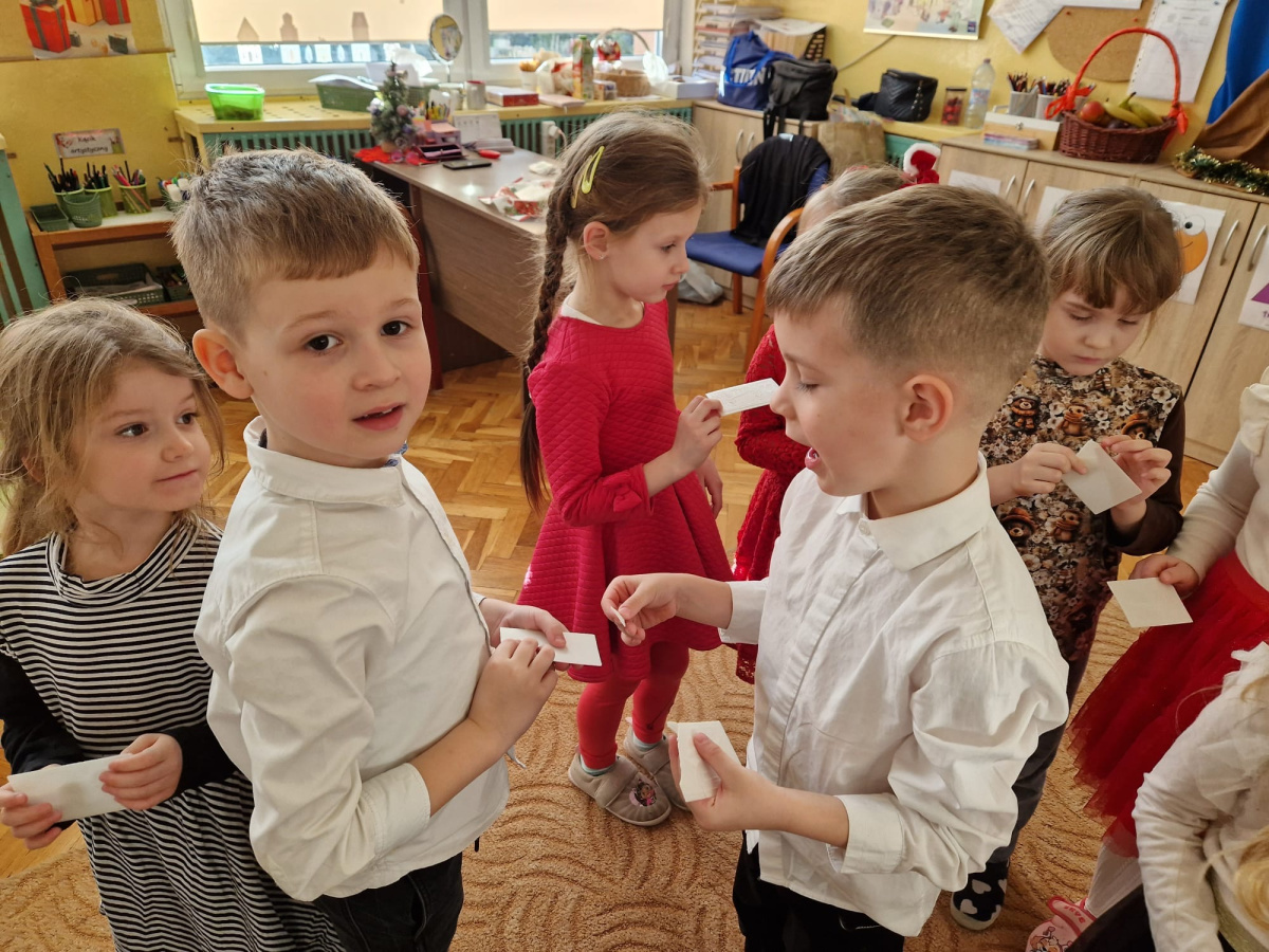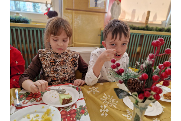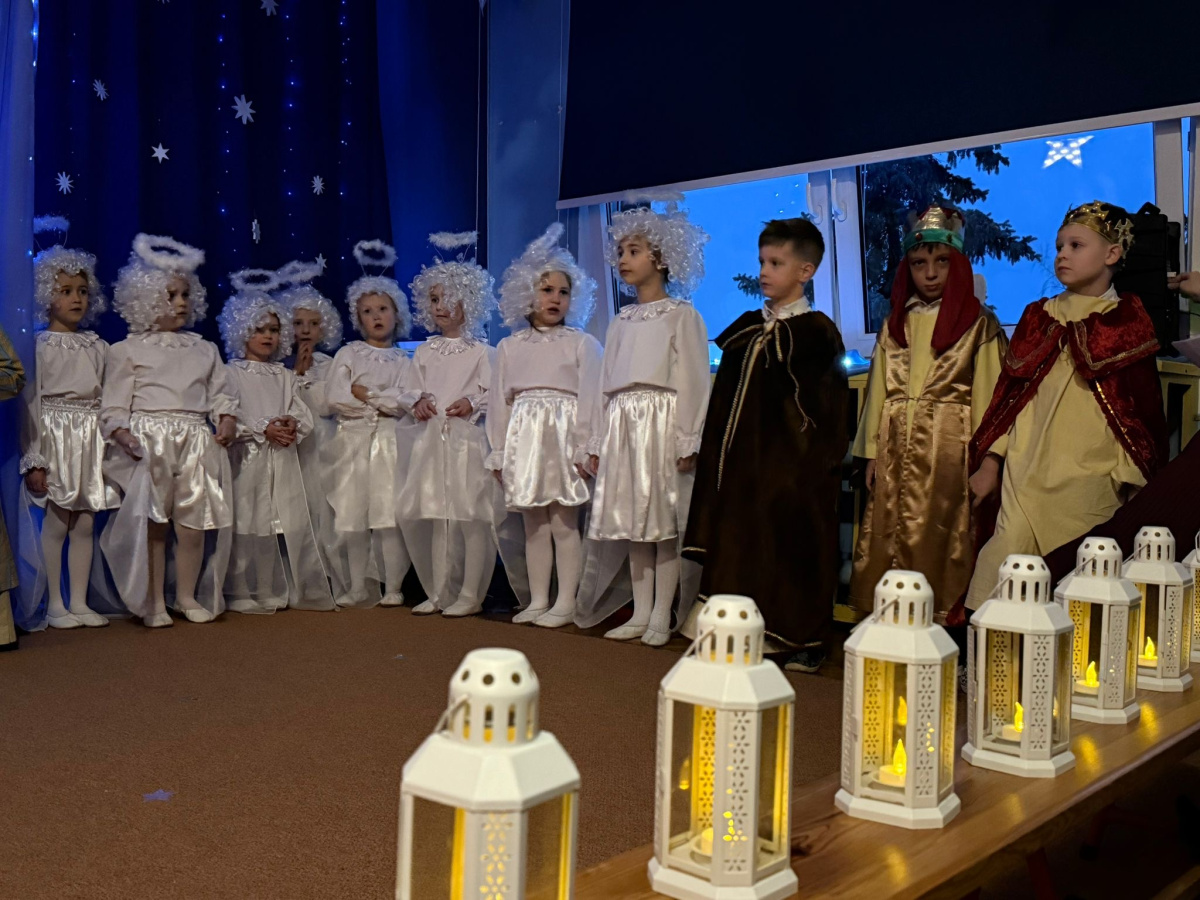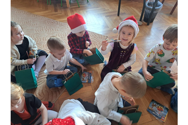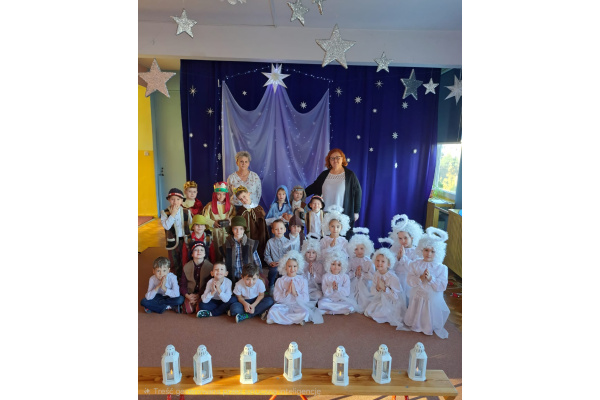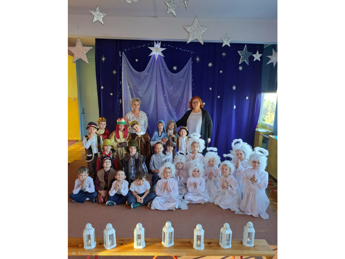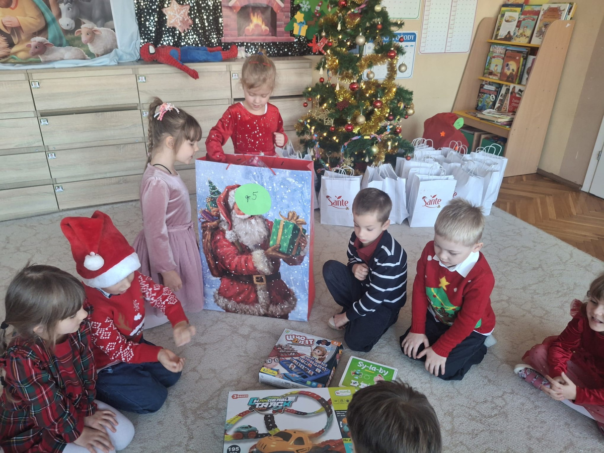 Ostatni tydzień przedświąteczny był w przedszkolu pełen wyjątkowych spotkań i emocji. Było świętowanie w gronie rodzinnym, występy JASEŁEK w wykonaniu dzieci z gr. Vl, wprowadzające w bożonarodzeniową atmosferę. Ważnym momentem było składanie sobie życzeń i dzielenie się opłatkiem Później było też spotkanie przy wigilijnym stole z barszczem, rybą i świątecznym deserem. Oczywiście nie obyło się bez gwiazdkowych prezentów- tych indywidualnych i grupowych. Śpiewanie kolęd dopełniło wyjątkowej atmosfery świątecznego dnia w przedszkolu.