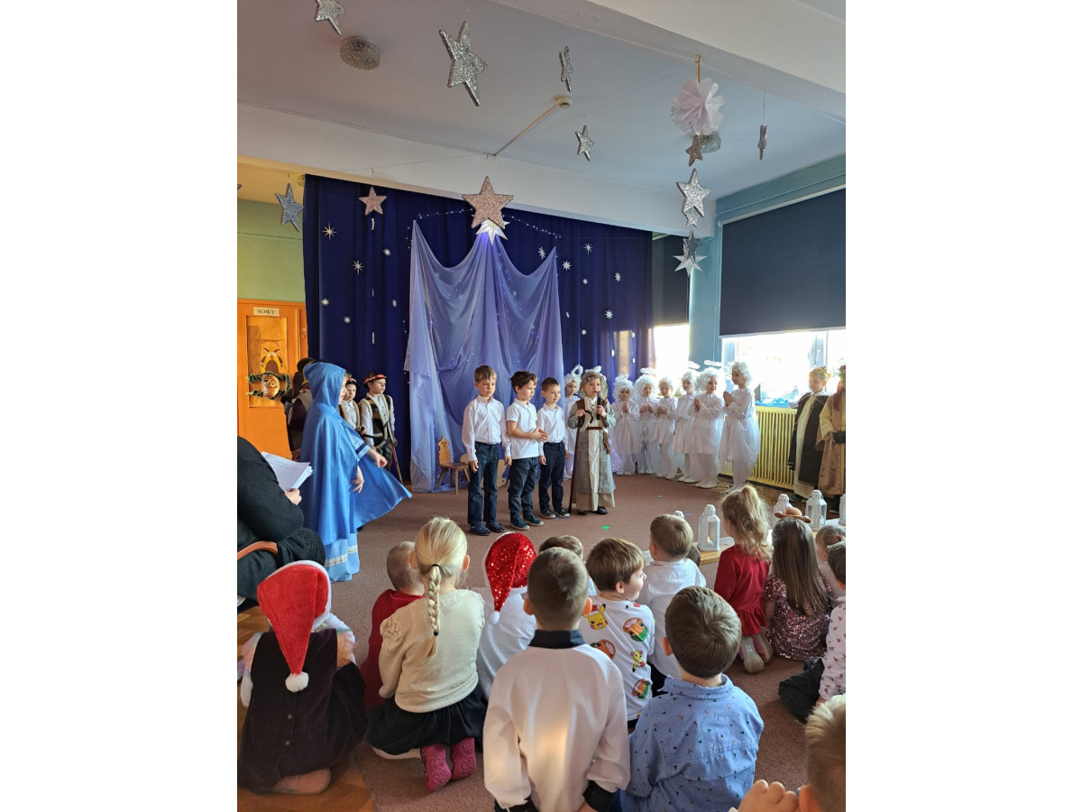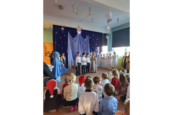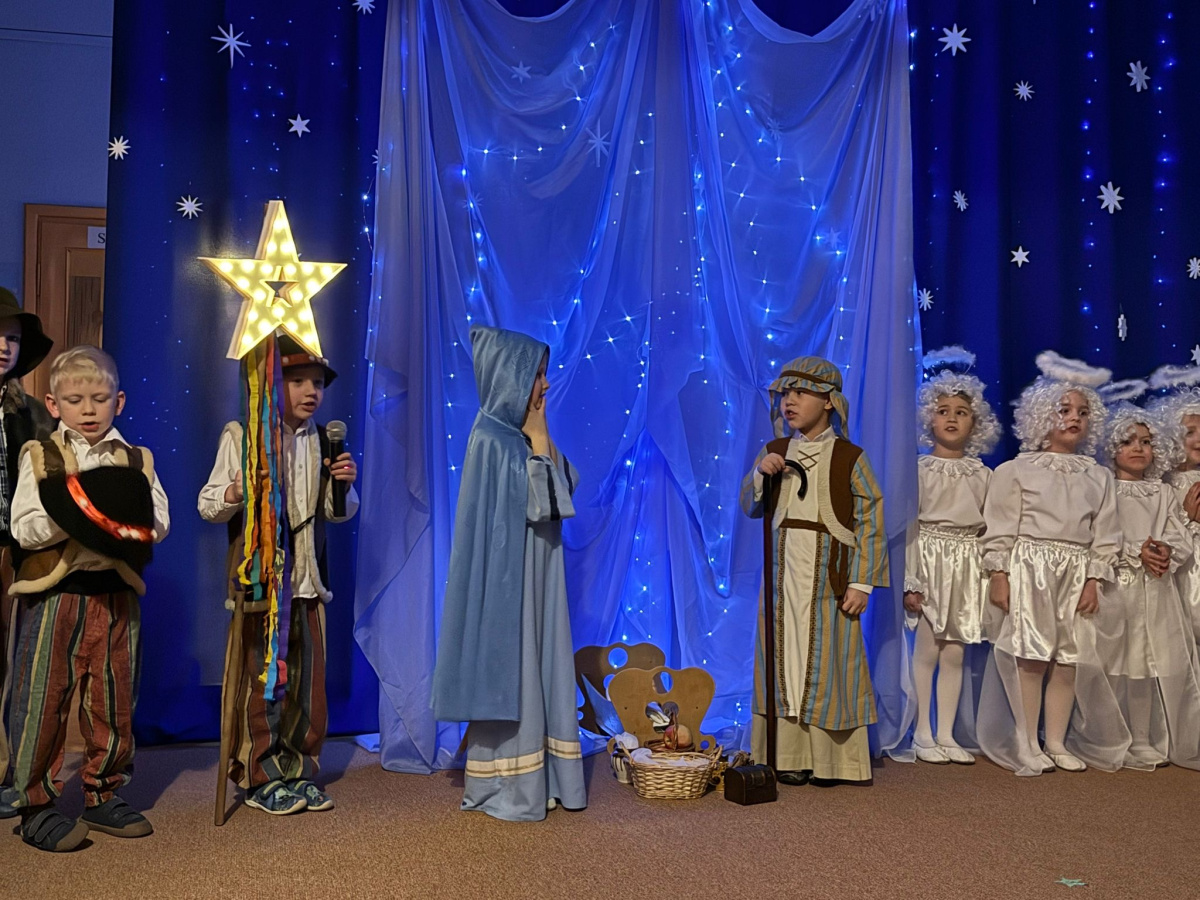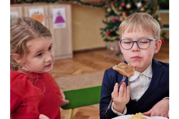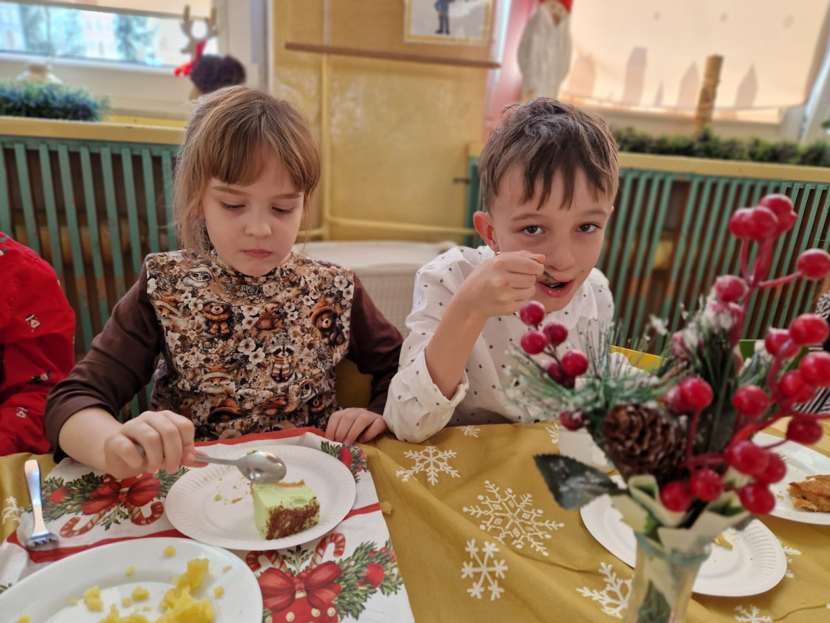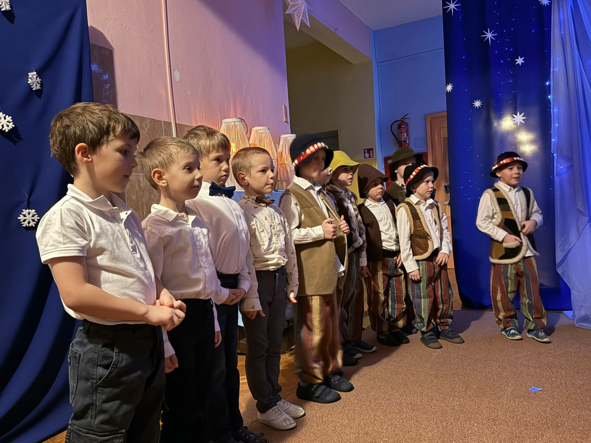 Ostatni tydzień przedświąteczny był w przedszkolu pełen wyjątkowych spotkań i emocji. Było świętowanie w gronie rodzinnym, występy JASEŁEK w wykonaniu dzieci z gr. Vl, wprowadzające w bożonarodzeniową atmosferę. Ważnym momentem było składanie sobie życzeń i dzielenie się opłatkiem Później było też spotkanie przy wigilijnym stole z barszczem, rybą i świątecznym deserem. Oczywiście nie obyło się bez gwiazdkowych prezentów- tych indywidualnych i grupowych. Śpiewanie kolęd dopełniło wyjątkowej atmosfery świątecznego dnia w przedszkolu.