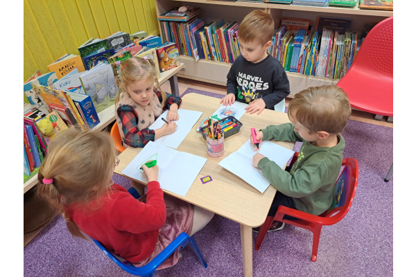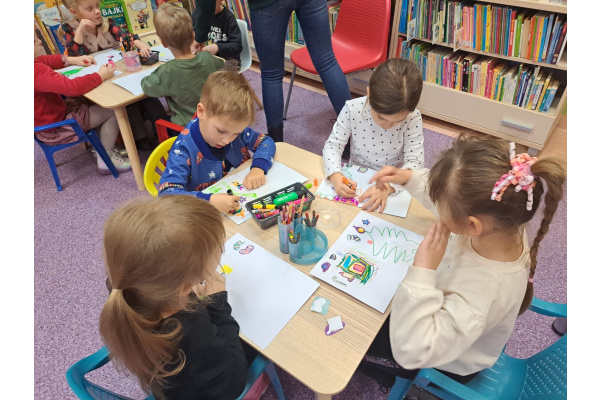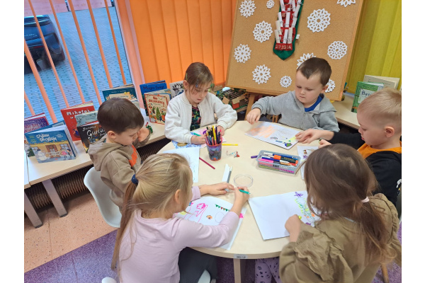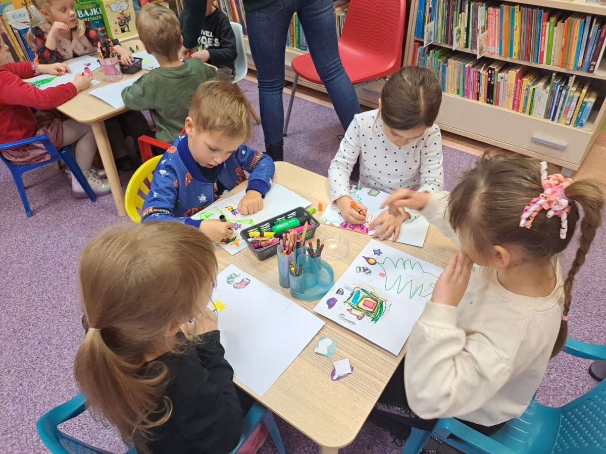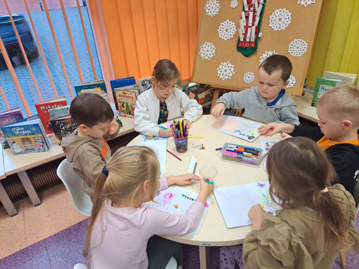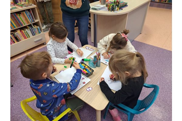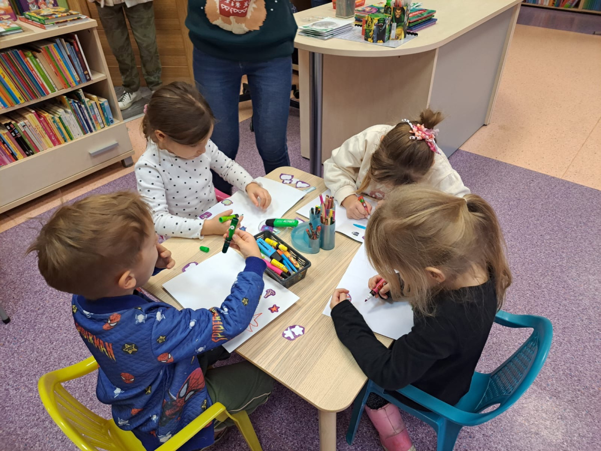 Dzieci z gr.Sówek wybrały się 4.grudnia do biblioteki dla dzieci i wzięły udział w kolejnych zajęciach bibilotecznych.