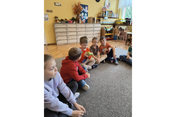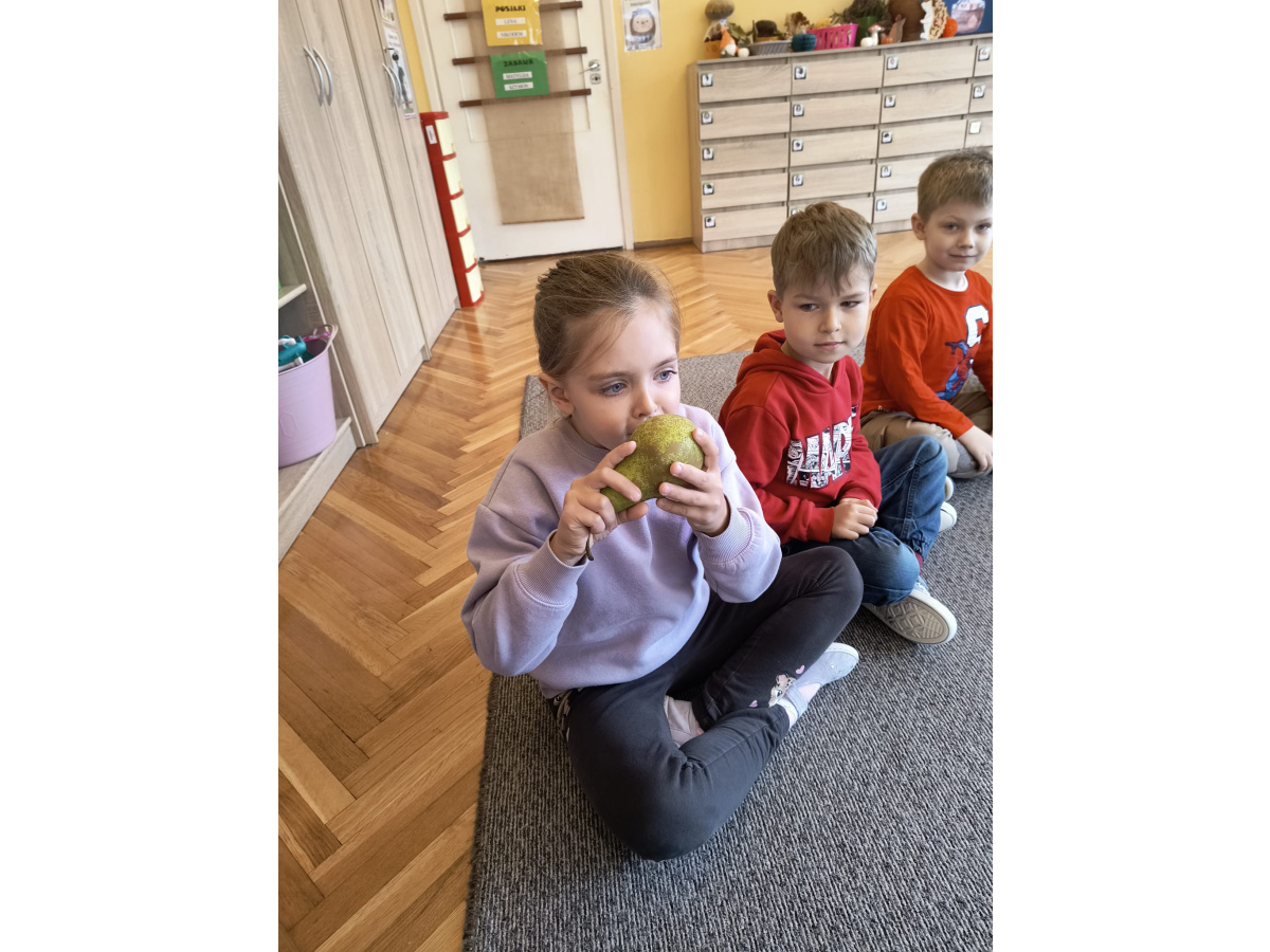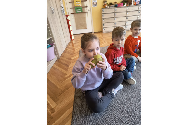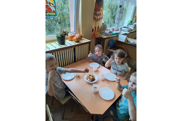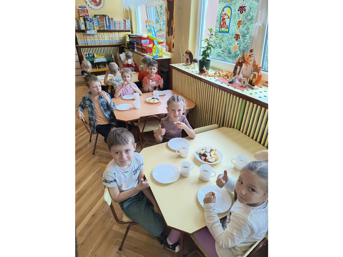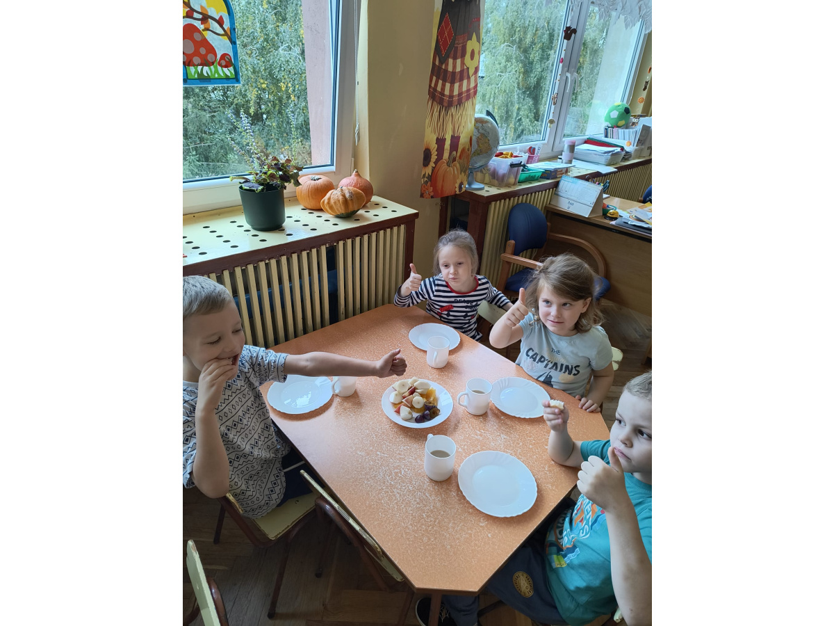 Dzieci z grupy 4 wybrały się na pobliskie targowisko szukać smaków i zapachów jesieni. Dzieci zakupiły soczyste jabłka, słodziutkie gruszki i śliwki. Po powrocie do przedszkolaka wszystkie owoce dokładnie umyliśmy i pokroiliśmy, a potem że smakiem zjedliśmy ????