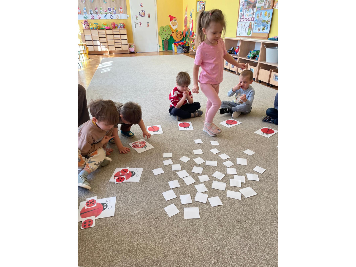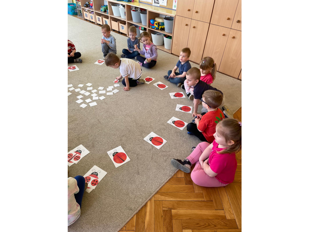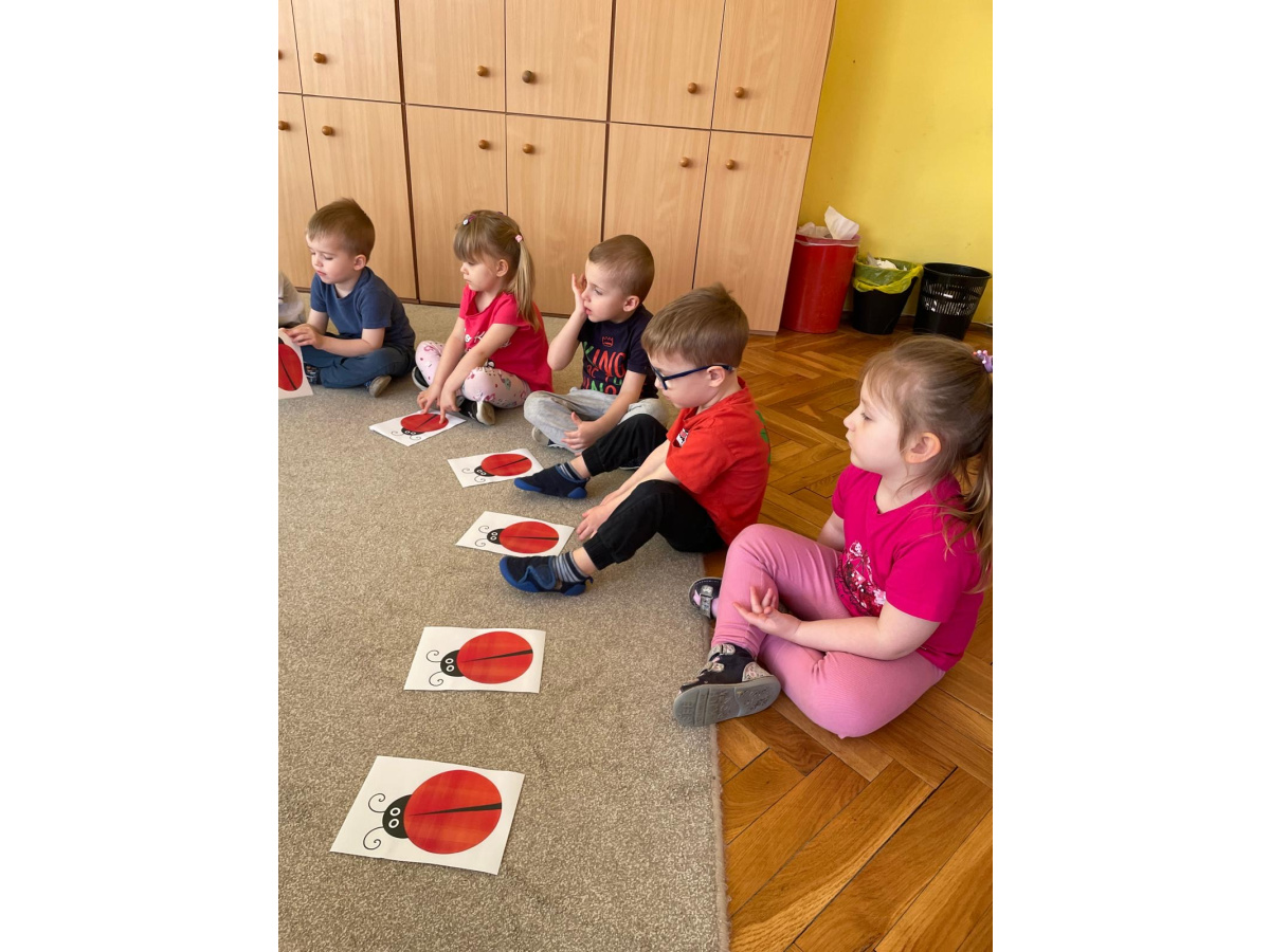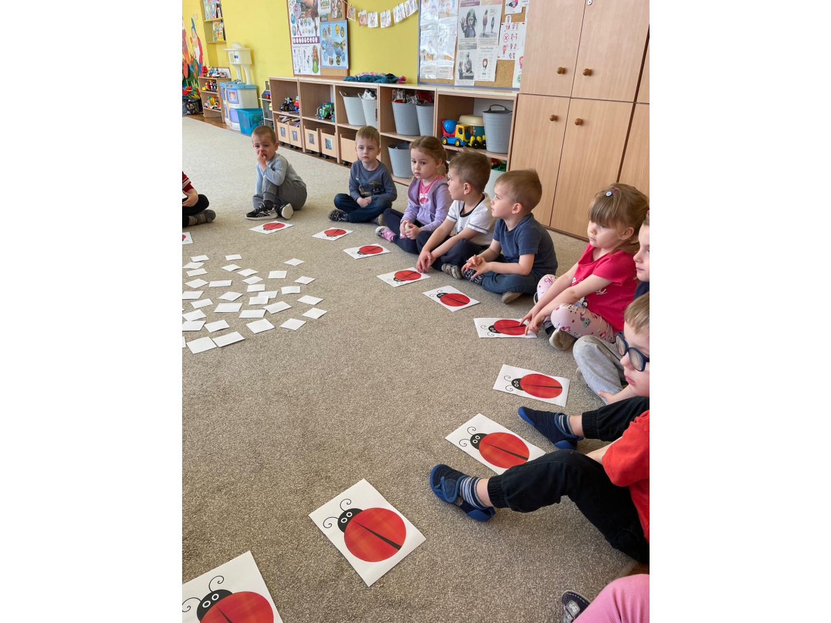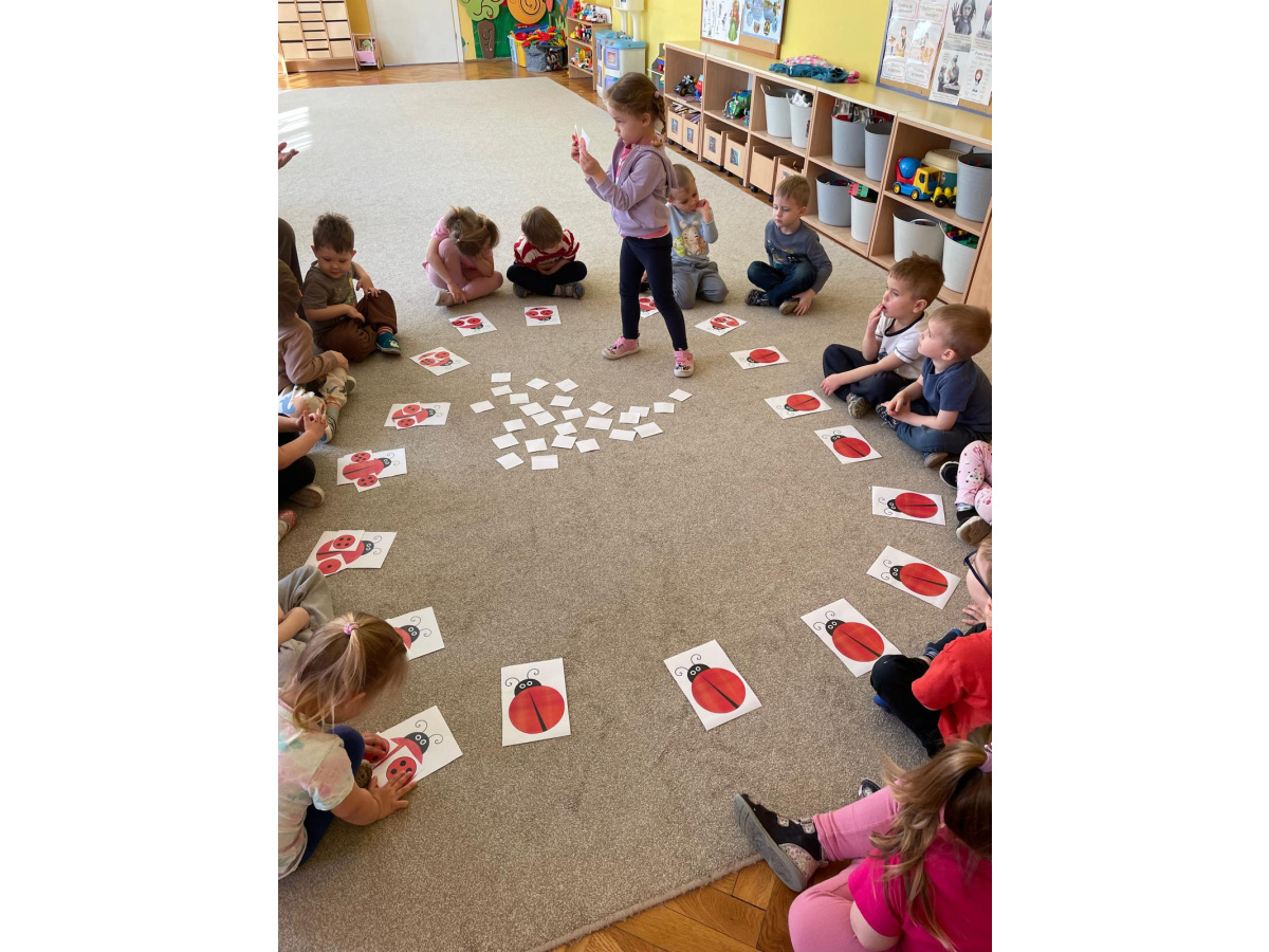 Wiosenne zabawy matematyczne w gr I - dzieci liczyły kropki biedronki.????