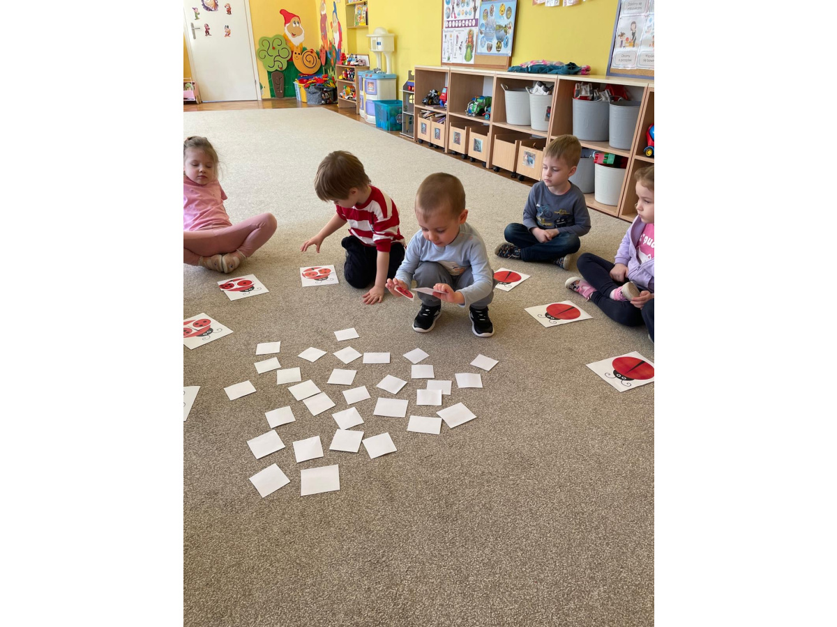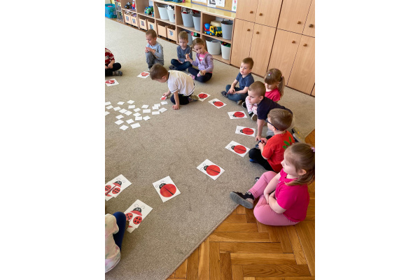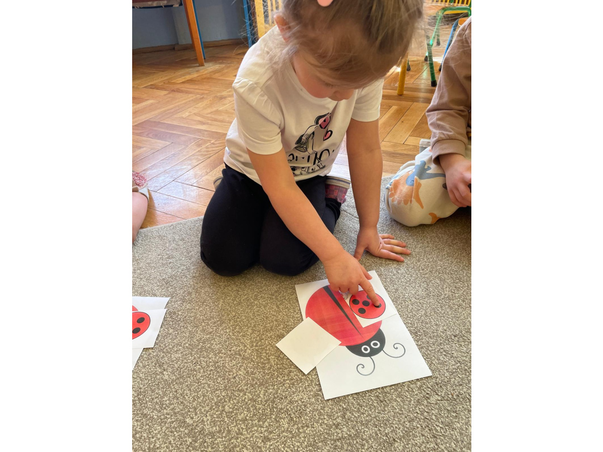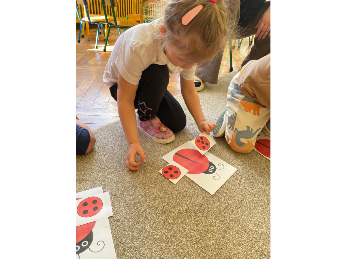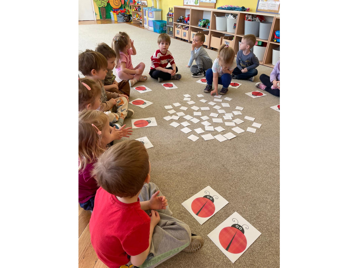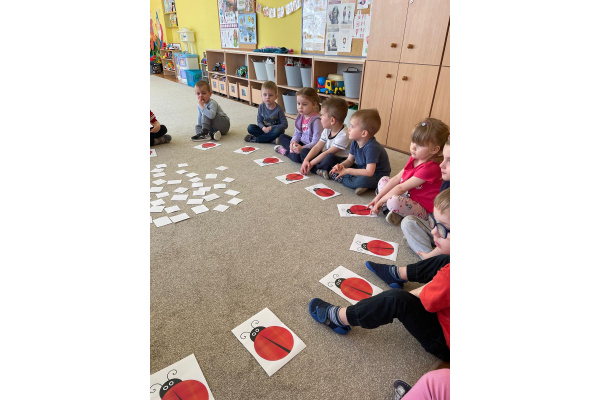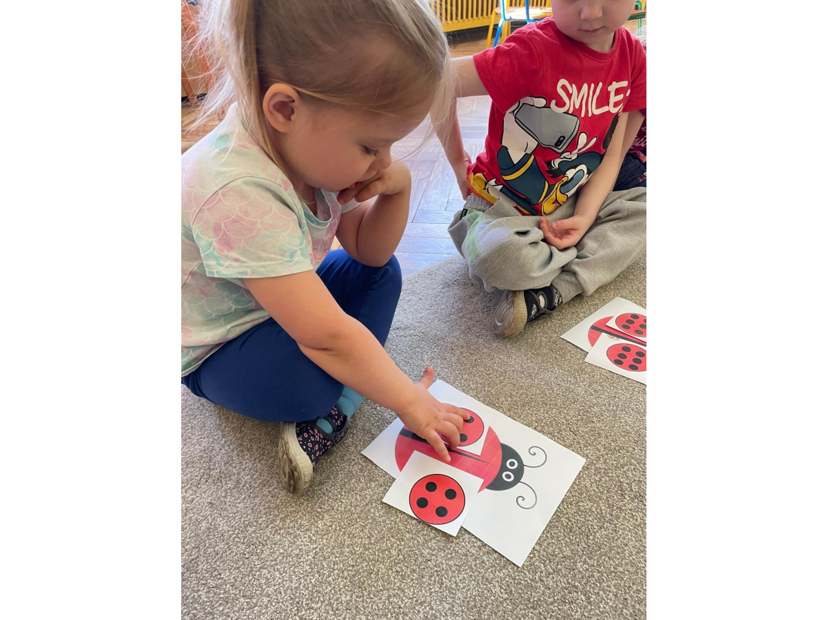 Wiosenne zabawy matematyczne w gr I - dzieci liczyły kropki biedronki.????