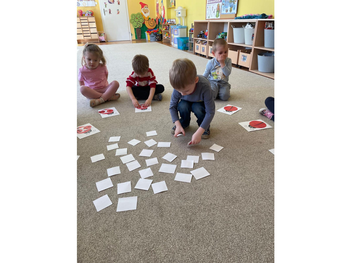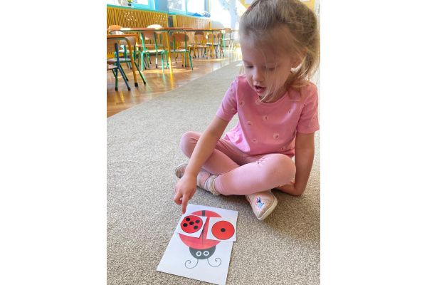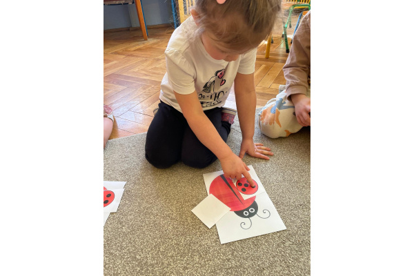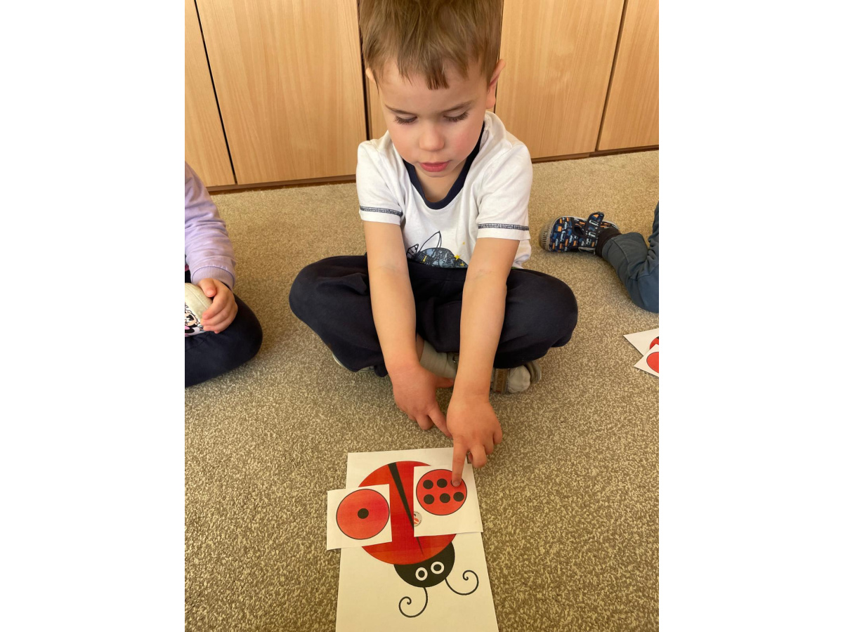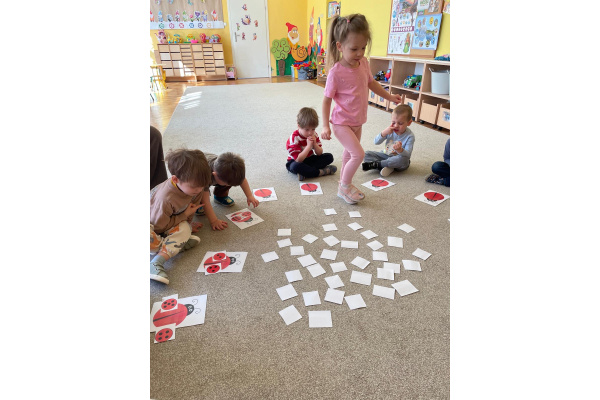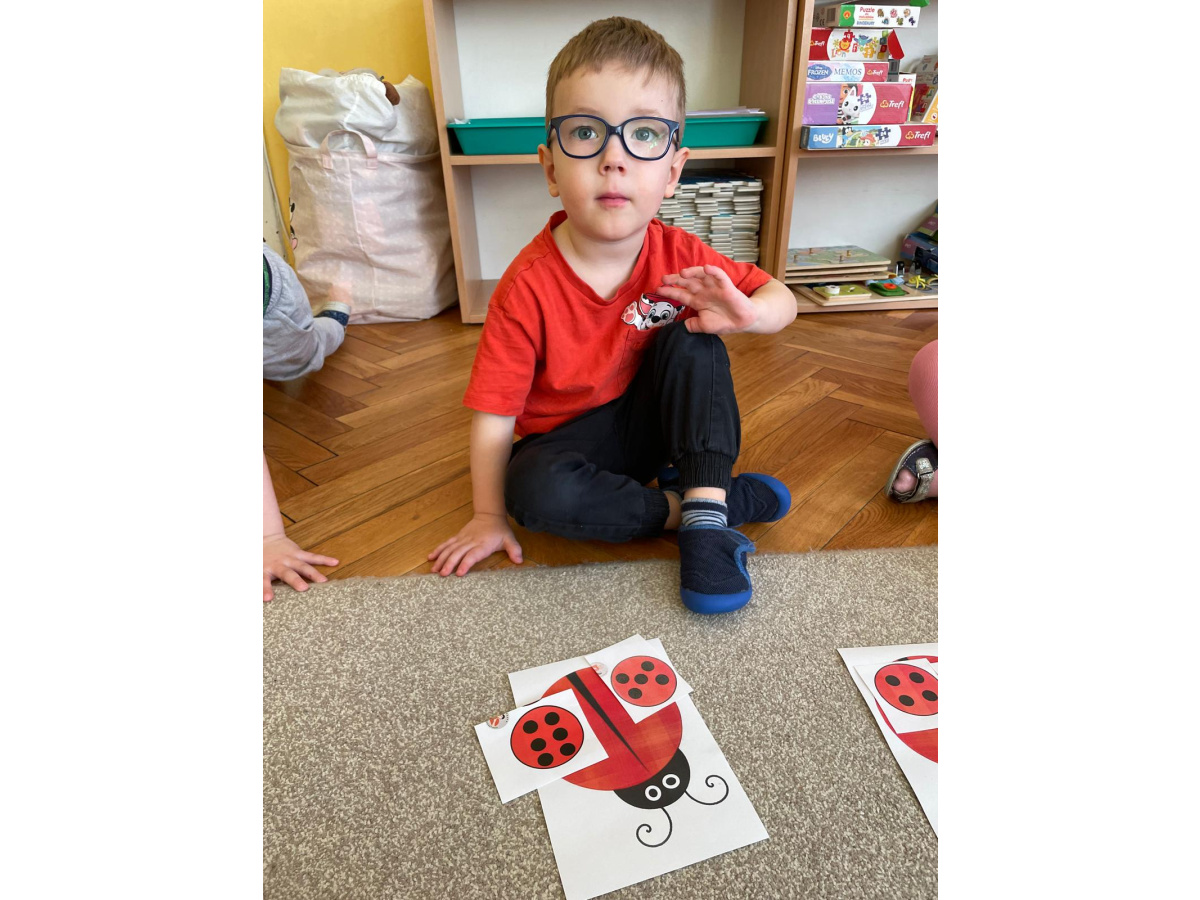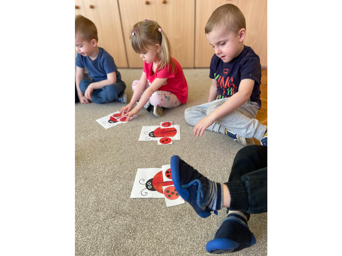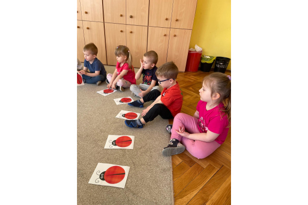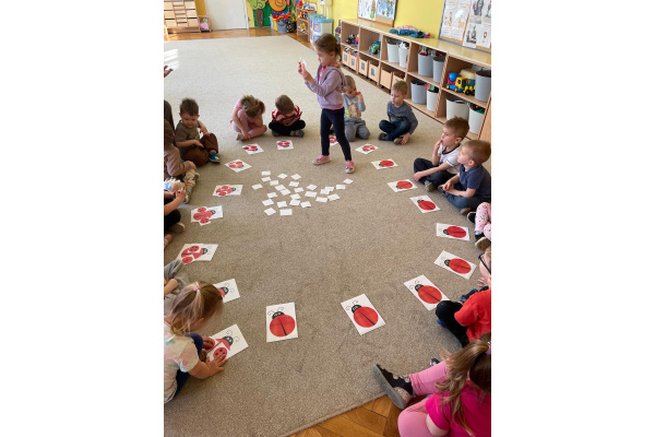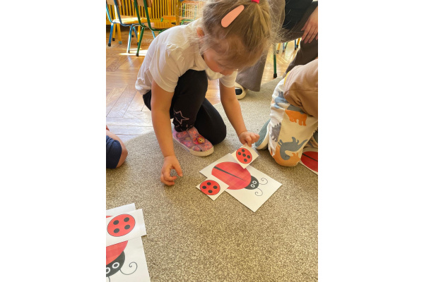 Wiosenne zabawy matematyczne w gr I - dzieci liczyły kropki biedronki.????