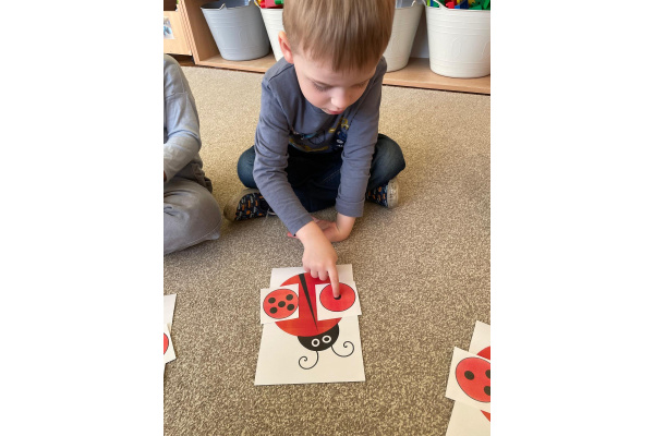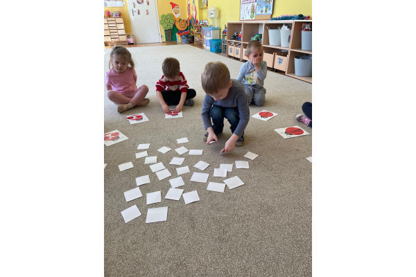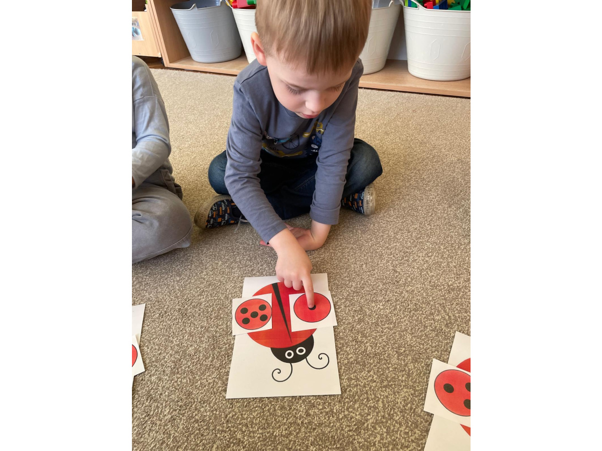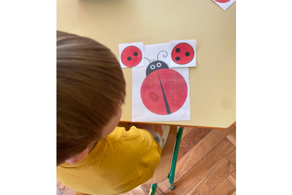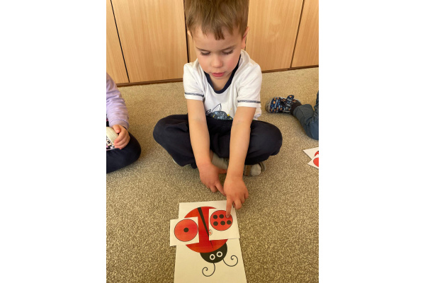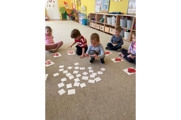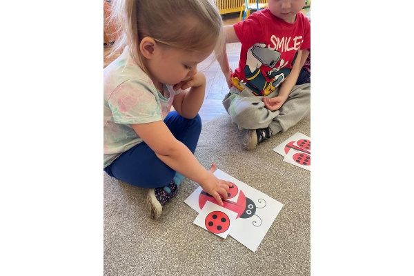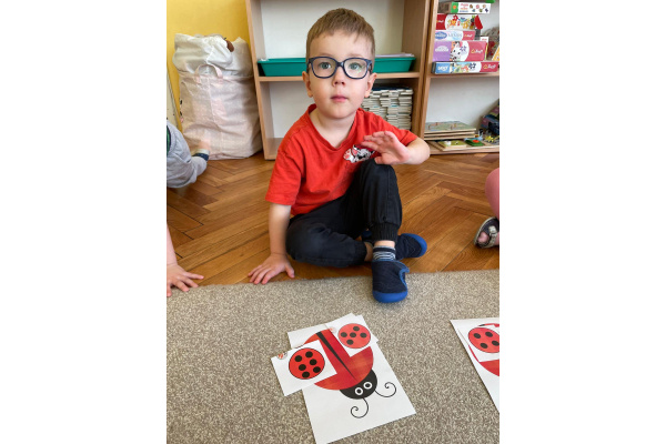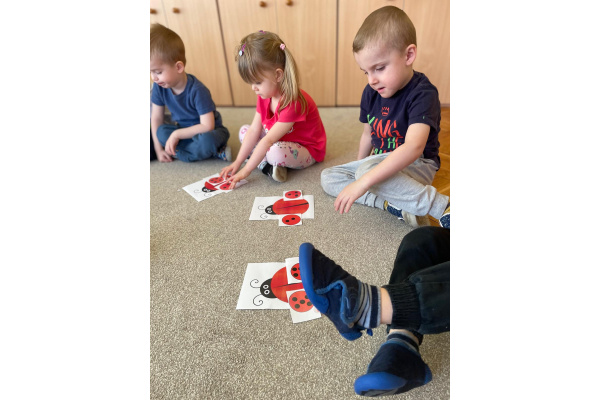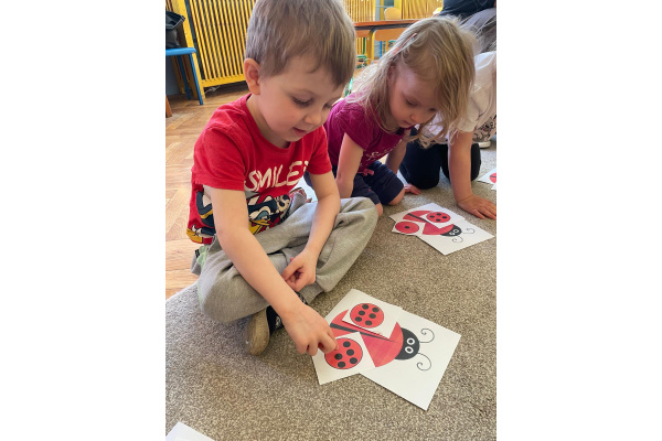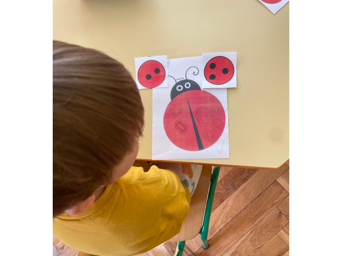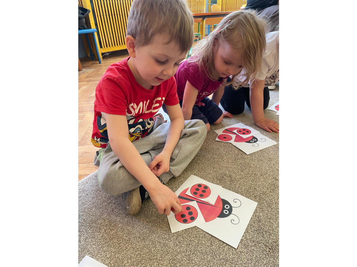 Wiosenne zabawy matematyczne w gr I - dzieci liczyły kropki biedronki.????